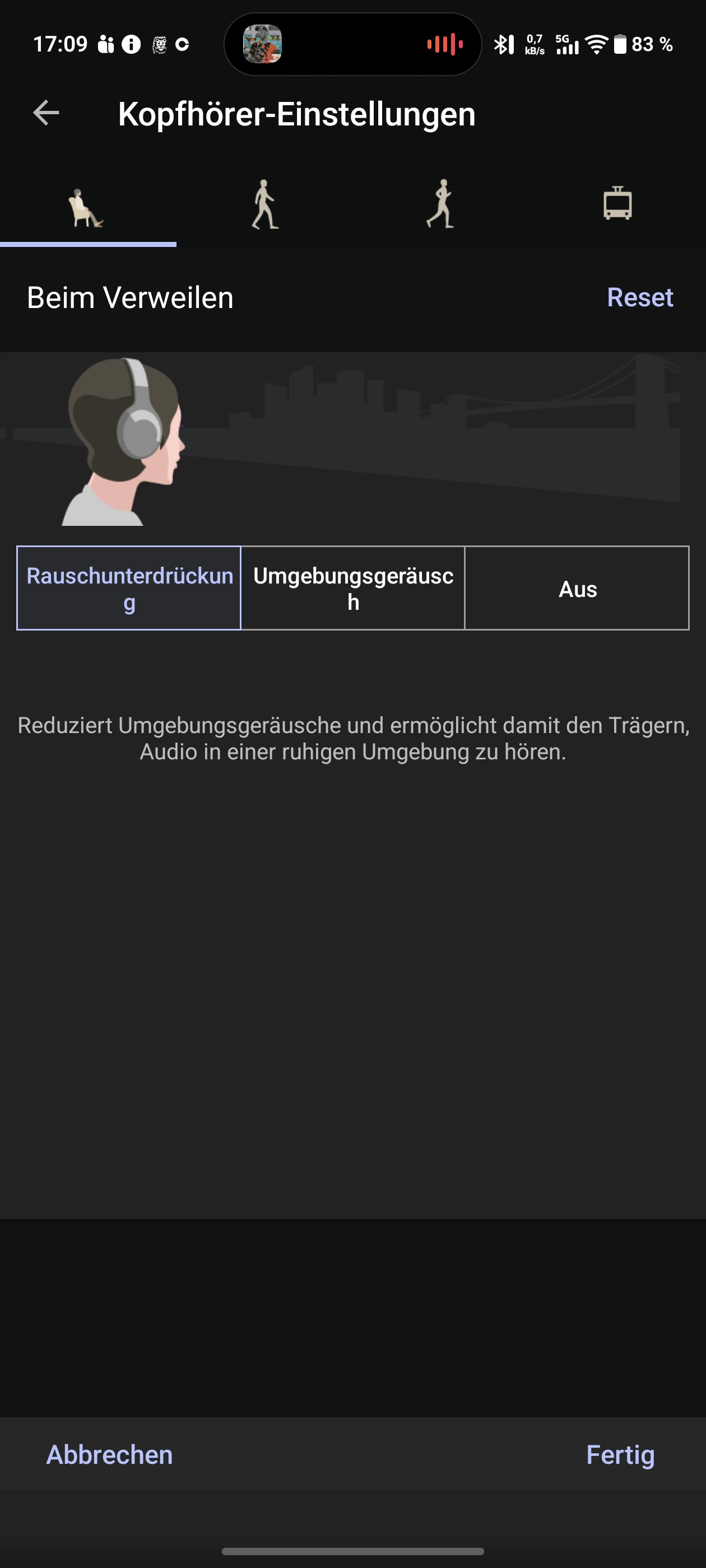 Das ANC arbeitet effizient. Verkehrs- und Motorengeräusche verschwinden fast komplett, die Memory-Foam-Stöpsel unterstützen mit starker passiver Isolierung. Bürogeräusche und Stimmen im Mittelfrequenzbereich dringen teilweise durch. Windgeräusche werden gedämpft, aber nicht optimal gefiltert. Insgesamt auf hohem Niveau, aber nicht wirklich besser als bei den Airpods Pro 3 oder guten Bose-Modellen.