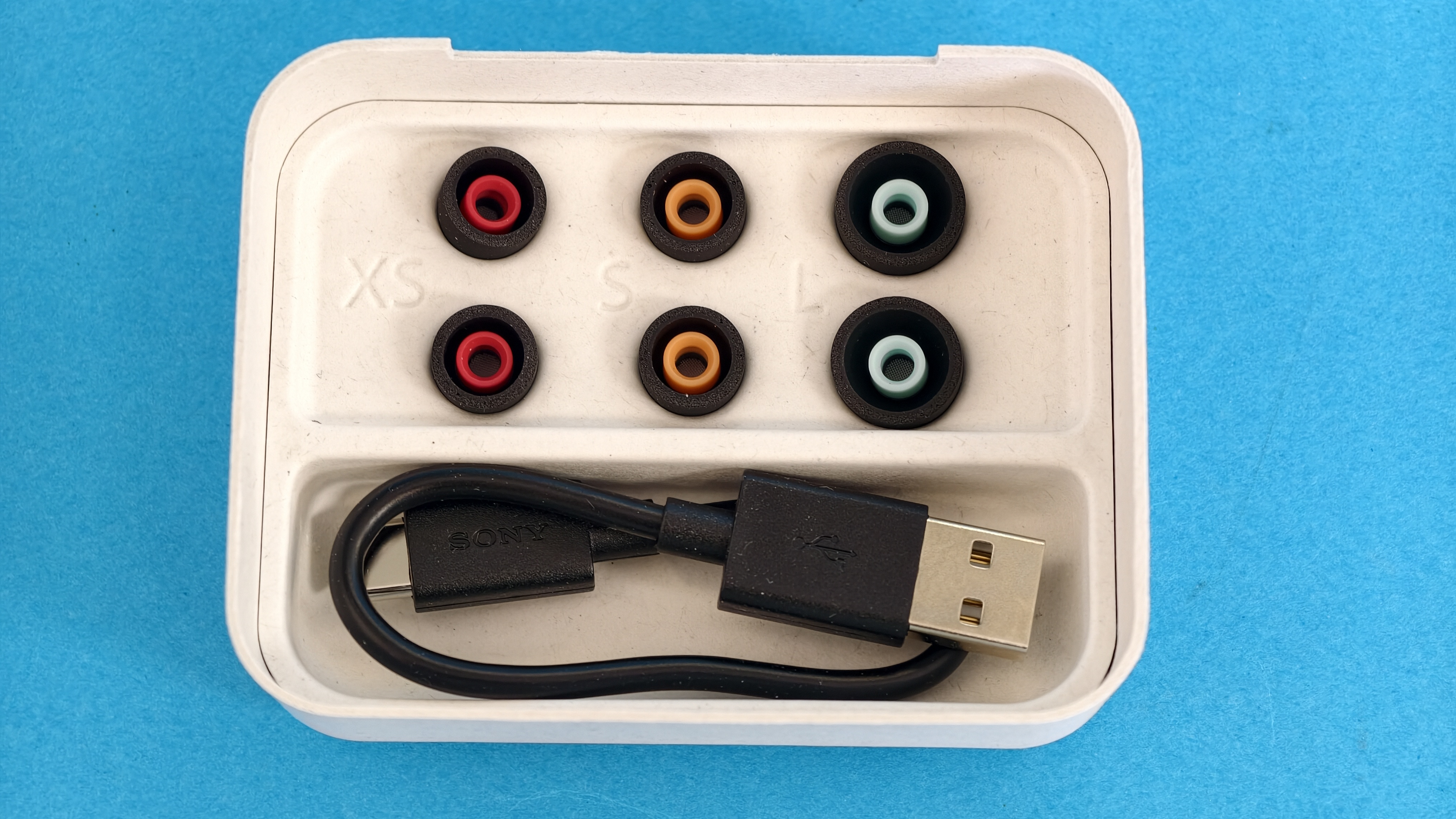 Im Lieferumfang stecken vier Größen Memory-Foam-Stöpsel (XS bis L), ein USB-C-Kabel und Dokumentation. Farbvarianten: Schwarz und Silber. Die Verarbeitung bewegt sich auf gewohnt hohem Sony-Niveau. IPX4 schützt gegen Schweiß und leichten Regen.