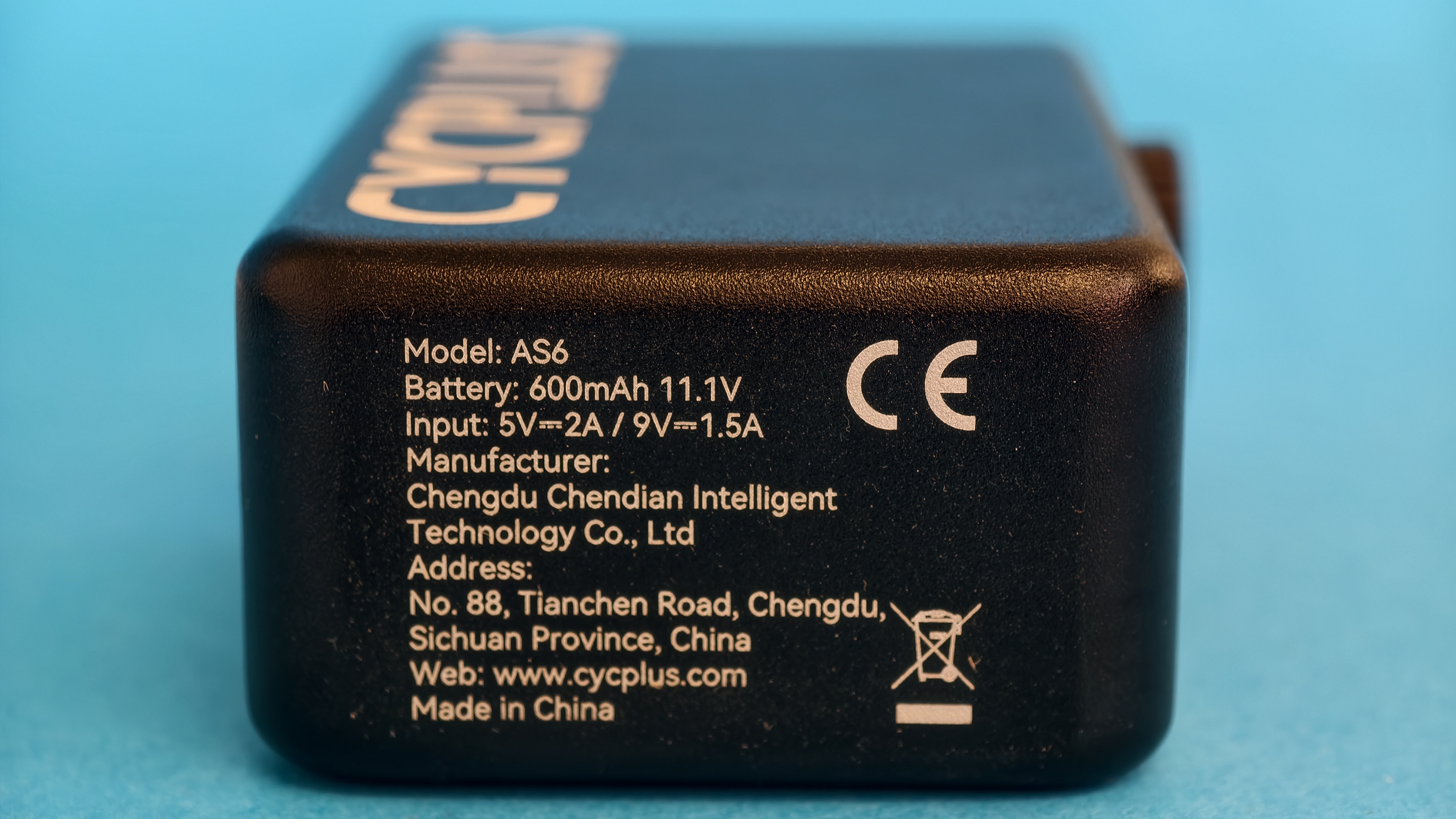 Aluminium statt Kunststoff – das fällt sofort auf. Die Cycplus AS2 Pro Max fühlt sich wertig an, robuster als viele Konkurrenten. Der matt-schwarze Lack mit dem großen weißen Cycplus-Schriftzug auf beiden Seiten wirkt schlicht und hochwertig. Mit Abmessungen von etwa 81 × 53 × 32 mm passt die Pumpe in Satteltaschen, Rucksäcke und Jackentaschen. Das Gewicht von 205 Gramm liegt im Mittelfeld: deutlich schwerer als die Tiny Pump Cube, aber nur halb so schwer wie die Bosch Easypump (Testbericht) mit 430 Gramm.