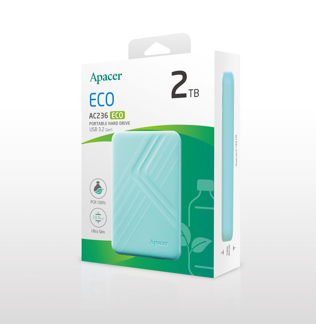 Bei der neuen Speicherlinie ECO steht der Begriff „Post-Consumer Recycled“ (PCR) im Fokus. Bei dem Gehäuse setzt Apacer also auf Recycling-Material wie etwa aus Getränkeflaschen gewonnenen Kunststoff. Der Hersteller weist in Fußnoten darauf hin, dass dadurch kleinere Unreinheiten im Material bestehen können. Wer sich bewusst für ein solches, auf Nachhaltigkeit getrimmtes Produkt entscheidet, kann darüber aber sicherlich hinwegsehen.