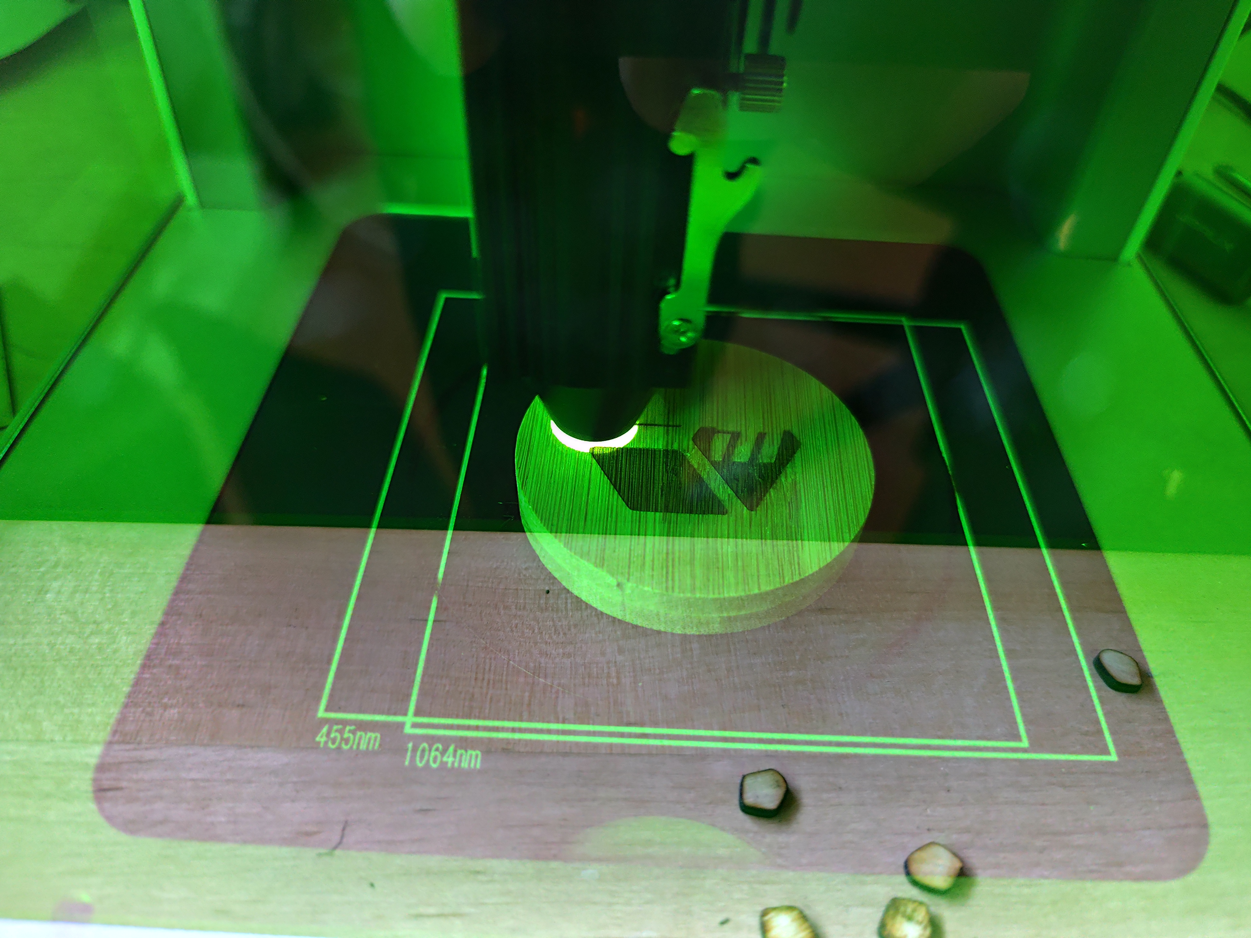 Problematisch wird es allerdings, wenn der M1 mit den mitgelieferten Füßchen aufgebockt wird, um höhere Objekte zu gravieren. Hier raten wir unbedingt zu großer Vorsicht und zur Nutzung des Schutzbrille – besser noch wäre eine zusätzlicher Sichtschutz oder der Verzicht auf die Erhöhung. Hinzukommt, dass der M1 keinerlei Flammenerkennung an Bord hat. Wenn der Laser arbeitet, muss man ihn also immer im Auge behalten!