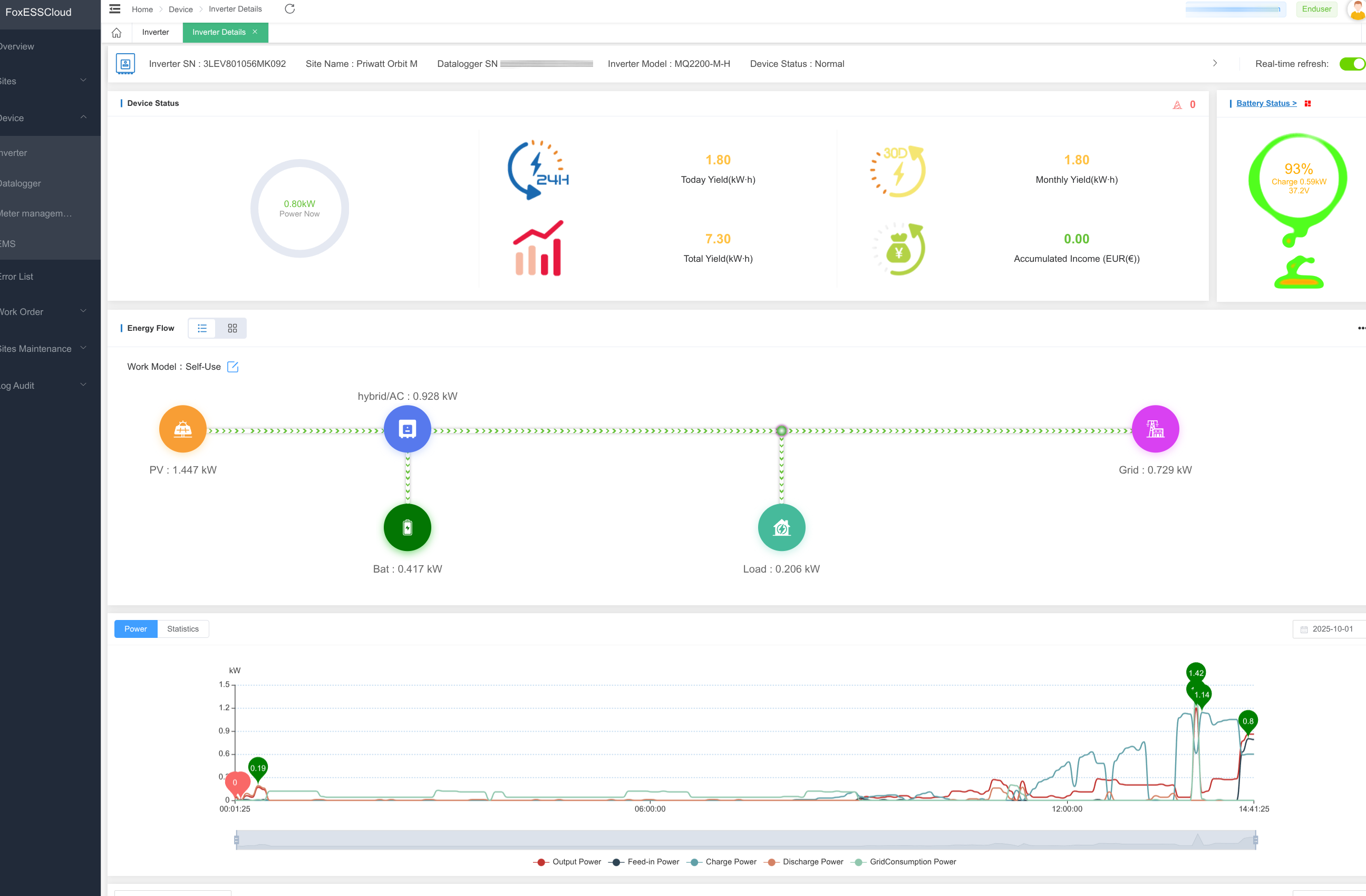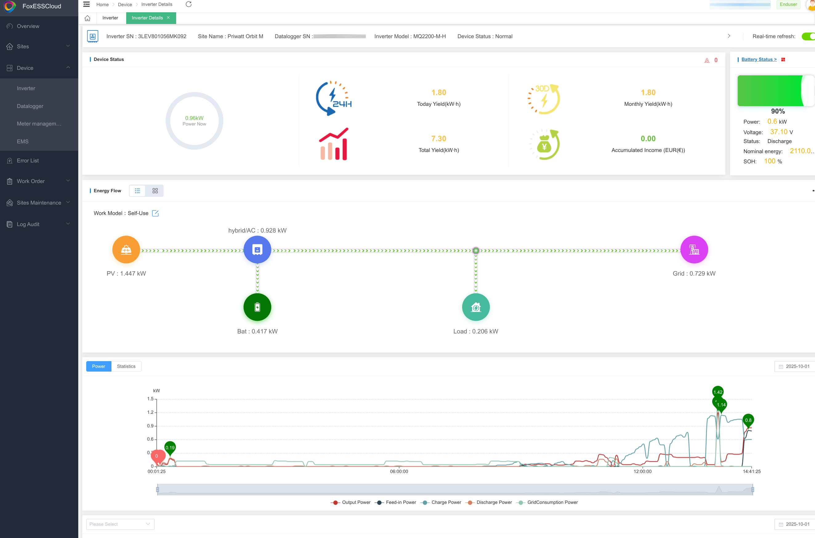 Die Inbetriebnahme des Speichers erfolgt mit der App Fox Cloud 2.0 des Herstellers Fox ESS. Dieser bietet auch eine informative Web-Ansicht.