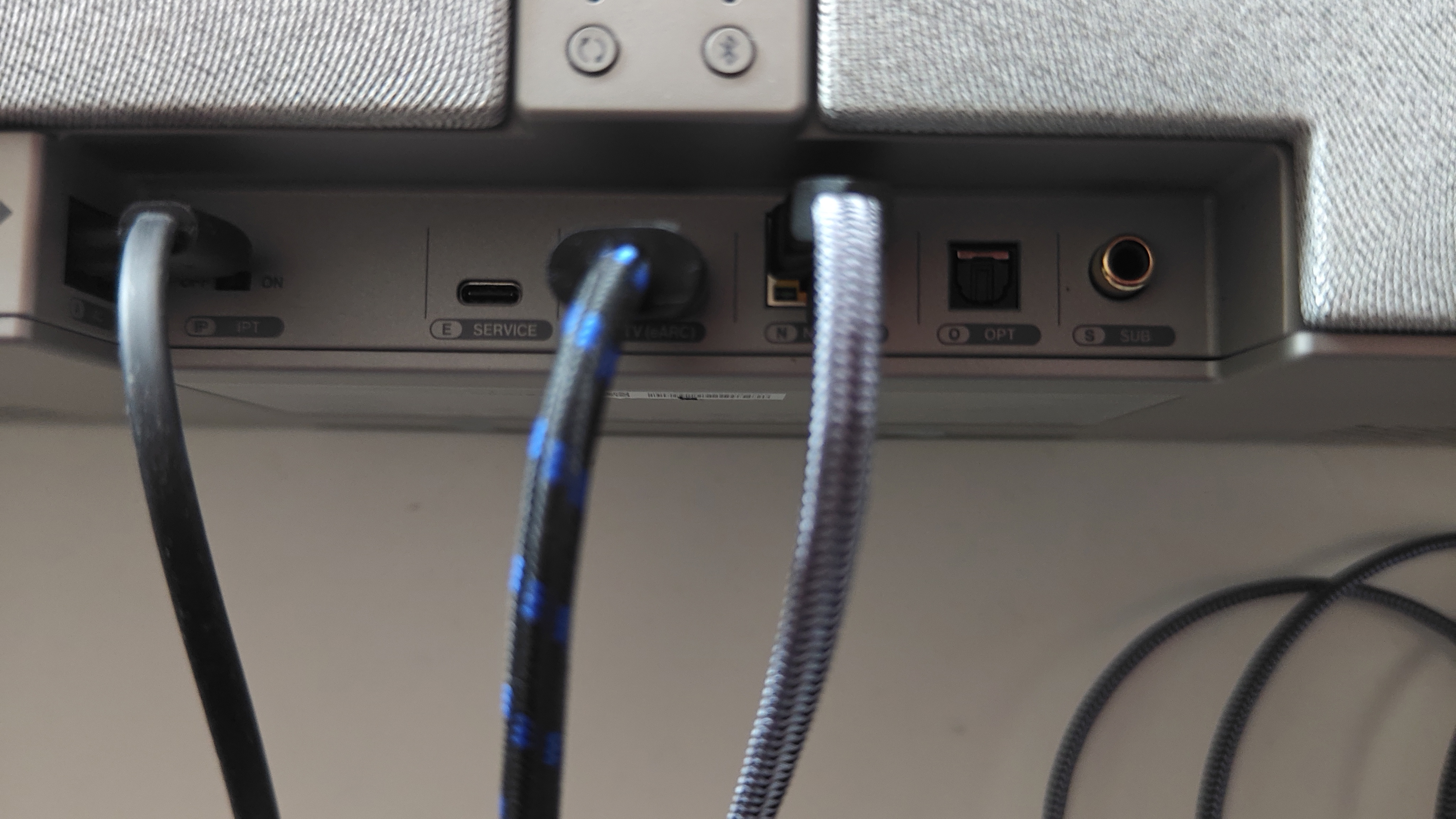- HDMI eARC: Dies ist der primäre Anschluss für die Übertragung hochauflösender Audiosignale (inklusive Dolby Atmos) vom Fernseher zur Soundbar. Einen weiteren HDMI-Anschluss gibt es nicht. Spielekonsolen müssen also über den TV angeschlossen werden.