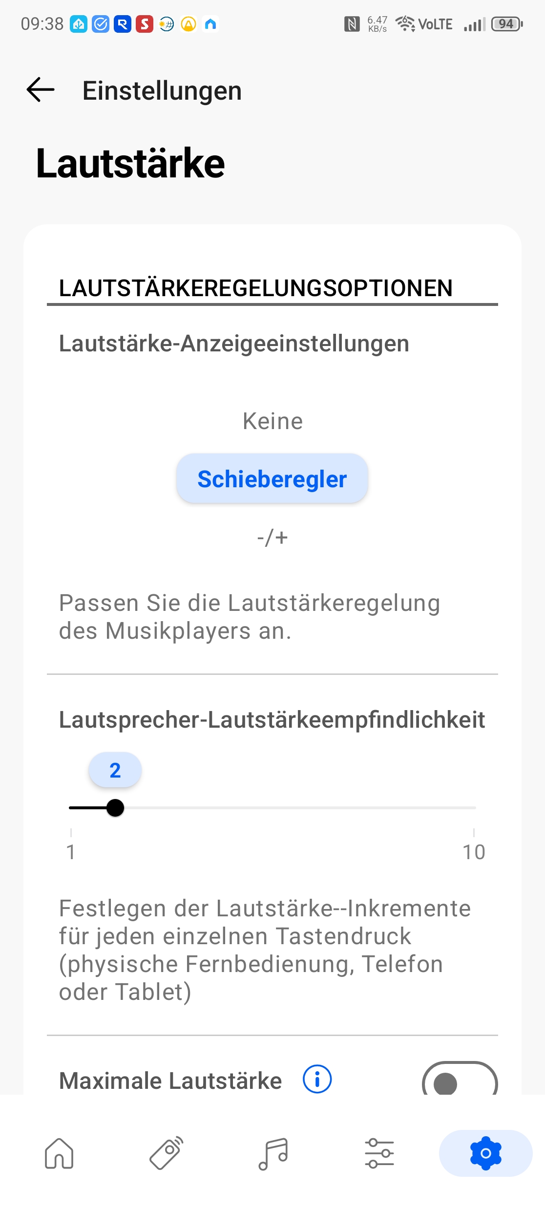 Die App ist einfach zu bedienen und bietet zahlreiche Konfigurationsoptionen, etwa die Anpassung der Lautstärkeregelung. Auch kann man damit die Netzwerkgeschwindigkeit ermitteln und Firmware-Updates durchführen.