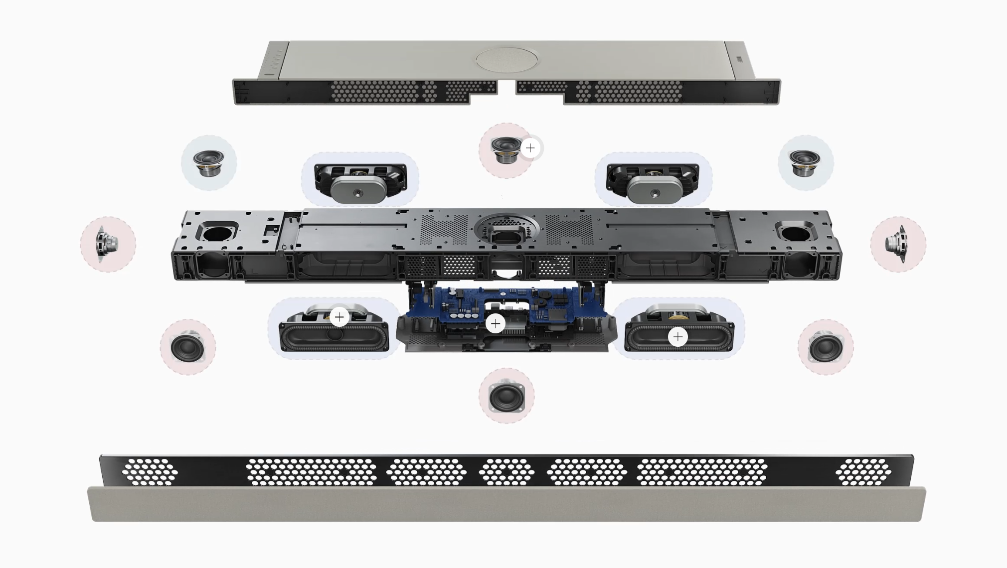- Intelligente Ausrichtung: Ein Lagesensor erkennt automatisch, ob die Soundbar steht oder hängt, und schaltet die Lautsprecherkanäle entsprechend um.