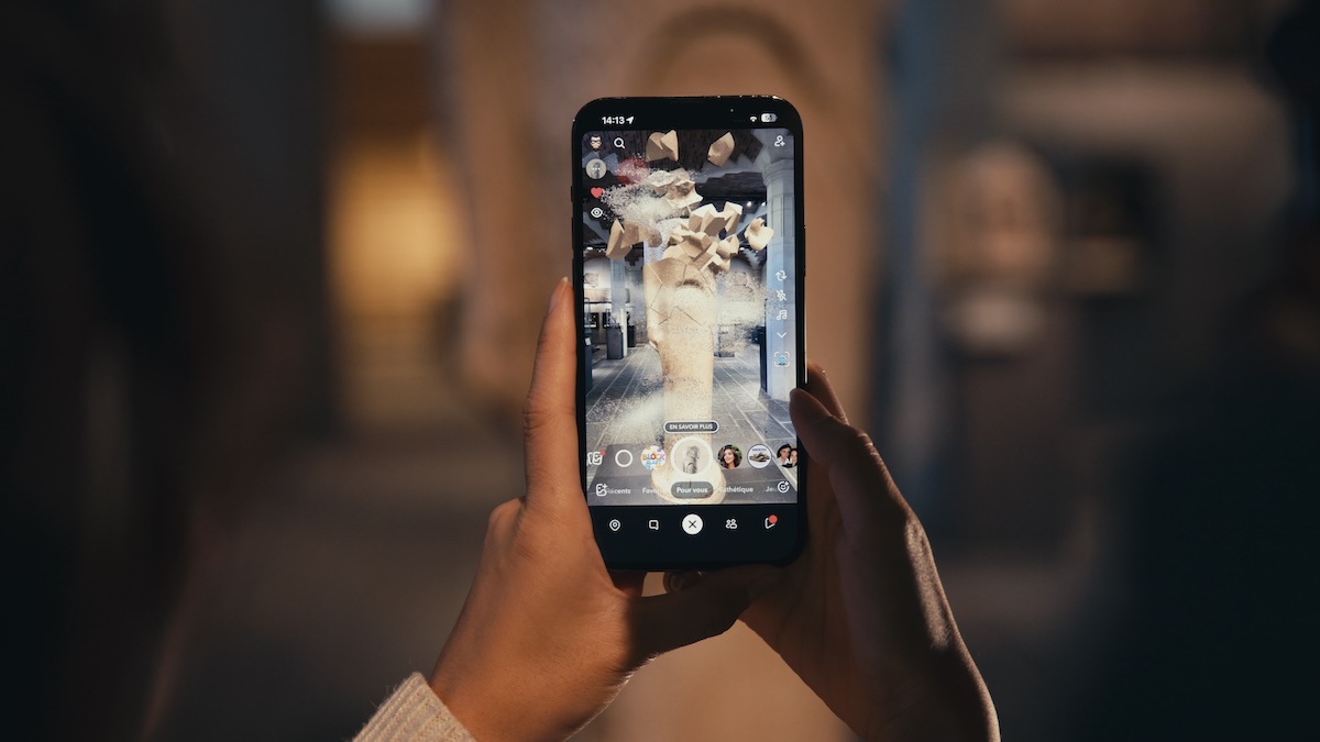 Skulpturen, die wieder eins werden, Farben, die leuchten und Objekte, die zum Leben erwachen: Die Kollaboration von Louvre x Snapchat bringt Augmented Reality ins Museum – und lässt die Meisterwerke neu sehen.