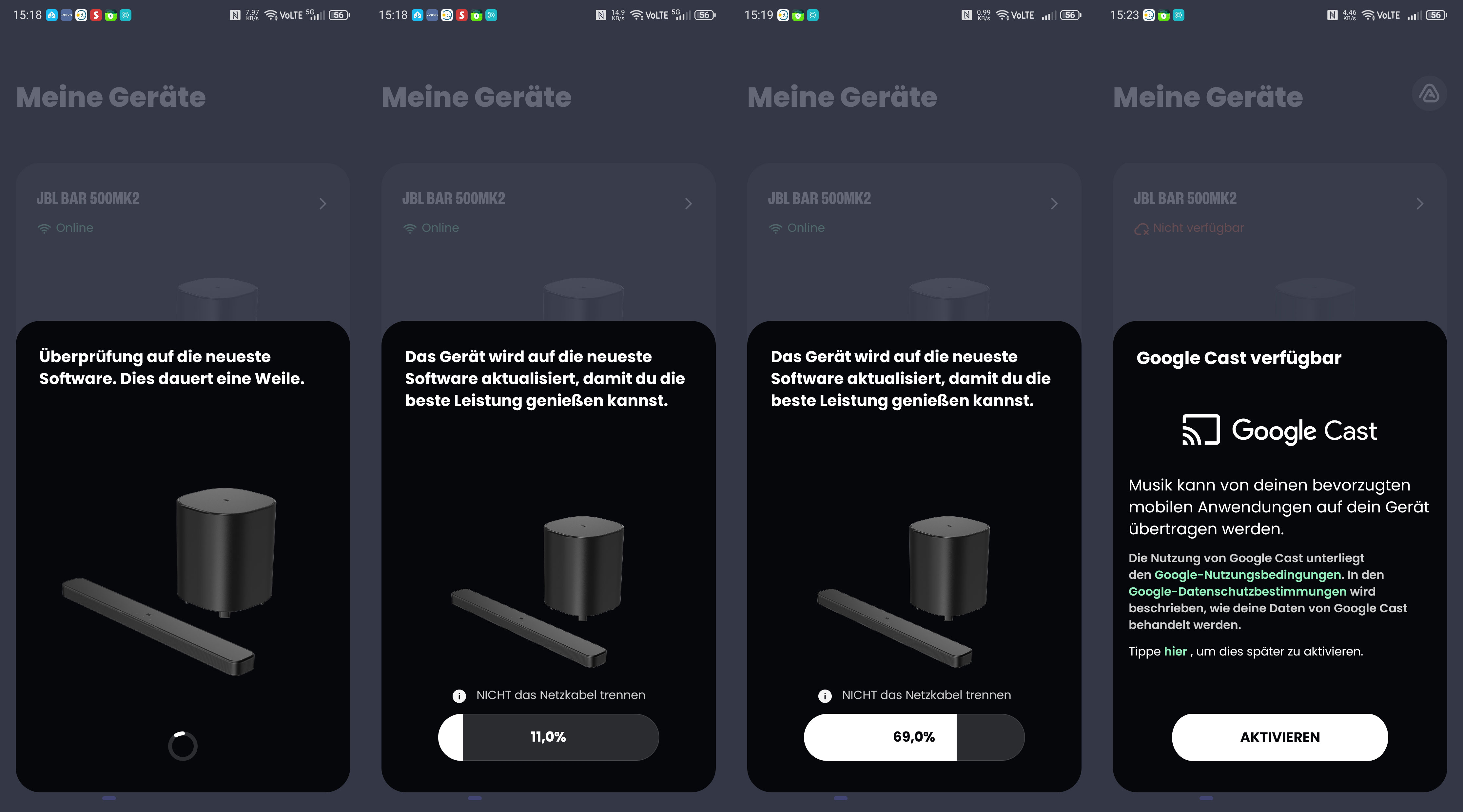 Mit der App JBL One ist die Inbetriebnahme inklusive Firmware-Update und Kalibrierung schnell abgeschlossen.