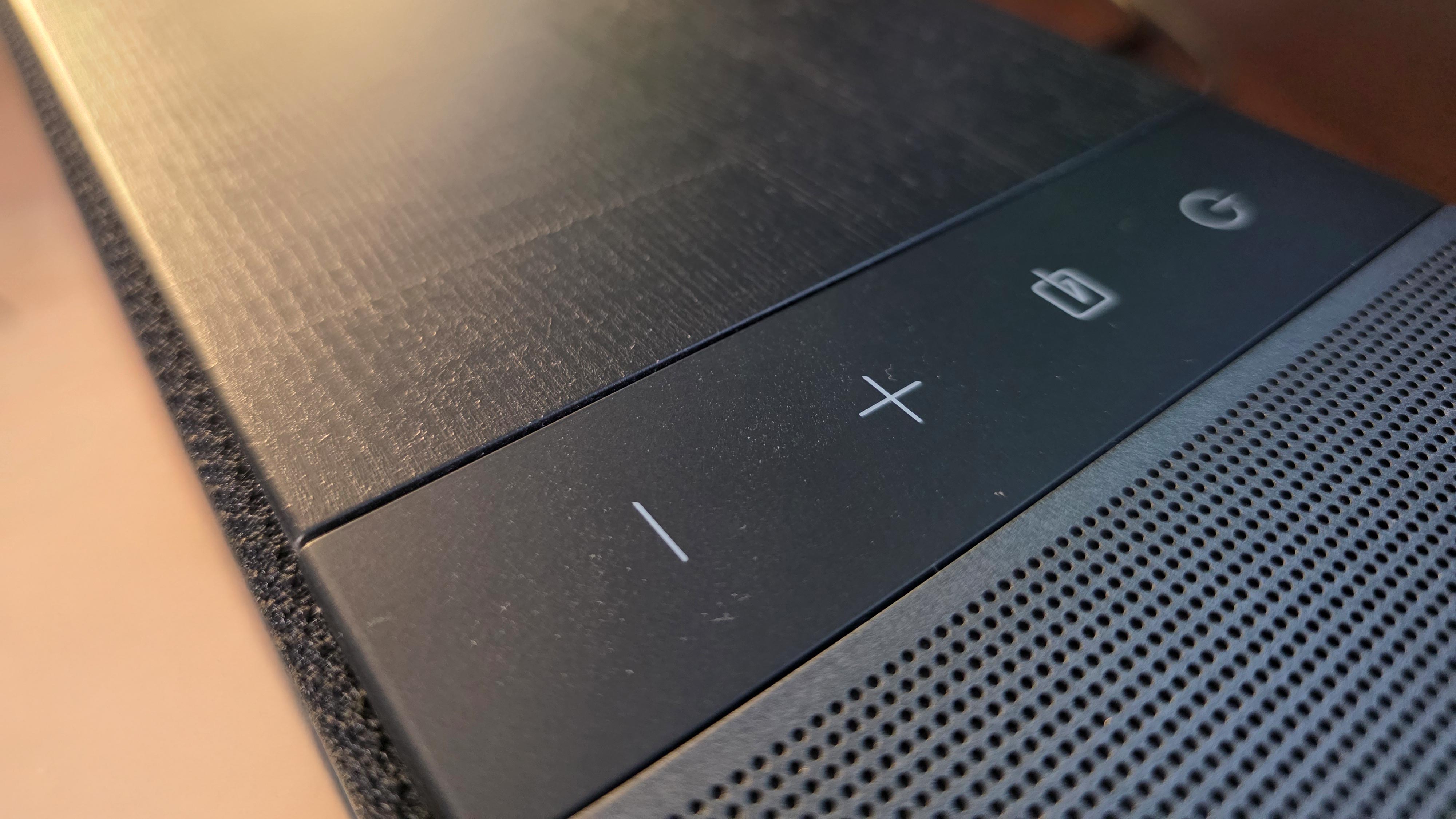 Tasten auf der Oberseite ermöglichen eine Grundbedienung ohne App, ein Display gibt es leider nicht. Die Verarbeitung ist solide, die ganze Soundbar wirkt hochwertig. Die beiliegende Fernbedienung besteht zwar nur aus Kunststoff, liegt mit ihren deutlichen Rundungen aber gut in der Hand und wirkt nicht billig.