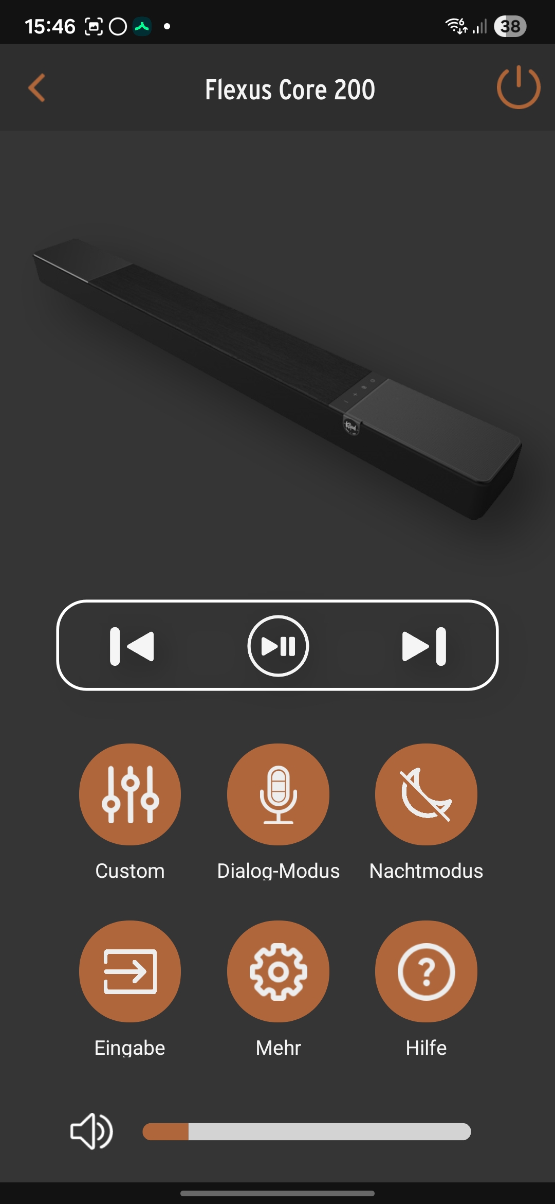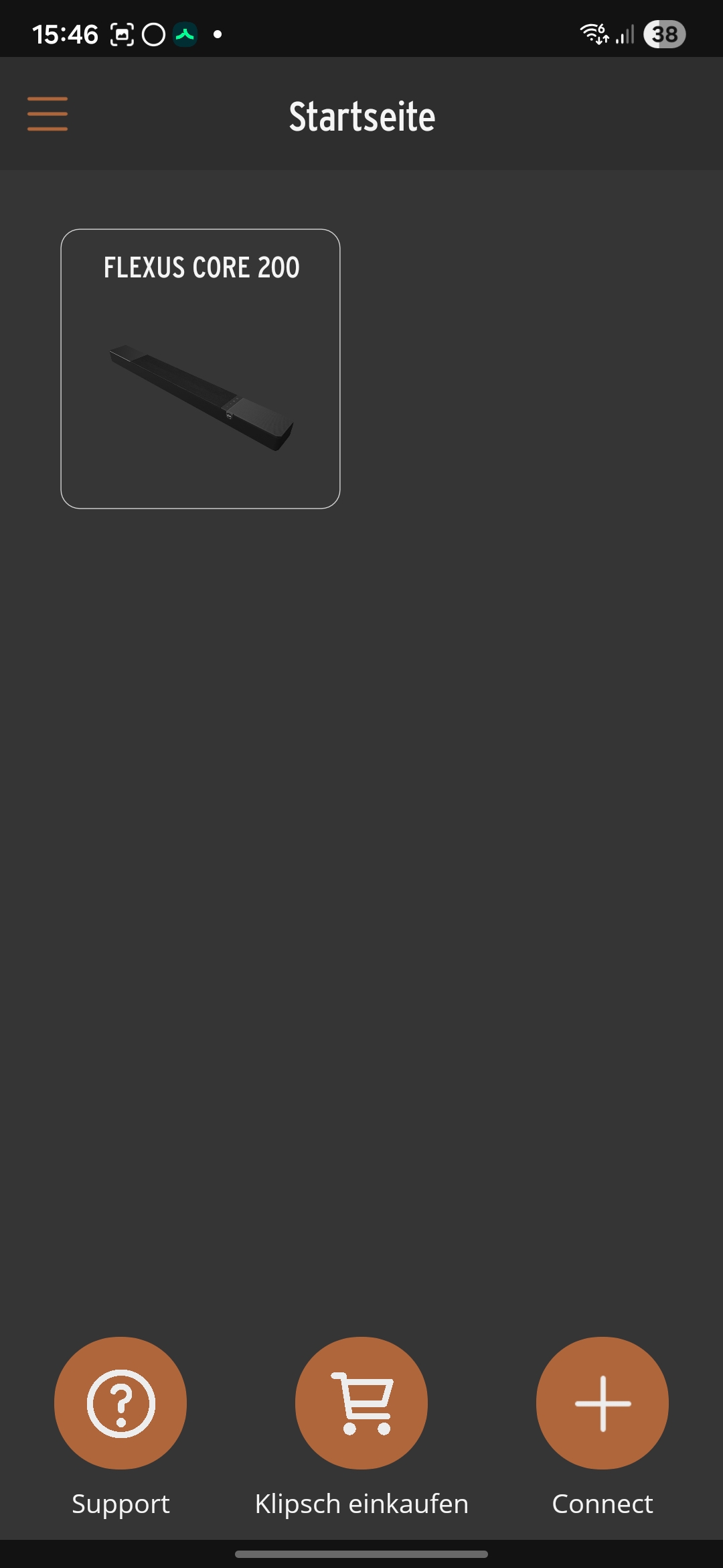 Die Klipsch Connect Plus-App verbindet sich per Bluetooth mit der Soundbar und ermöglicht Zugriff auf Funktionen wie Klangmodi, Pegel, Dialog-Anhebung sowie einen einfachen Equalizer.