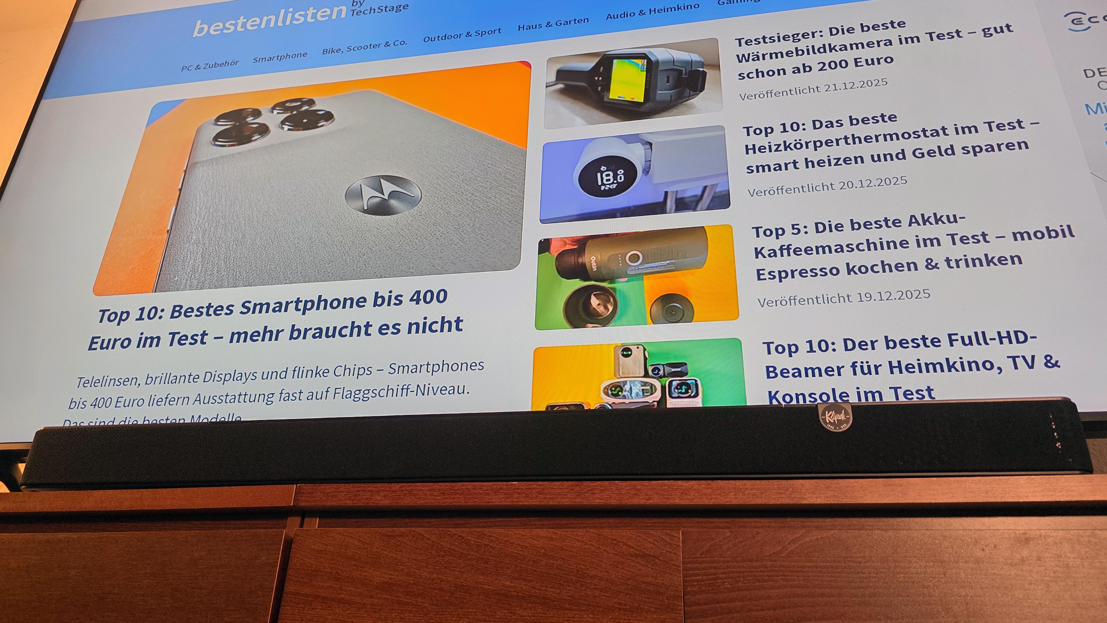 Bei Musik waren wir enttäuscht, schließlich gilt Klipsch als Audiospezialist. Während die Soundbar in Tests oft als dynamisch und kräftig beschrieben wird, empfanden wir die Flexus Core 200 hier als eher flach und wenig dynamisch. Das mag für Stile wie Pop und Elektro noch passen, weil Kickbass und Grundton voll und ausreichend deutlich klingen. Zudem bleibt die Soundbar auch bei höherer Lautstärke stabil. Bei komplexer Musik wirkt die Abstimmung hingegen weniger ausgewogen. Begriffe wie „fein“ oder „differenziert“ finden wir hier eher unpassend – schade.