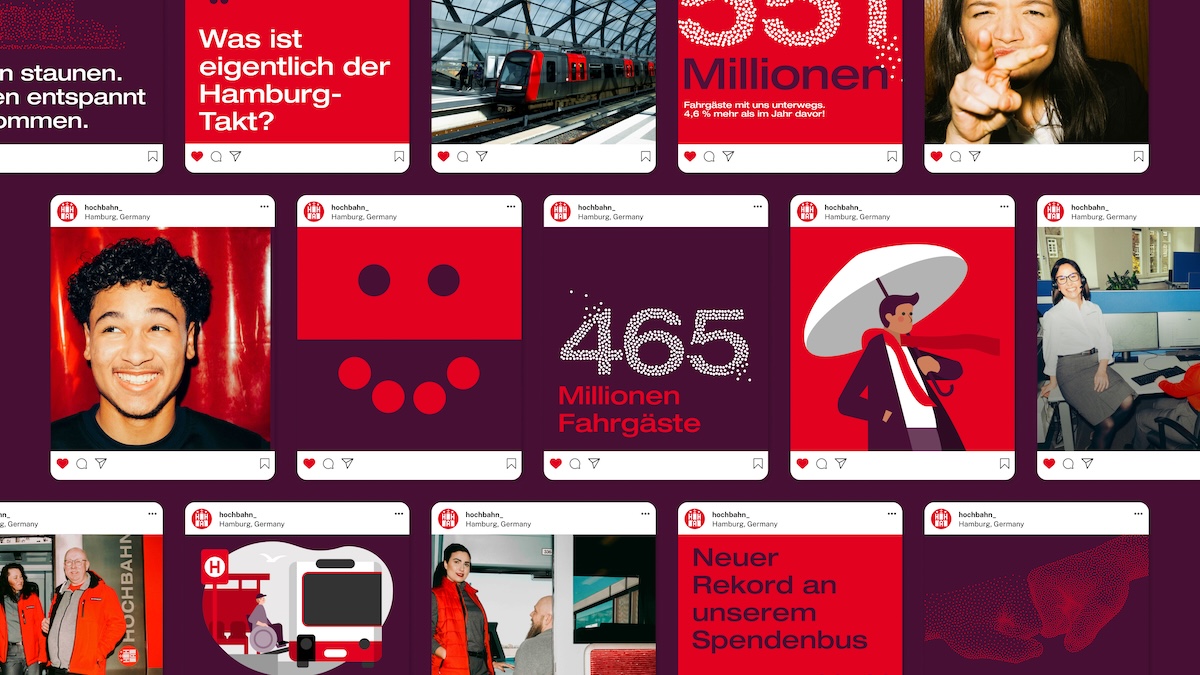 Elegant wie die Hansestadt selbst und gleichzeitig mit Pünktchen versehen, mit Unbeschwertheit und Aubergine: Die Agentur Strichpunkt entwickelt den Markenauftritt der Hamburger Hochbahn weiter. Und das mit viel Gefühl – und mit einer besonderen Idee.