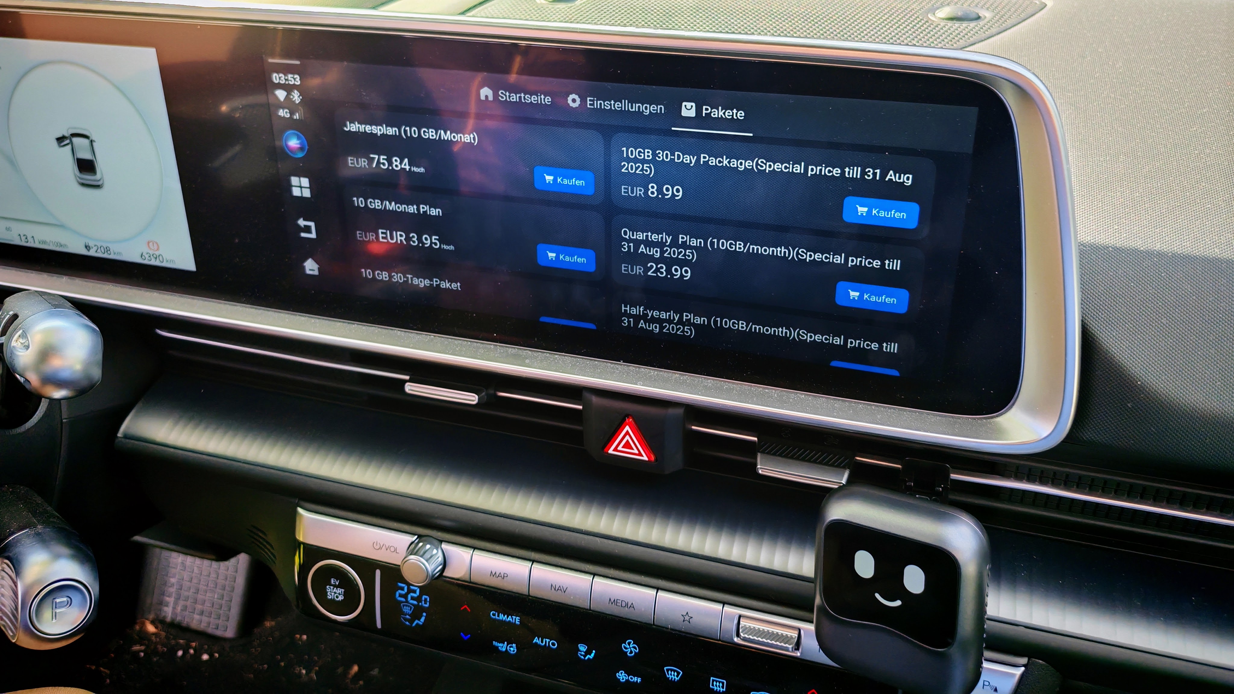 Für den Betrieb des Systems wird eine eigene Internetverbindung benötigt. Dazu legt man entweder eine SIM-Karte ein oder baut mit dem Smartphone einen WLAN-Hotspot auf. Die Nano AI verfügt außerdem über eine integrierte eSIM. Ab Werk stehen 1 GB Datenvolumen kostenlos zur Verfügung, danach lassen sich weitere Pakete hinzubuchen. Ein Jahresabo mit 10 GB pro Monat kostet rund 75 Euro, ein Monatspaket etwa 9 Euro.