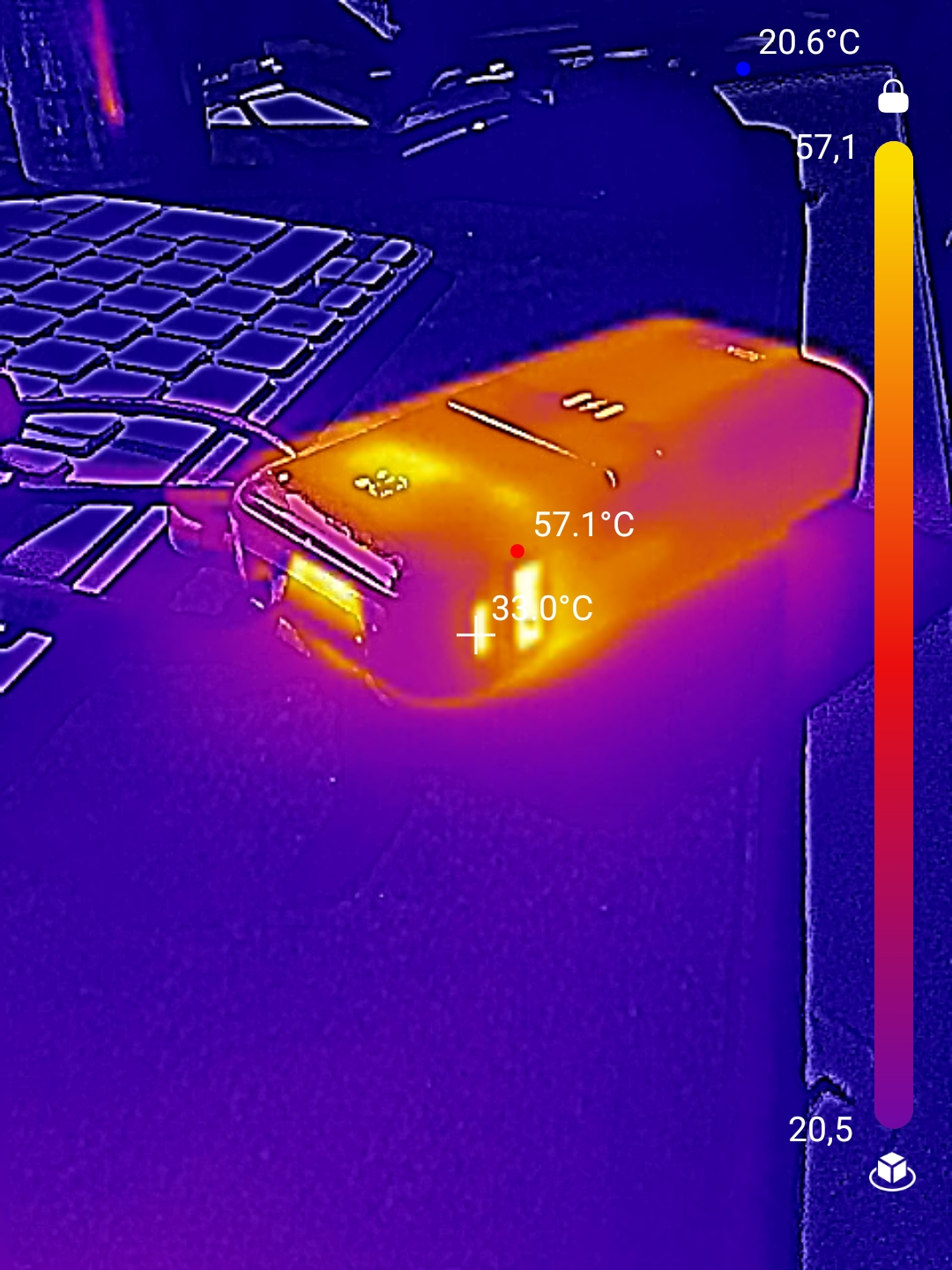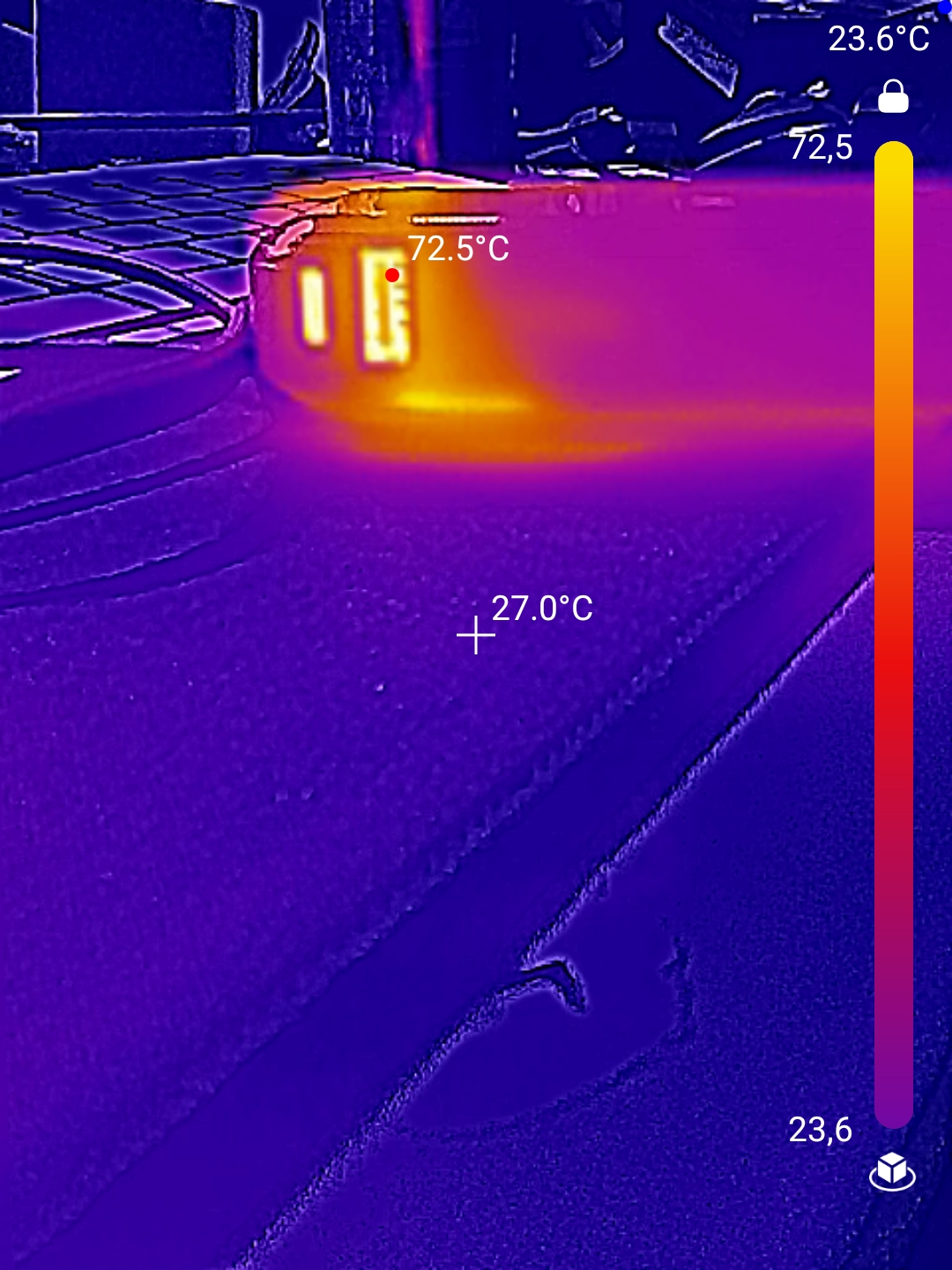 Allerdings offenbart sich bei hoher Belastung ein Problem: Unter Volllast wird die Powerbank mit über 40 Grad sehr warm und unterbricht mehrfach die Stromverbindung aufgrund von Überhitzung. Dies ist ein deutlicher Nachteil, besonders wenn man leistungshungrige Geräte wie Laptops längere Zeit mit Strom versorgen möchte.
