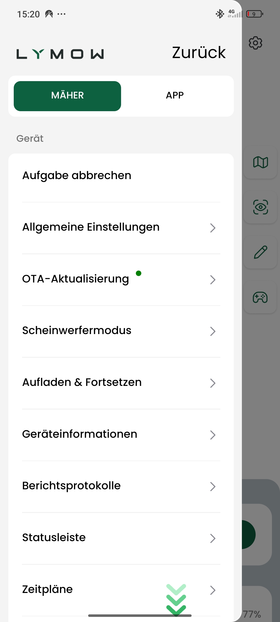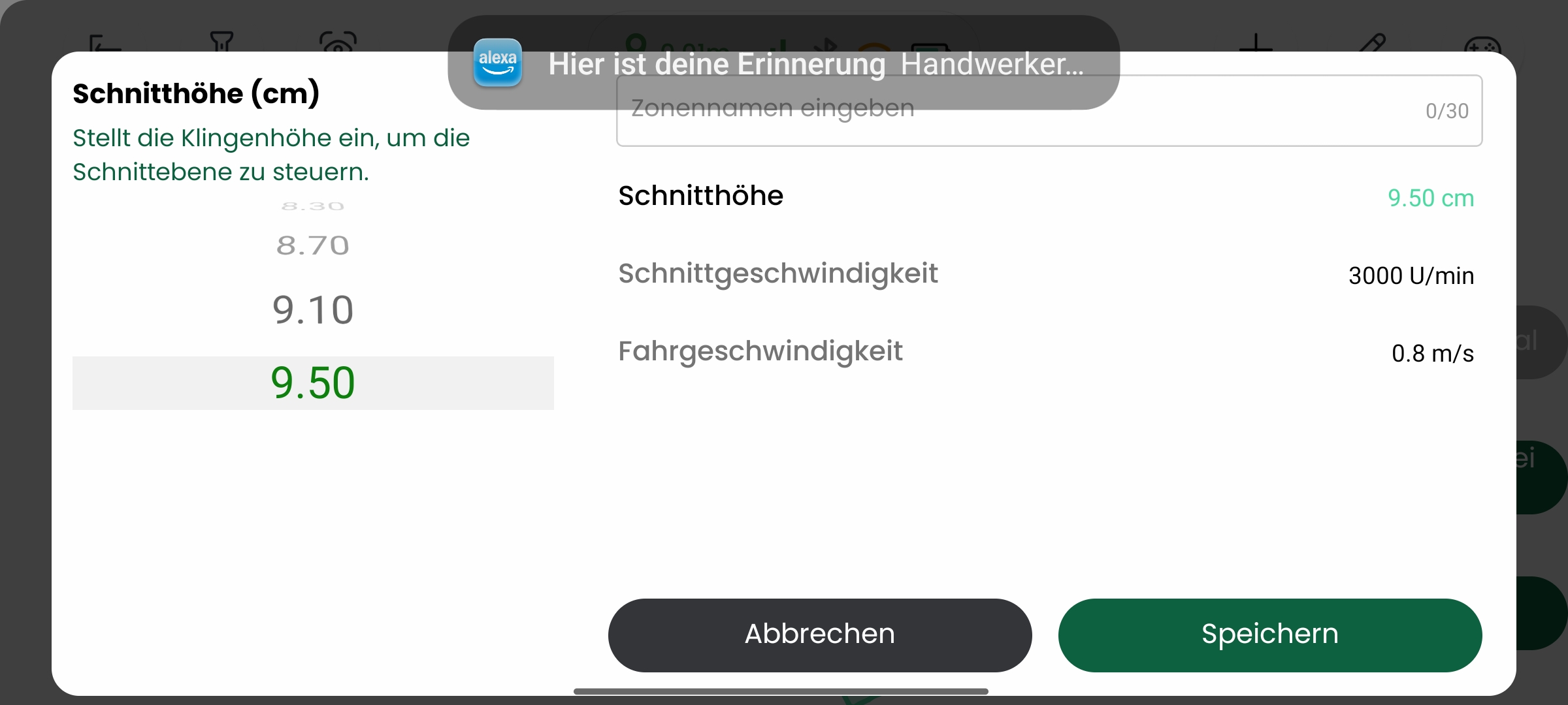 Updates sollen weitere Funktionen ergänzen und die ganze App „runder“ machen. Gut so, denn im Testbetrieb wirkte sie an einigen Stellen noch wenig intuitiv. So muss man Aufgaben etwa über einen Extra-Menüpunkt und nicht direkt auf der Hauptseite abbrechen. Außerdem vergisst der Mäher beim manuellen Zurücksenden zur Ladestation trotz entsprechender Aufforderung seine begonnene Aufgabe. Zudem weisen die abgefahrenen Bahnen in der App immer wieder schmale, ungemähte Bereiche aus. In der Realität fährt er aber überlappend. Nicht zuletzt verlangt der Lymow One für Änderungen an Mähhöhe oder Geschwindigkeit immer erst einen Stopp, dann einen Wechsel in den Kartenbearbeitungsmodus und erst dann können die Einstellungen angepasst werden – für jede Mähzone einzeln wohlgemerkt. Auch bei der Bedienlogik hapert es bisweilen leicht. So muss der Nutzer bei der Auswahl von Teilflächen nicht erst die Flächen, sondern erst den „Mähen“-Button und danach die Teilflächen aussuchen. Die Markierung der ausgewählten Mähfläche mittels einer feinen grünen Umrandung ist dabei kaum zu erkennen.