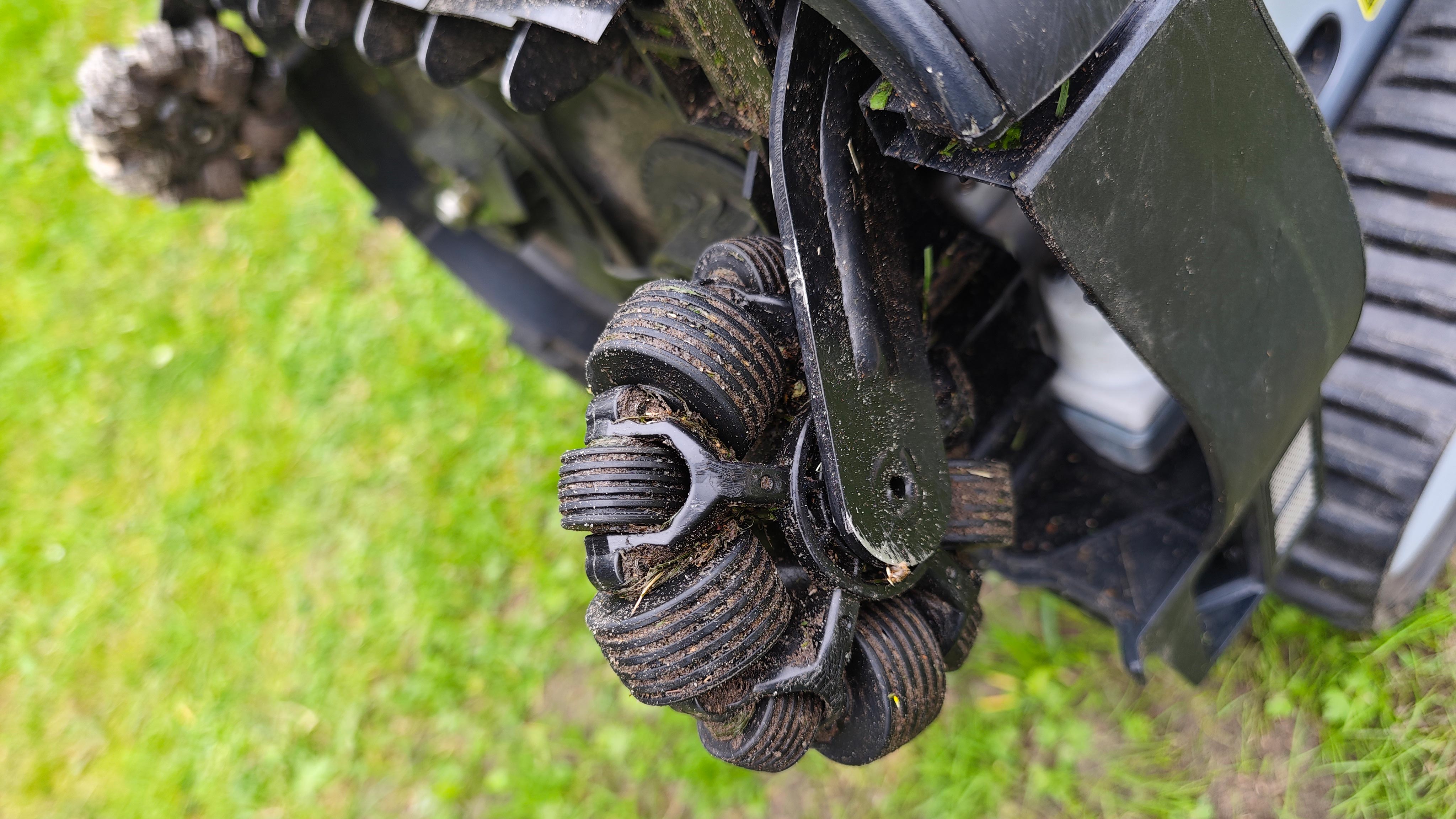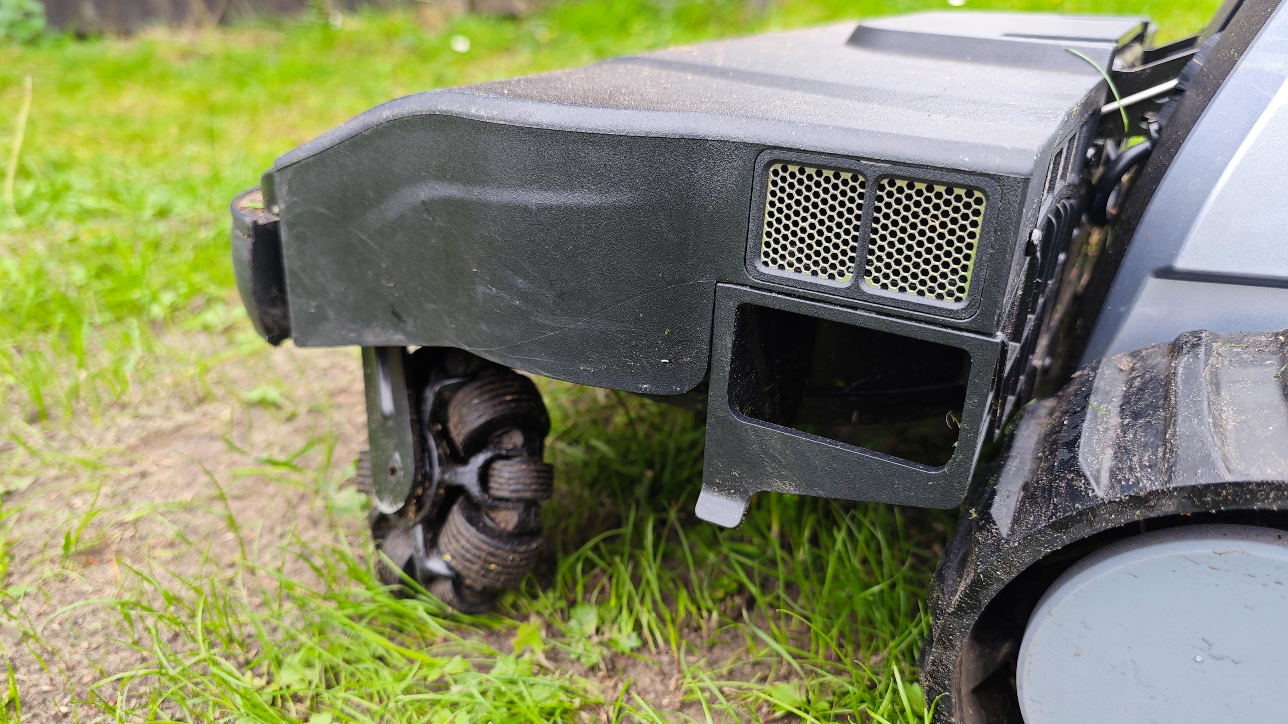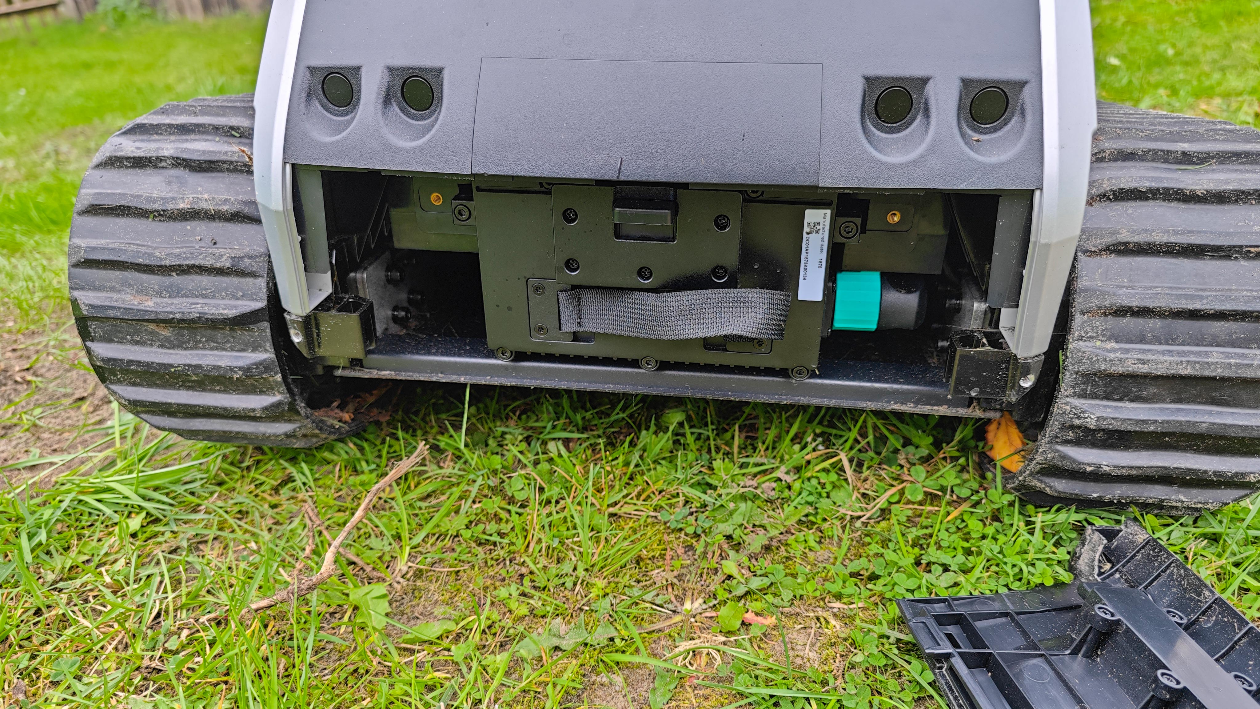 Während des Tests sind zudem weitere Dinge aufgefallen – eines davon könnte zu Problemen führen. So bemerkten wir unregelmäßiges Knacken der Ketten, was nach Angaben der Entwickler von Lymow entweder an zu hoher oder niedriger Spannung liegen könnte. Welche Spannung die richtige ist, konnte man indes nicht sagen. Zudem ist das Spannen der Ketten vergleichsweise aufwendig, da nicht nur der Akku entnommen, sondern auch der Unterbau abgeschraubt werden muss. Hier wäre eine selbst spannende Kette sinnvoll gewesen, echte Probleme gab es im mehrwöchigen Testzeitraum trotz des Knackens nicht. Tipp: regelmäßig prüfen, ob die Spannung beider Ketten zumindest gefühlt gleich ist. Außerdem sollte man sie wegen der offenen Konstruktion gelegentlich auf Verschmutzung überprüfen, die zu teilweisem Blockieren der Ketten führen kann. Dann fährt der Roboter nicht mehr geradeaus, sondern pendelt ständig von links nach rechts.