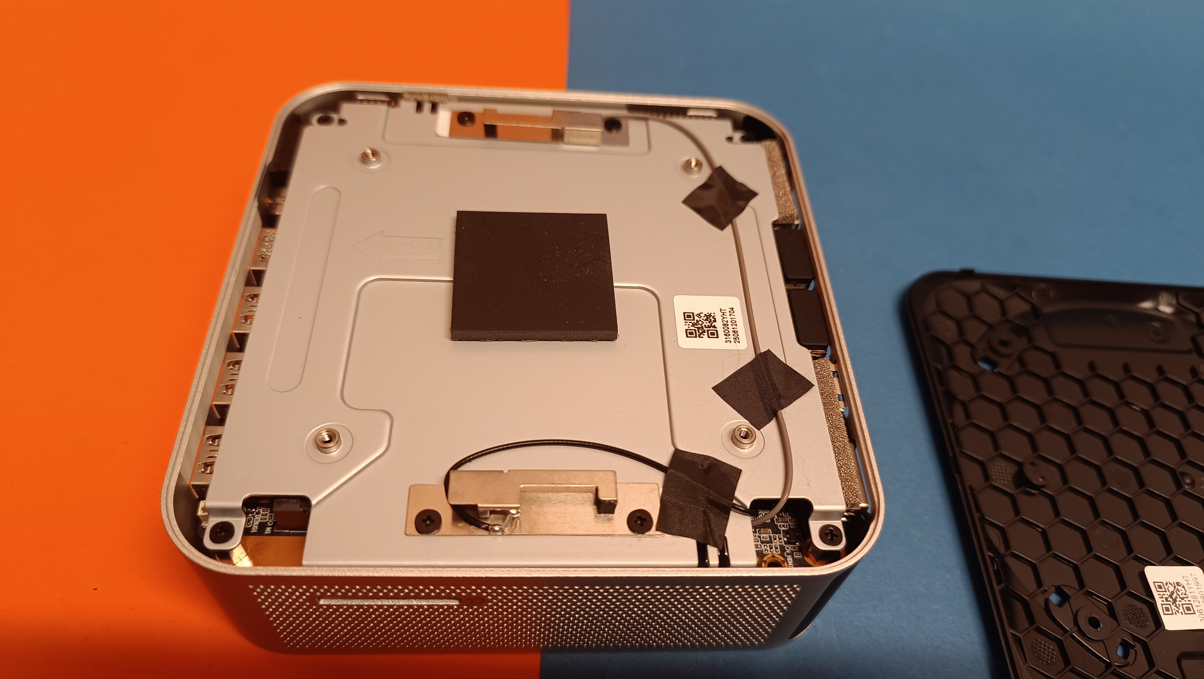 Aufbau des großen Panther-Lake-Prozessors. Zwei kleine Siliziumchips dienen ausschließlich der Stabilisierung und tragen keine Transistoren.