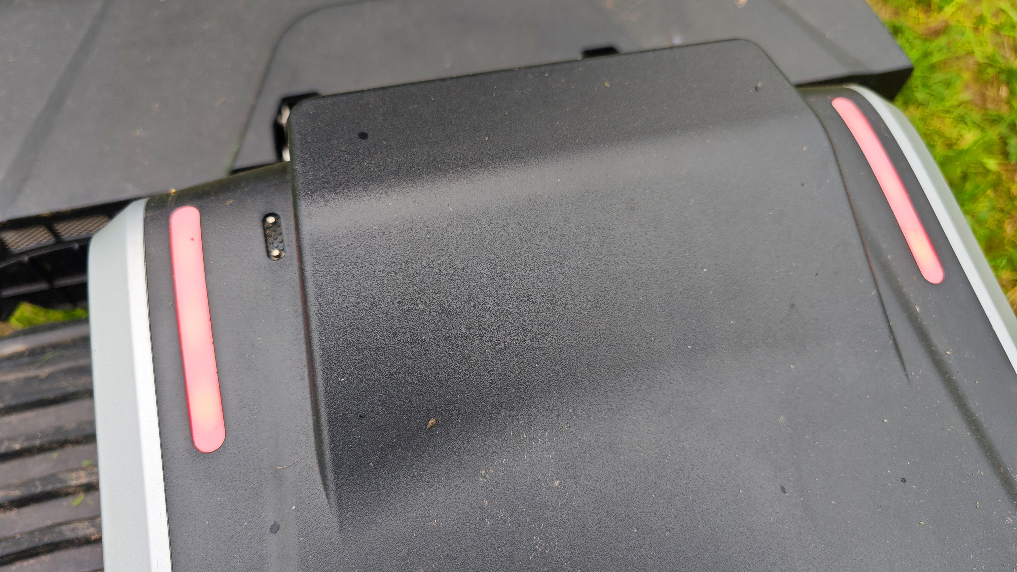 Die Hinderniserkennung reagiert dank 3D-Kamera und Ultraschallsensoren auch ohne Kontakt über den Bumper und erkennt dabei Hindernisse ab 5×5 Zentimeter Größe. Die Erkennungsrate lässt sich in der App anpassen. Auf hoher Sensibilität klappte die Erkennung einwandfrei, Bäume, Spielzeug, Gartenschlauch und auf dem Rasen liegendes Werkzeug wurden zuverlässig erkannt und umkurvt. Igel sollten damit nicht unter die Ketten (oder schlimmer noch: die Mähbalken) kommen. Dennoch raten wir dringend vom Nachtmähen ab, das der Hersteller für seine Tagesleistung von stolzen 7000 m² einplant und entsprechend mit LED-Lampen unterstützt. Derzeit gibt es schlichtweg keine Mähroboter, die zu 100 Prozent sicher Hindernissen (und damit auch Tieren wie Igeln, Schlangen oder Kröten) ausweichen.