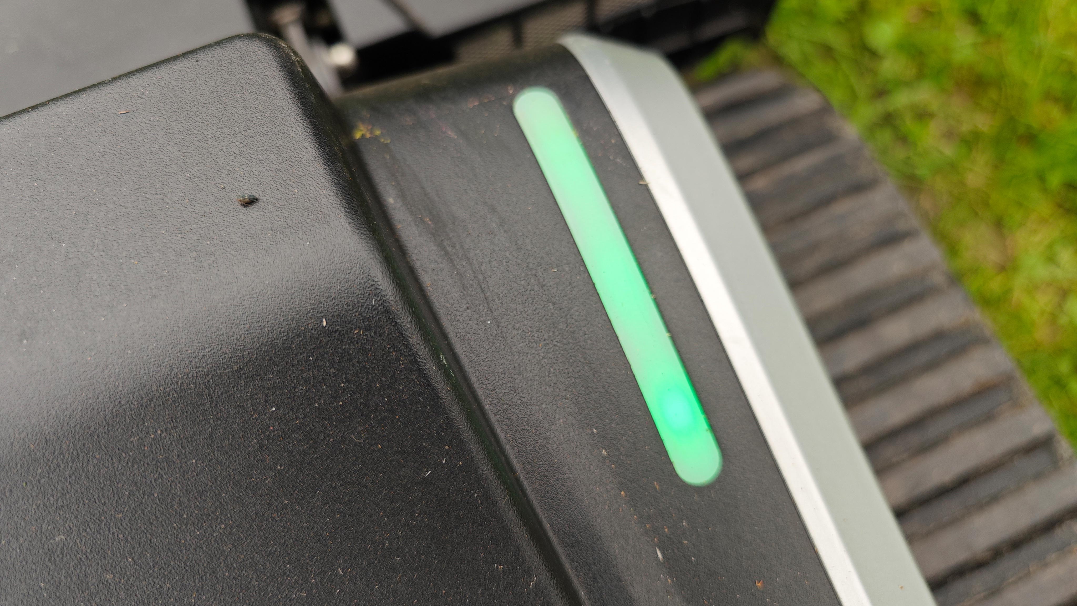 Im Test kehrte der Mäher von Update zu Update zuverlässiger zur Ladestation zurück. Benötigte er dafür anfangs noch mehrere Anläufe, klappte das gegen Ende des Testzeitraums meist direkt oder beim zweiten Anlauf. QR-Markierungen an der Station helfen dem Mäher anhand seiner Kameras dabei, weshalb er auch bei Tag immer die LED-Leuchten für die Rückkehr zur Ladestation aktiviert.