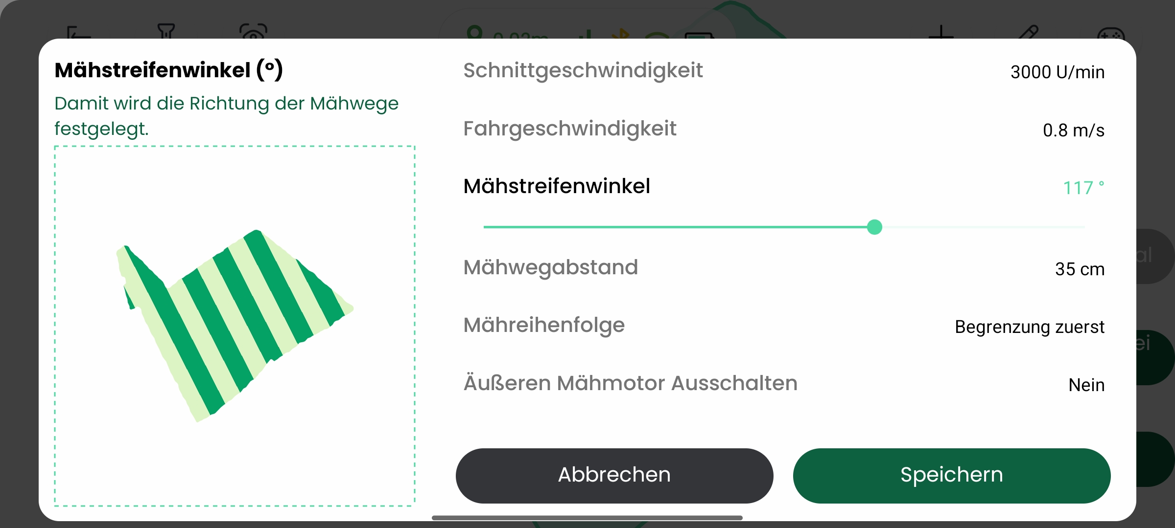 Weitere Einstellungsmöglichkeiten beziehen sich auf die Ausrichtung der Mähbahnen, die in Echtzeit grafisch geändert und angezeigt werden können – bei Mammotion dauert das immer etwas. Neben geraden Bahnen sind Schachbrettvarianten in frei wählbarem Winkel und Bahnenüberlappung zueinander möglich. Es gibt zudem einen Randmodus mit konfigurierbaren Runden, bei denen die Hinderniserkennung per Kamera abgeschaltet ist. Dadurch soll der Lymow One auch unter überhängenden Zweigen und Ästen fahren können, ohne sie über die Kamera als feste Hindernisse zu erkennen. Das Erstellen von Zeitplänen, Start per Knopfdruck und Pausen bei Regen sind ebenfalls schon drin. Für letzteres verlässt sich der Lymow One sowohl auf seinen Regensensor als auch auf eine in die App eingebundene Wetter-App.