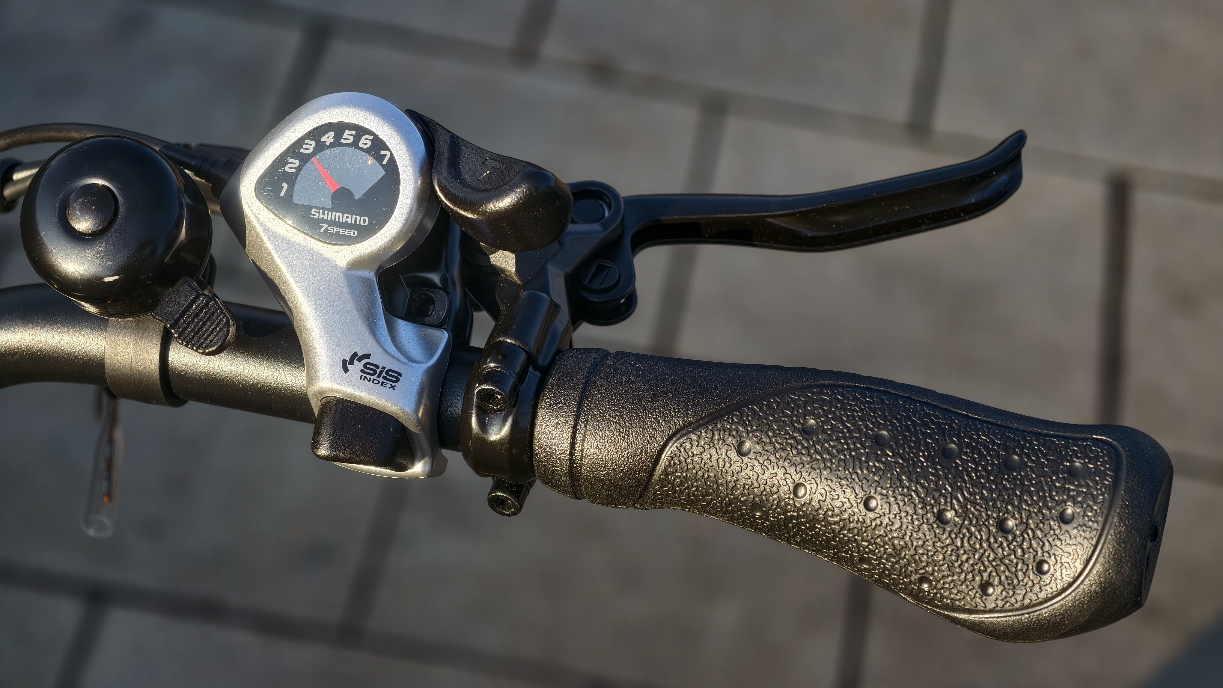 Der gebogene Lenker ermöglicht eine aufrechte, entspannte Sitzposition. Die Höhenverstellung erlaubt eine individuelle Anpassung an verschiedene Körpergrößen.