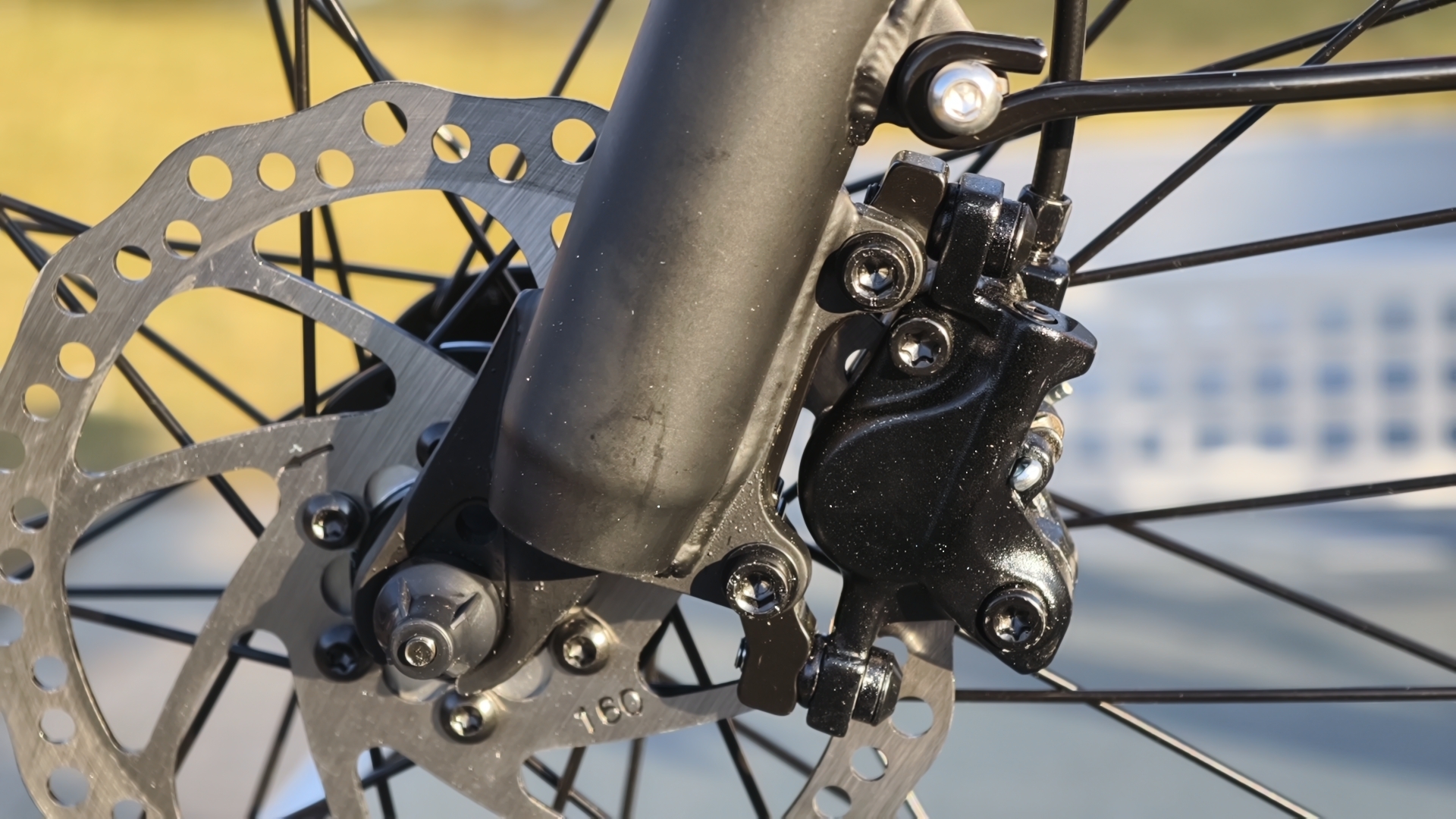 Die hydraulischen Scheibenbremsen mit 160 mm Durchmesser überzeugen mit gutem Druckpunkt und kurzem Bremsweg. Nach dem Einbremsen arbeiten sie zuverlässig. Im Vergleich zu mechanischen Bremsen ist das ein klarer Vorteil.