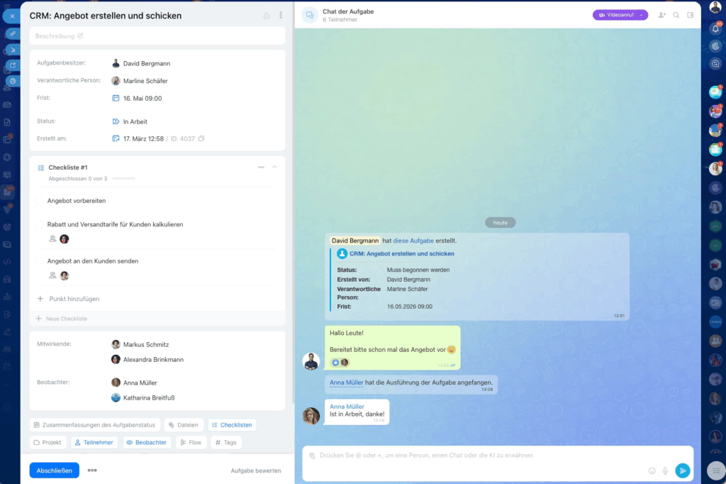 Jeder dieser Schritte funktioniert aber nur isoliert. In einer integrierten Umgebung wie Bitrix24 sieht derselbe Ablauf anders aus: