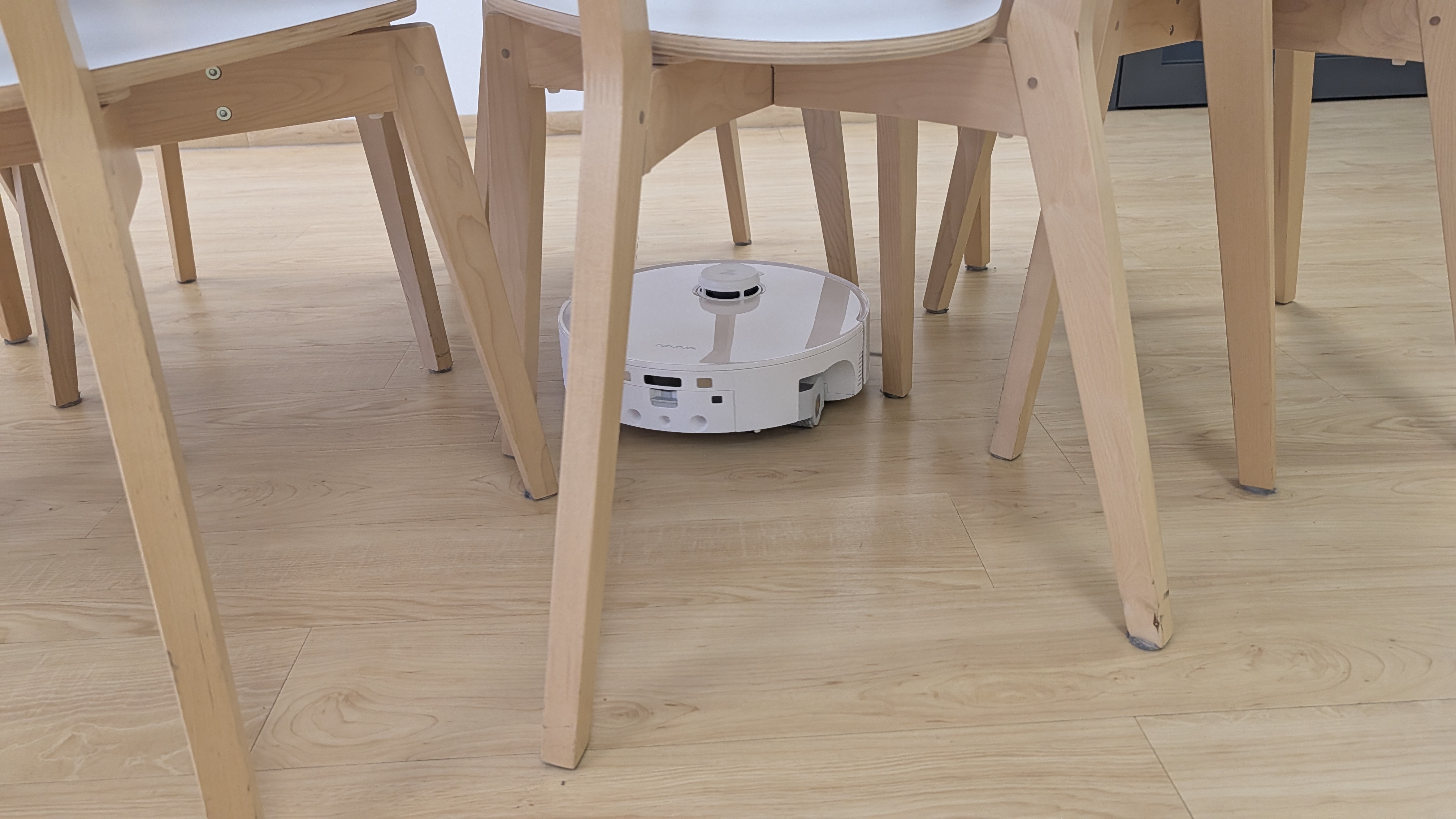 Im Test schlägt sich der Curv 2 Flow grundsätzlich gut und schreckt auch vor kniffligen Situationen nicht zurück. Mehrere Stuhlbeine, die unter dem Küchentisch eng beieinander stehen, meistert er problemlos – er fährt hinein und findet den Weg selbst wieder zurück. Rabiat wird er dabei nicht, Hindernisse hat er im Test nicht zusammengefahren.