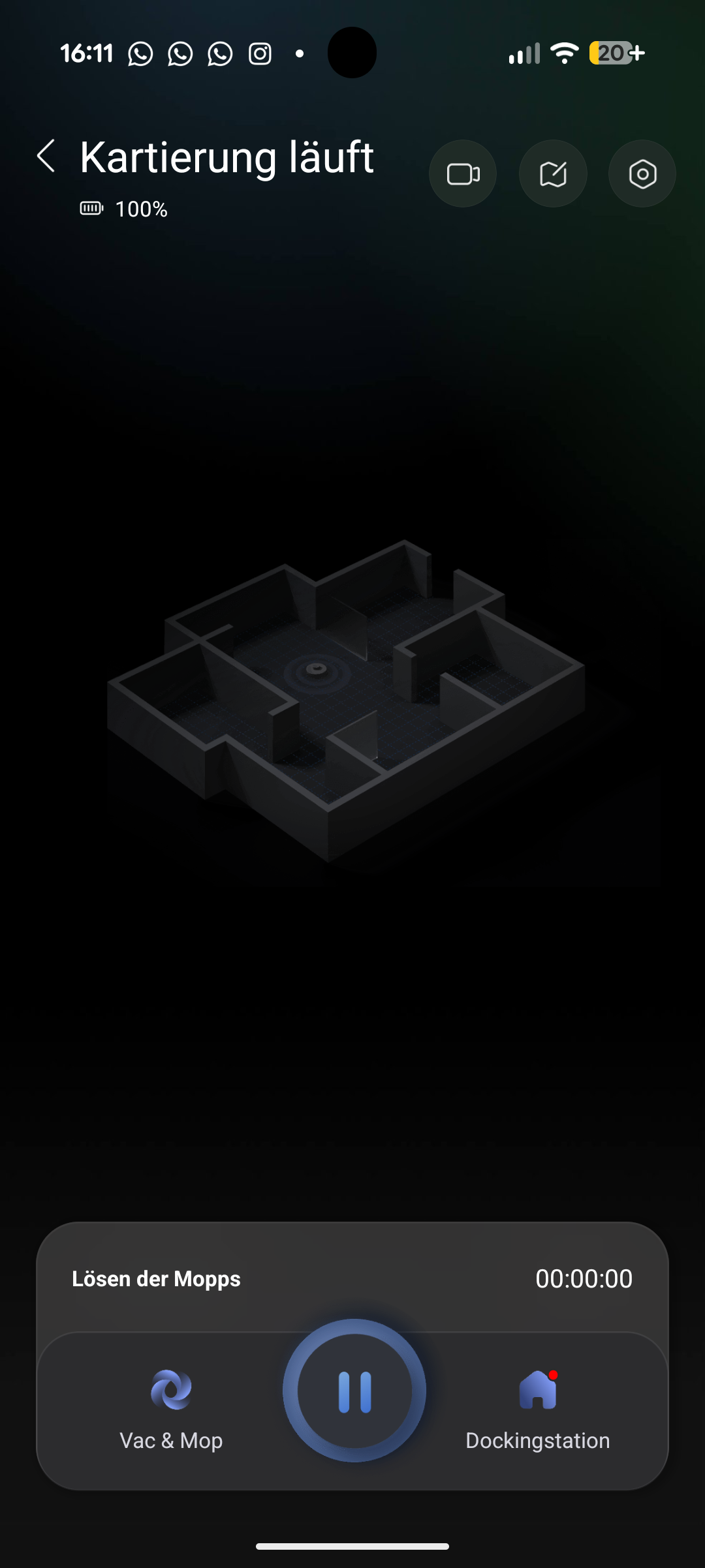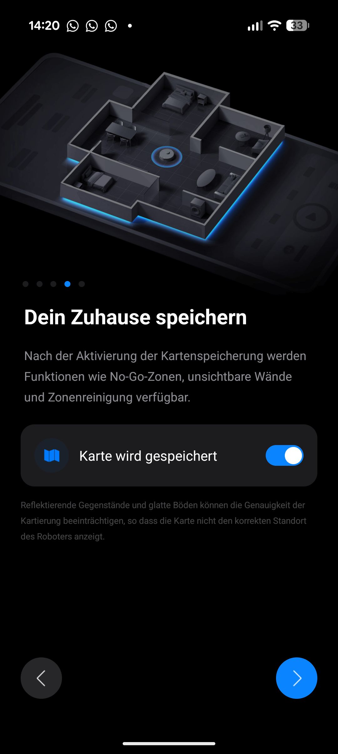 Direkt nach der Einrichtung steht ein größeres Softwareupdate an, das etwa zehn Minuten dauert. Danach startet die Kartierung der Wohnung, die je nach Größe 15 bis 20 Minuten in Anspruch nimmt. Die erstellte Karte fällt dabei etwas ausgefranster aus als etwa beim Saros 20 – die Kanten wirken nicht ganz so klar gezogen, sondern leicht huckelig. Auf die Reinigungsleistung hat das keine Auswirkung, die Räume werden dennoch klar voneinander abgetrennt.