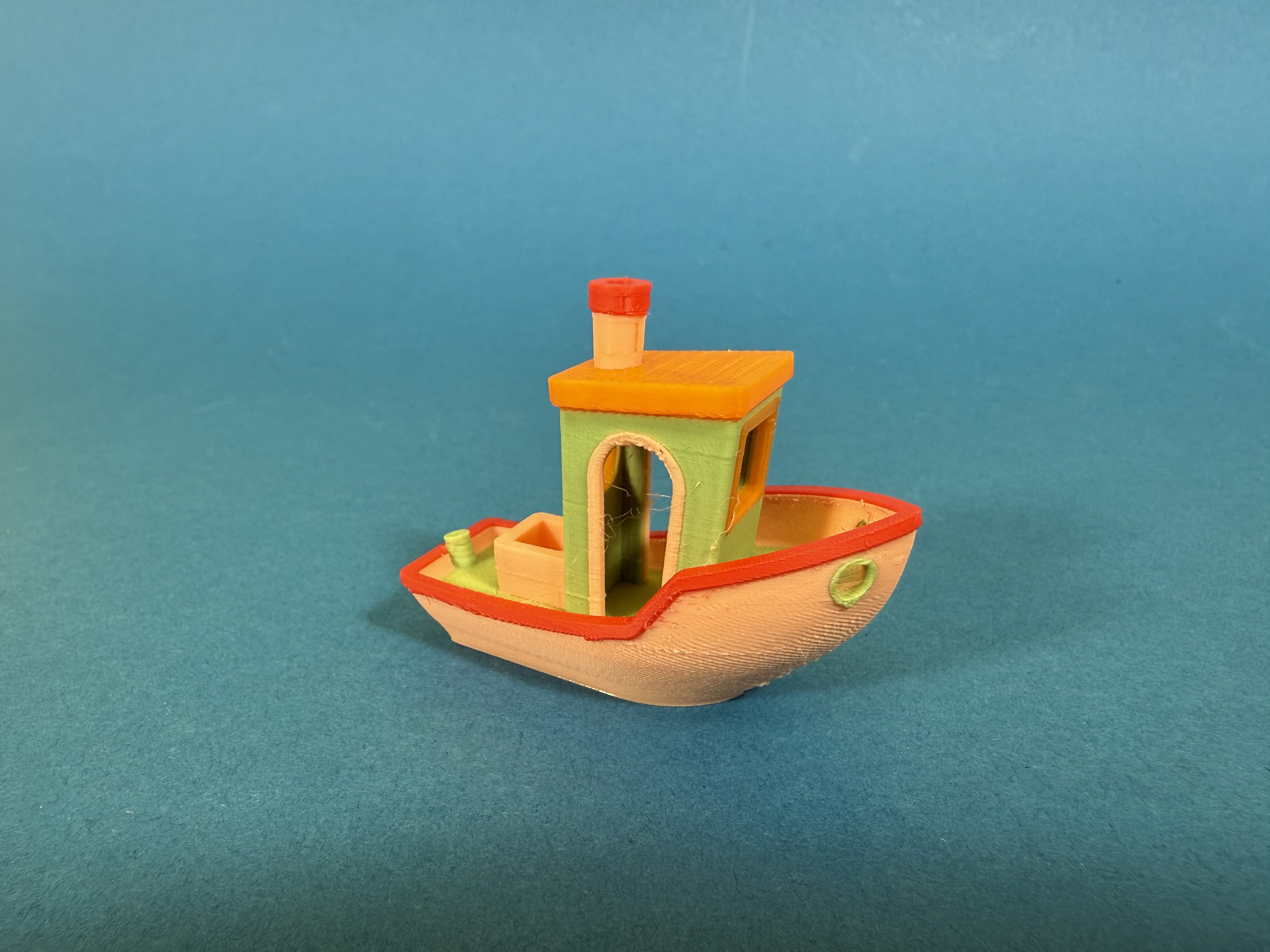 Wir haben vor allem PLA gedruckt, testweise auch ABS und TPU. In allen Fällen hat der Centauri Carbon 2 ein gutes Bild abgeliefert. Bei ABS hatten wir Haftungsprobleme, was nicht unüblich ist. Kleber auf dem Druckbett allein hat zur Unterstützung nicht gereicht. Es handelt sich hierbei um einen sehr schnellen Drucker, dessen Bewegungen für Schwingungen sorgen: Erst mit zusätzlichem Brim (einem Rand um das zu druckende Objekt) wollte unser Benchy aus ABS bei voller Geschwindigkeit haften.
