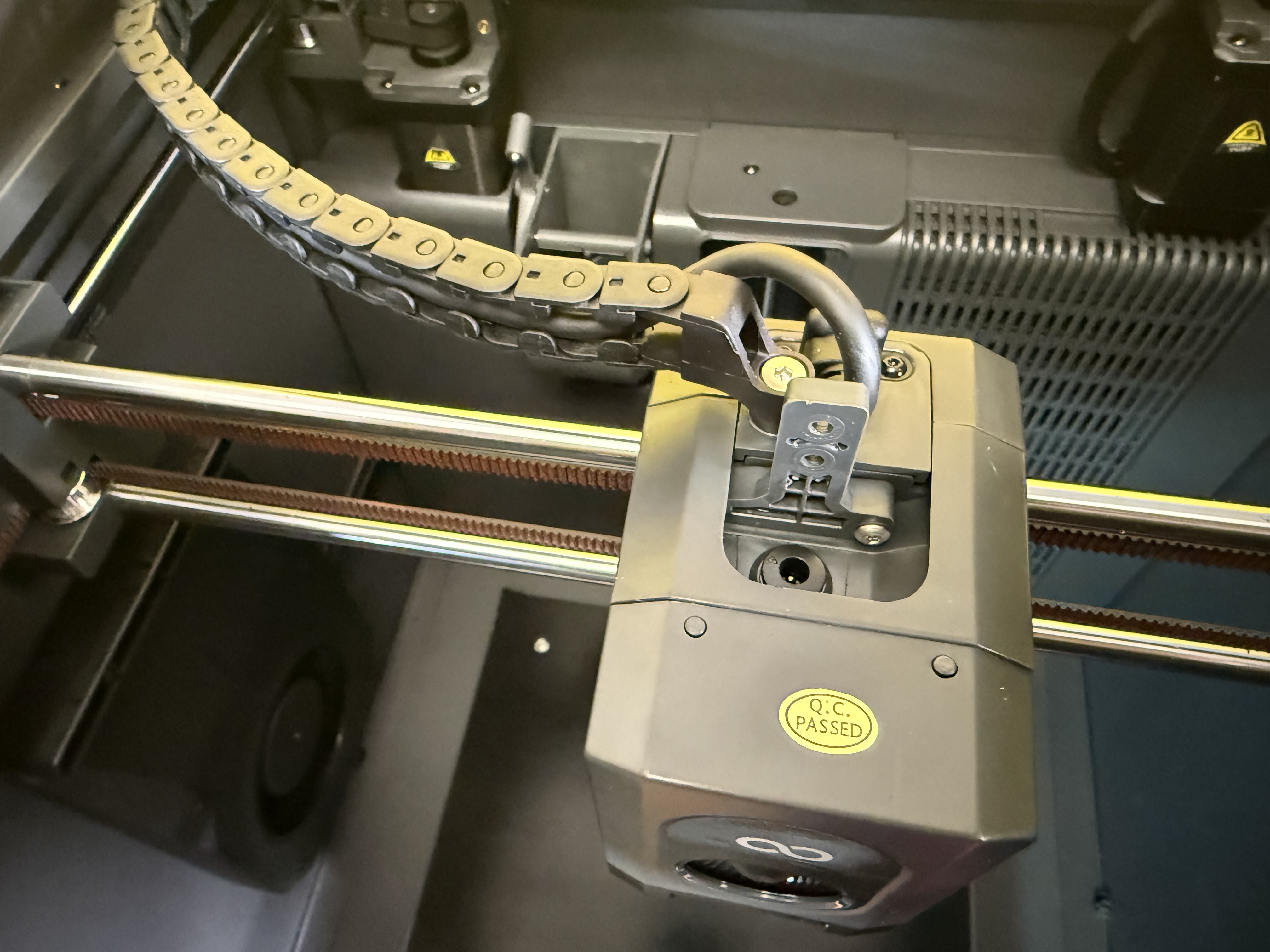 Mit einer Arbeitsgeschwindigkeit von bis zu 500 mm/s läuft der Centauri Carbon auf dem gleichen Niveau wie andere aktuelle Drucker mit Core-XY-Aufbau. Etwas merkwürdig fanden wir, dass die KI-Erkennung der Kamera bei Fehlern zunächst nicht eingeschritten hat. Tief in den Einstellungen fanden wir den Grund dafür: Die Spaghetti-Erkennung ist standardmäßig abgeschaltet.
