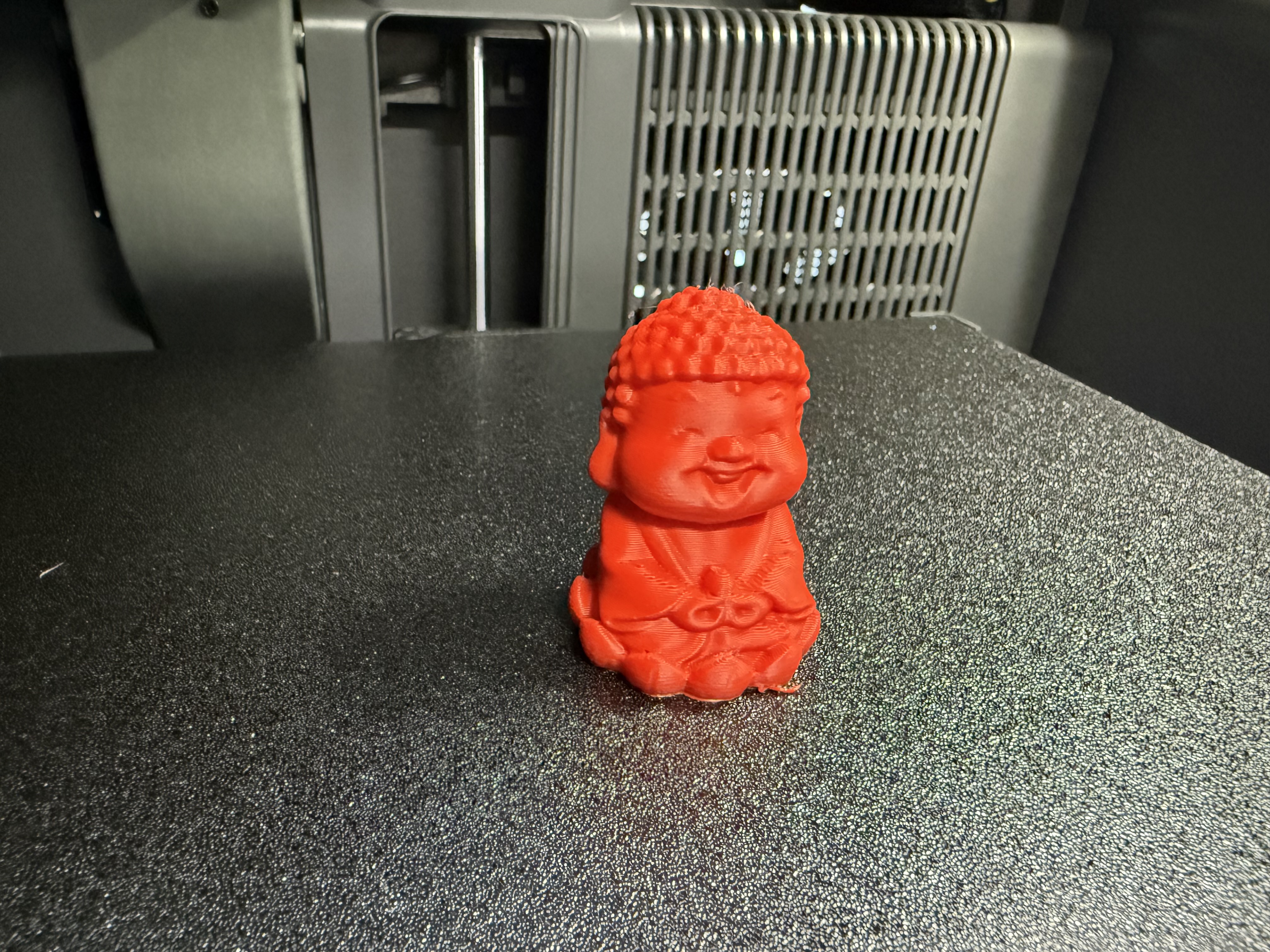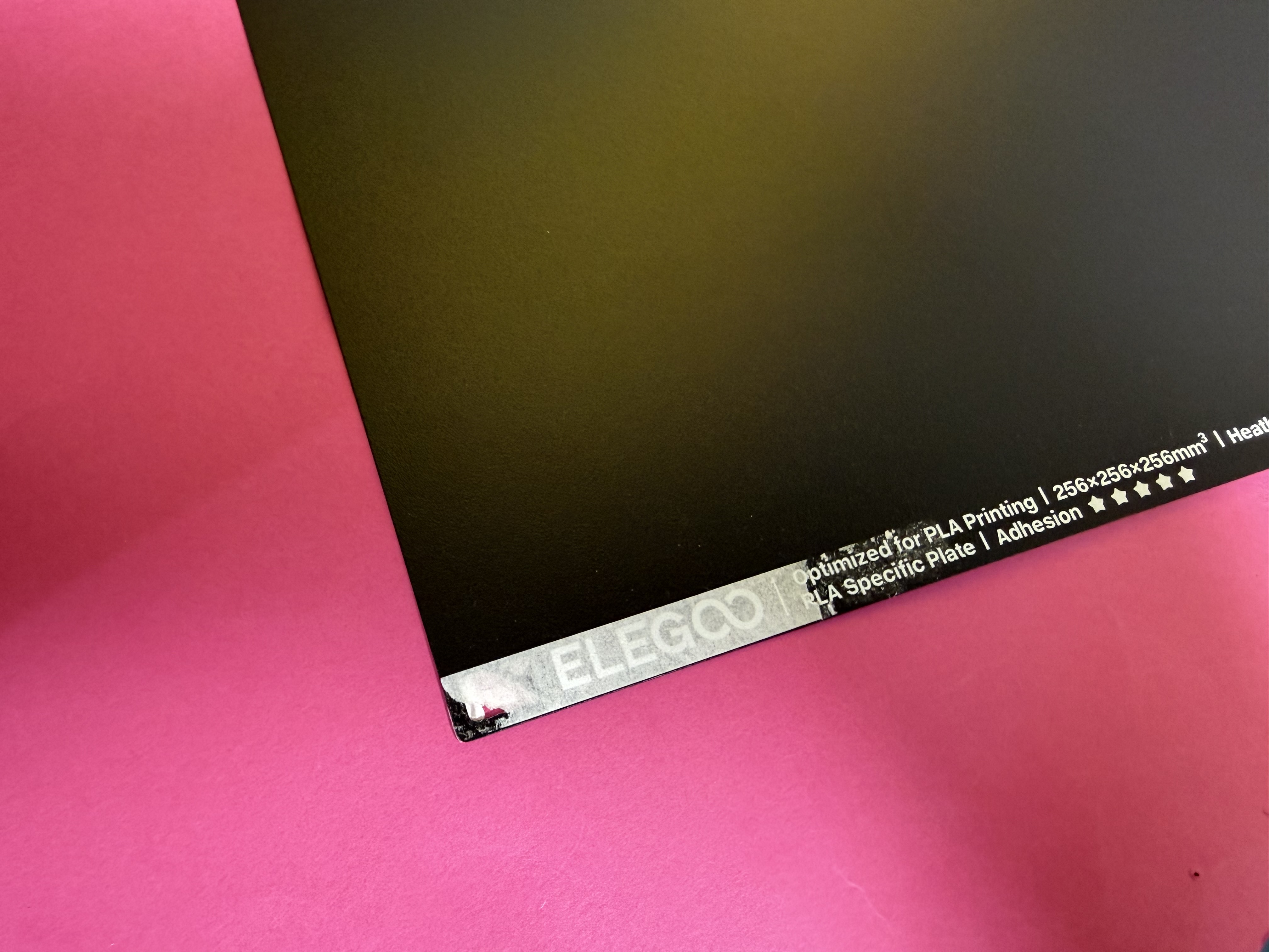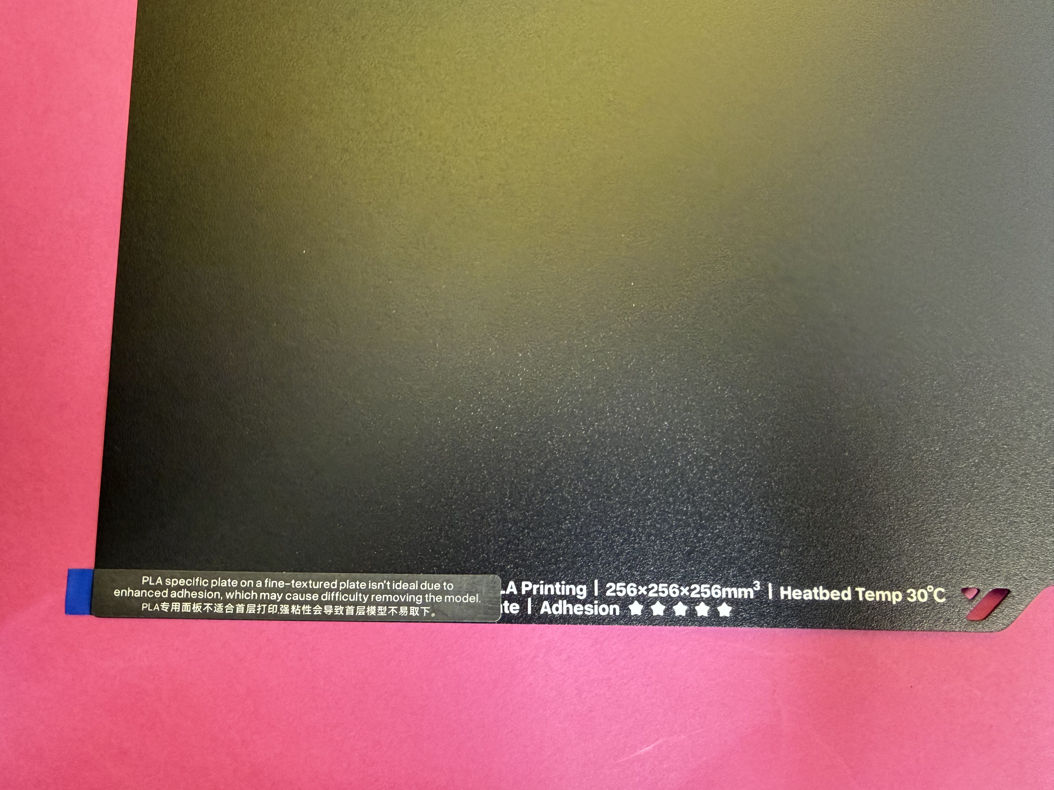 Das Druckbett ist eine Federstahlplatte mit PEI-Beschichtung, auf der einen Seite ist die Beschichtung strukturiert, auf der anderen Seite glatt. Das ist der Stand der Technik.