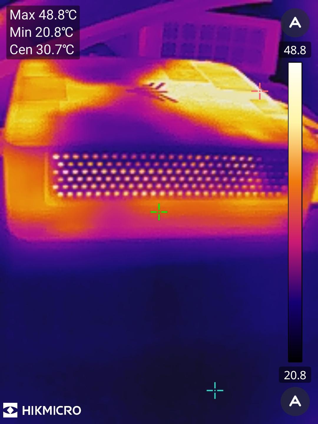 Im Idle ist der Lüfter des AM21 quasi unhörbar. Im Alltag wird er vereinzelt anspringen mit einer Lautstärke um die 28 bis 30 dB(A). Lasten wir das System allerdings mit Aida64 voll aus, messen wir mit dem Smartphone im Schnitt 36 dB(A) direkt am Gehäuse und 21 dB(A) in einem Meter Entfernung. Damit ist das System von der Lautstärke wie erwartet und hält die Temperaturen von CPU und iGPU mit maximal 83 und 80 Grad gut in Schach. Der Lüfter gibt auch hier einen eher pfeifenden Klang von sich, was empfindliche Nutzer stören könnte. Zudem rattert der Lüfter ein wenig bei hohen Drehzahlen.