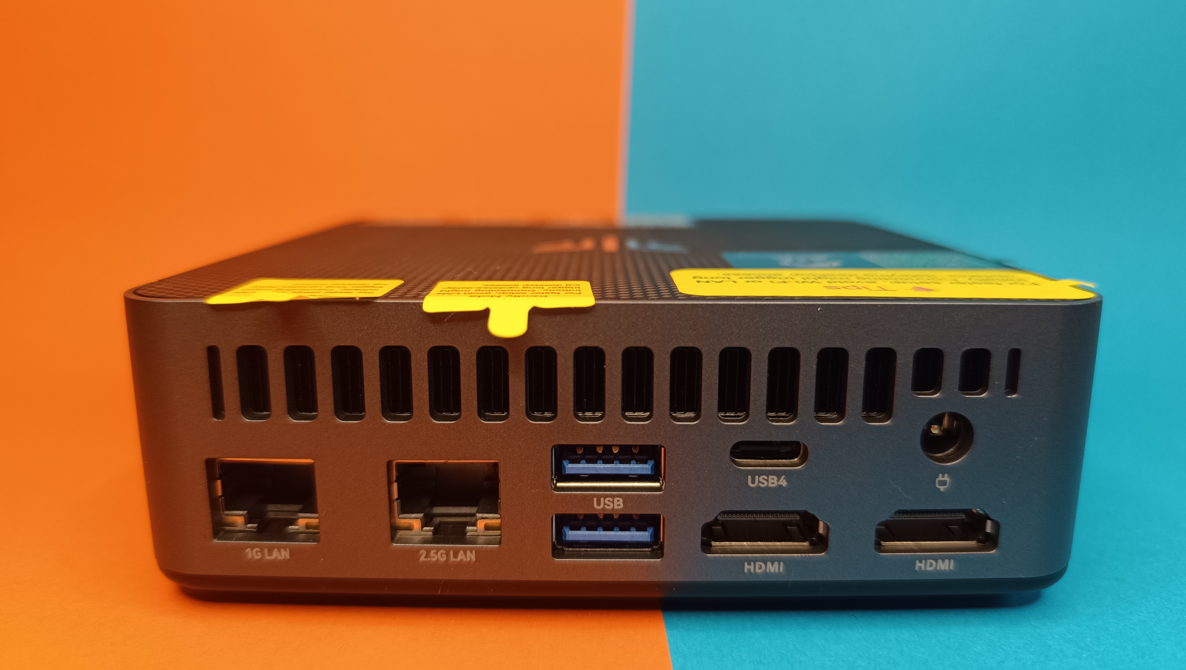 Auch beim LAN ist genaues Hinsehen erforderlich, hier gibt es nämlich einen Port mit Gigabit-LAN und einen mit 2,5-Gigabit-LAN. Immerhin ist alles präzise beschriftet, was eine Verwechslung der Anschlüsse ausschließt. Die Stromversorgung erfolgt neben USB4 im Typ C auch per klassischer DC-Buchse.
