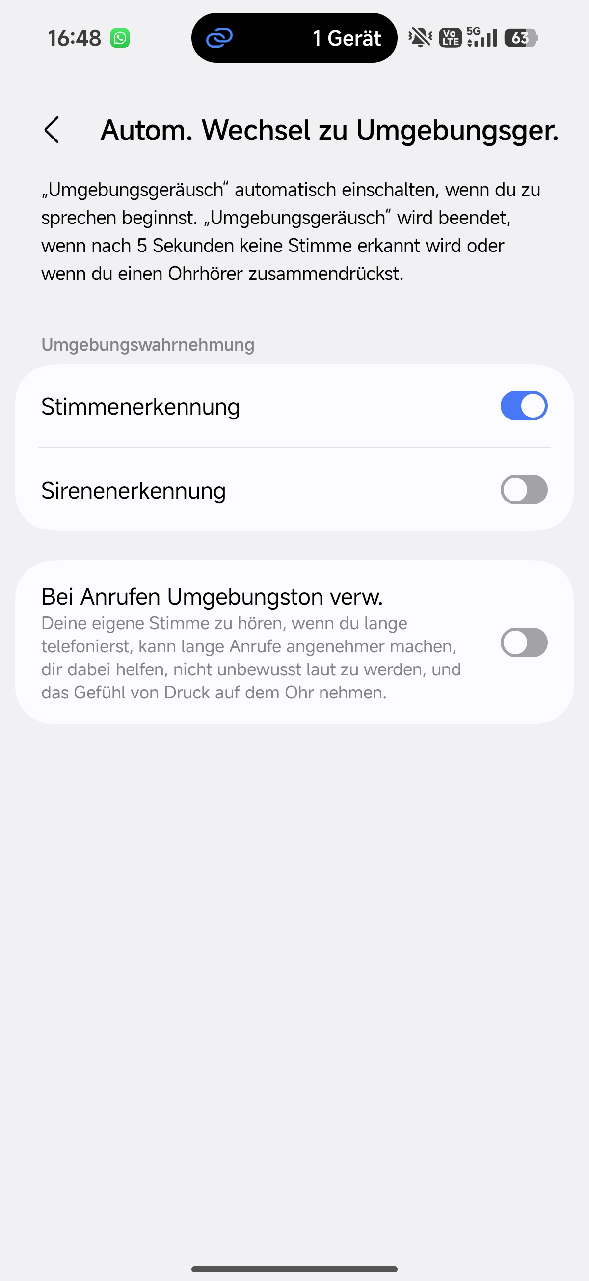 Immerhin bekommen andere Android-Nutzer über die Begleit-App ein paar Trost-Features: darunter eine Trageerkennung und den automatischen Wechsel in den Transparenzmodus, sobald man selbst zu sprechen beginnt – unser persönliches Highlight!