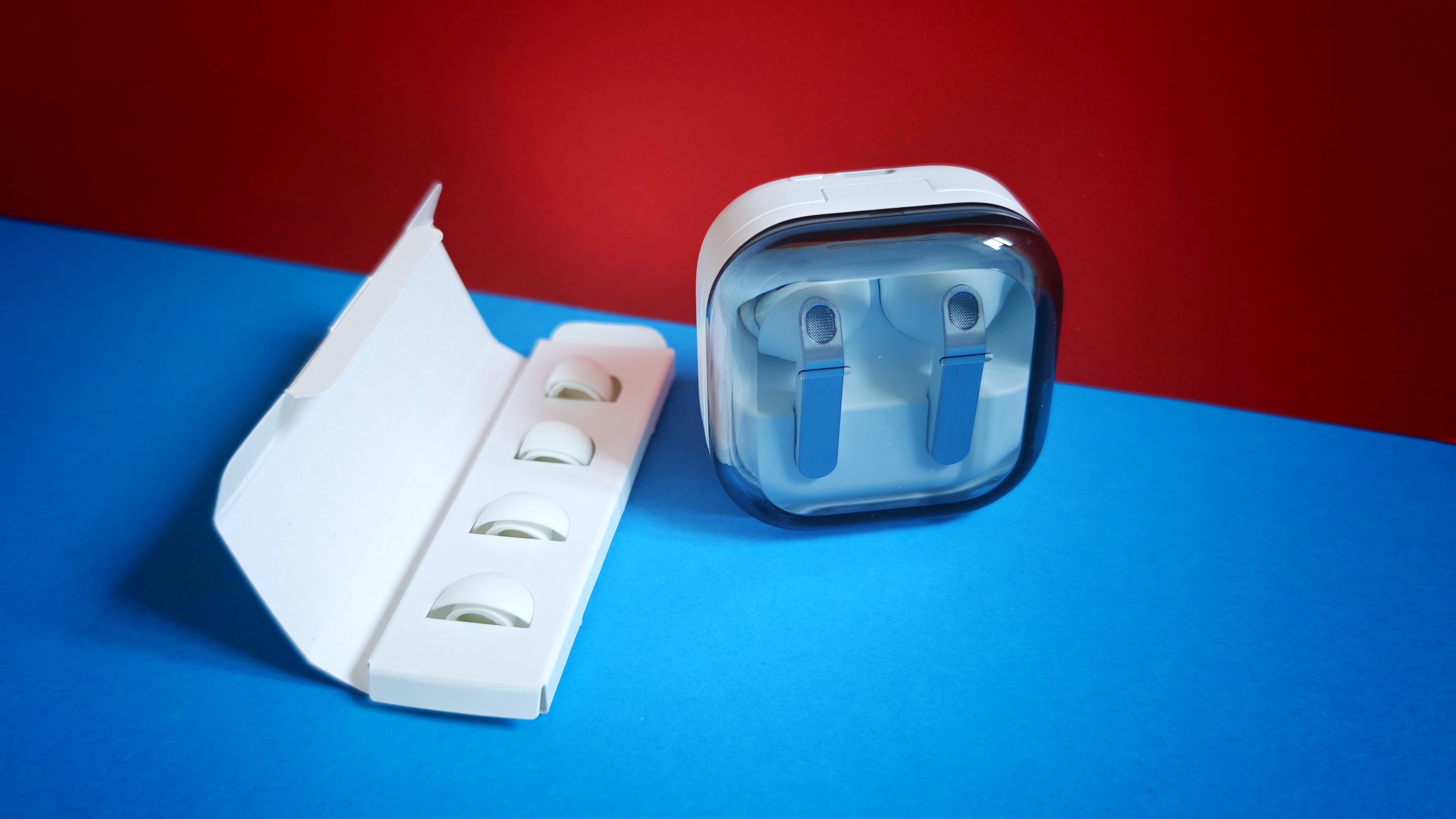 Bei der Bedienung direkt über die Earbuds braucht es etwas Eingewöhnung. Gesteuert wird durch Zusammendrücken und Streichen des Stifts, wobei die Earbuds gerne mal verrutschen. Mit etwas Übung geht die Steuerung dann aber zuverlässig von der Hand – tatsächlich besser als bei den Galaxy Buds 3 Pro, da eine kleine Einbuchtung an den Stiften nun den Kneifpunkt besser ertasten lässt. Die Gesten-Steuerung lässt sich über die App anpassen, allerdings nur rudimentär.