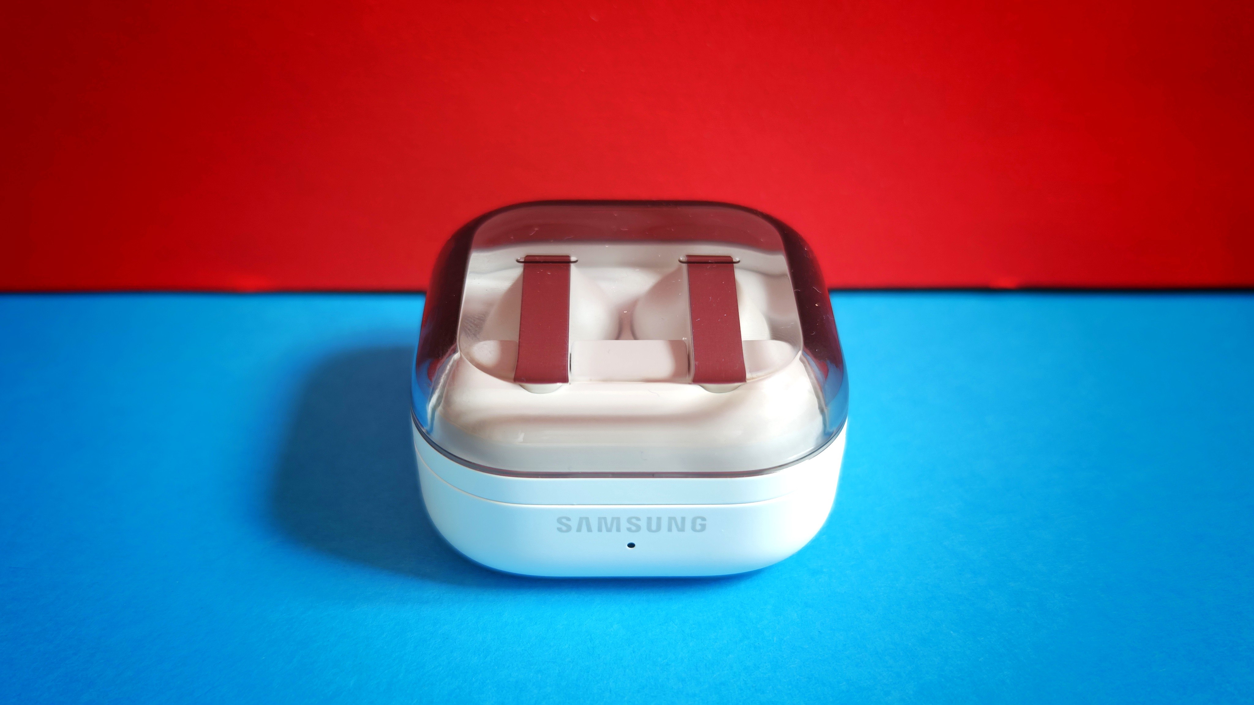 Beim 44,3 Gramm leichten Ladecase hat sich ebenfalls etwas getan: Lagen die Earbuds beim Vorgänger noch hochkant im Case, was das Herausnehmen fummelig machte, setzt Samsung nun erfreulicherweise wieder auf das horizontale Design. Deutlich komfortabler – die richtige Entscheidung!