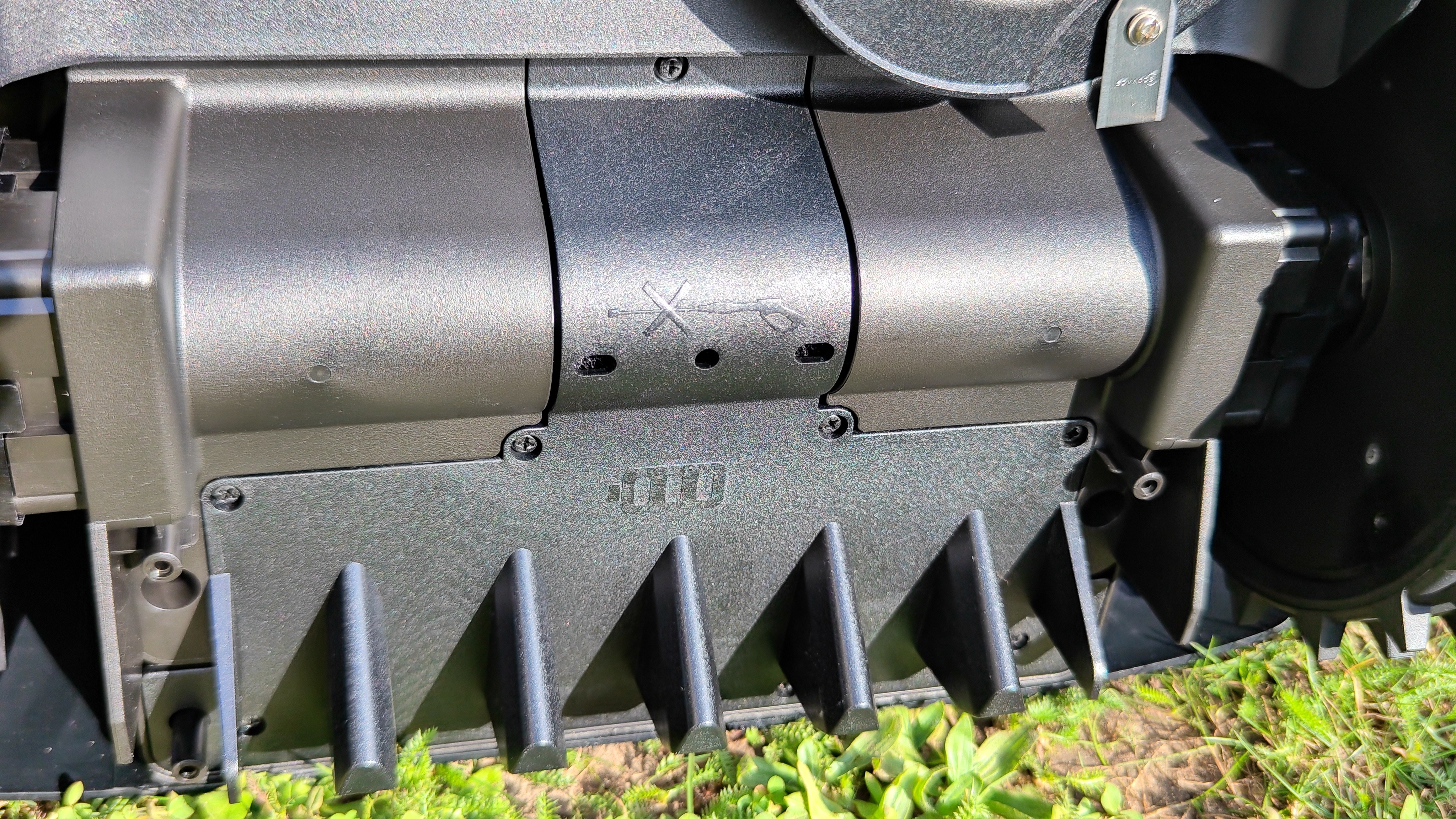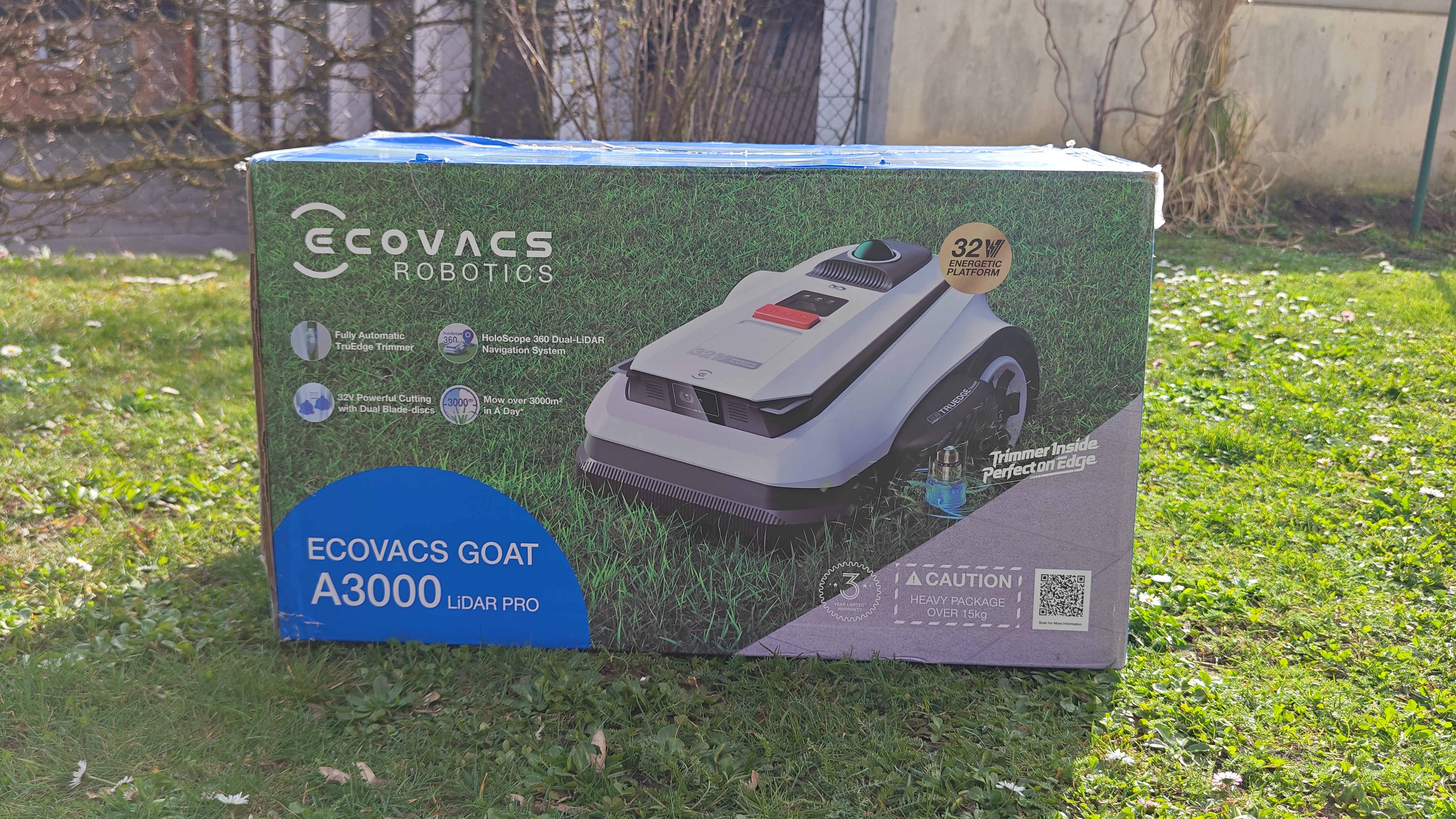 Der Ecovacs Goat A3000 LiDAR bietet eine Schnittbreite von 33 cm und integriert einen Rasentrimmer. Letzterer muss nach dem Auspacken mit einem langen Kreuzschlitz-Schraubenzieher montiert werden.
