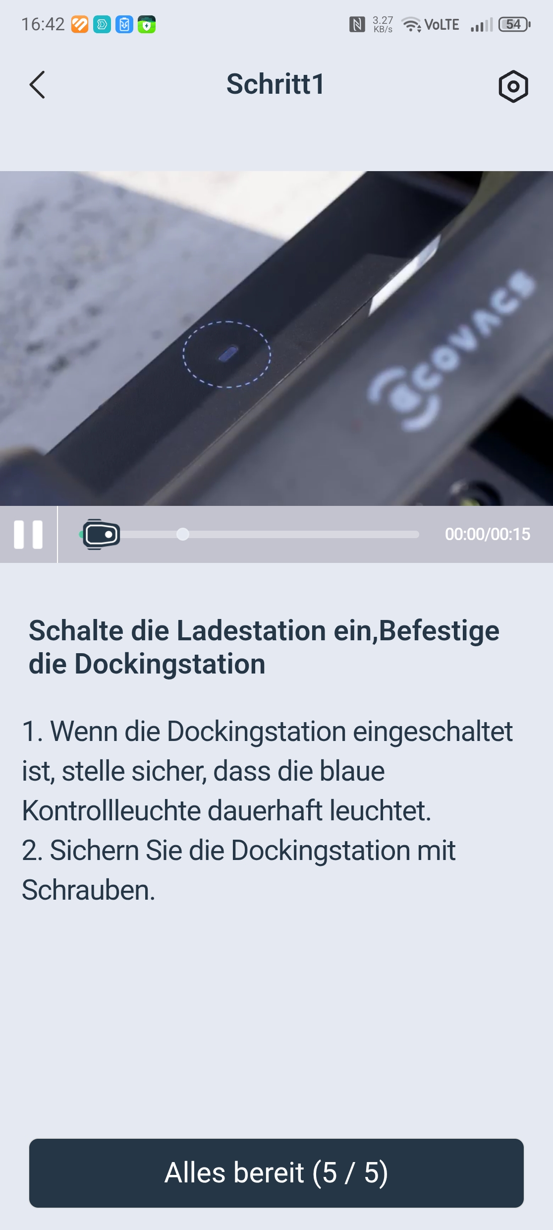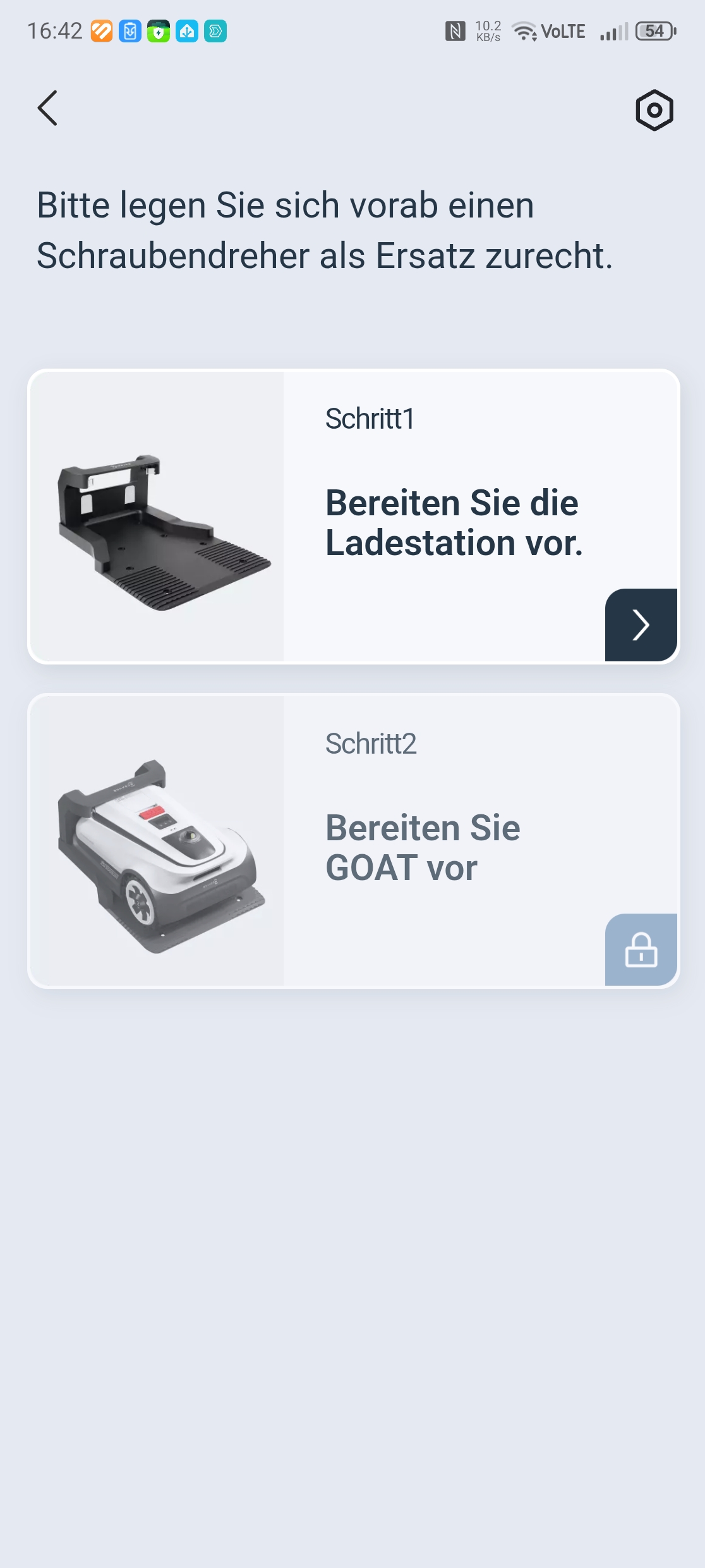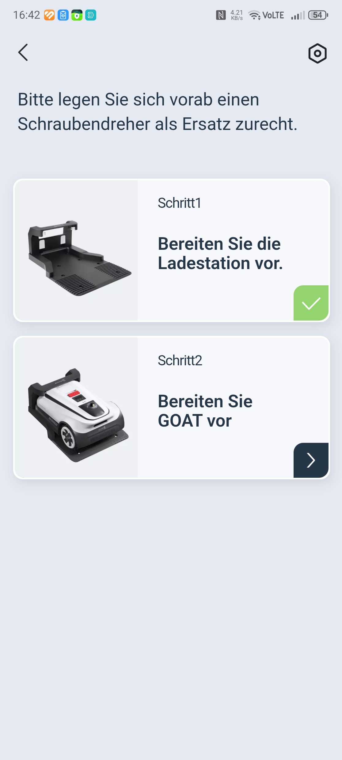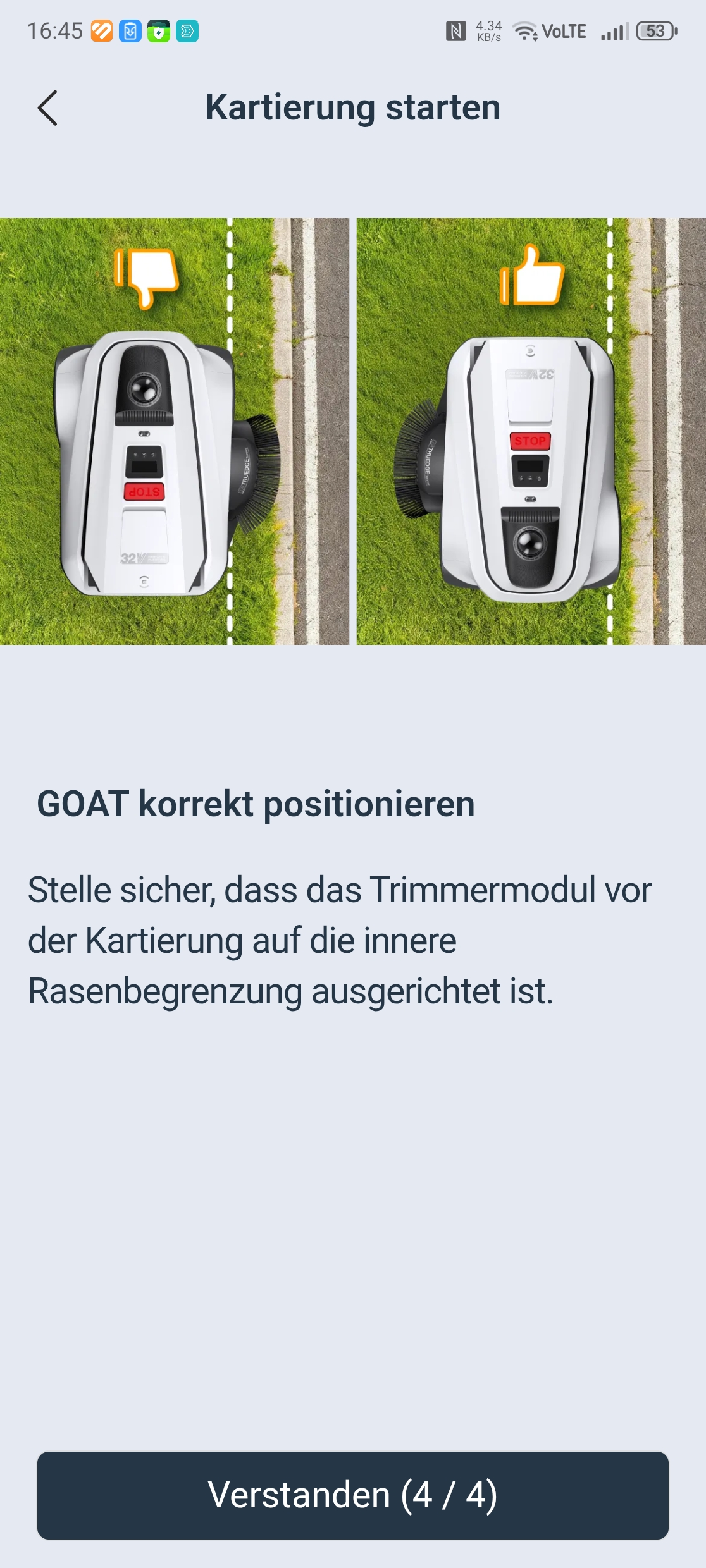 Die Einrichtung über die Ecovacs-App ist vorbildlich gelöst. Eine Schritt-für-Schritt-Anleitung mit Bildern führt durch Bluetooth-Kopplung, QR-Code-Scan und WLAN-Verbindung über 2,4 GHz – auch in gemischten Netzen gab es keine Probleme. Nach einem obligatorischen Firmware-Update war der Roboter in etwa 30 Minuten startklar. Einzig die Montage des Trimmermoduls erfordert etwas Geduld und einen Kreuzschlitzschraubendreher mit langer Klinge von mindestens 10 cm, da eine Schraube tief im Gehäuse sitzt.