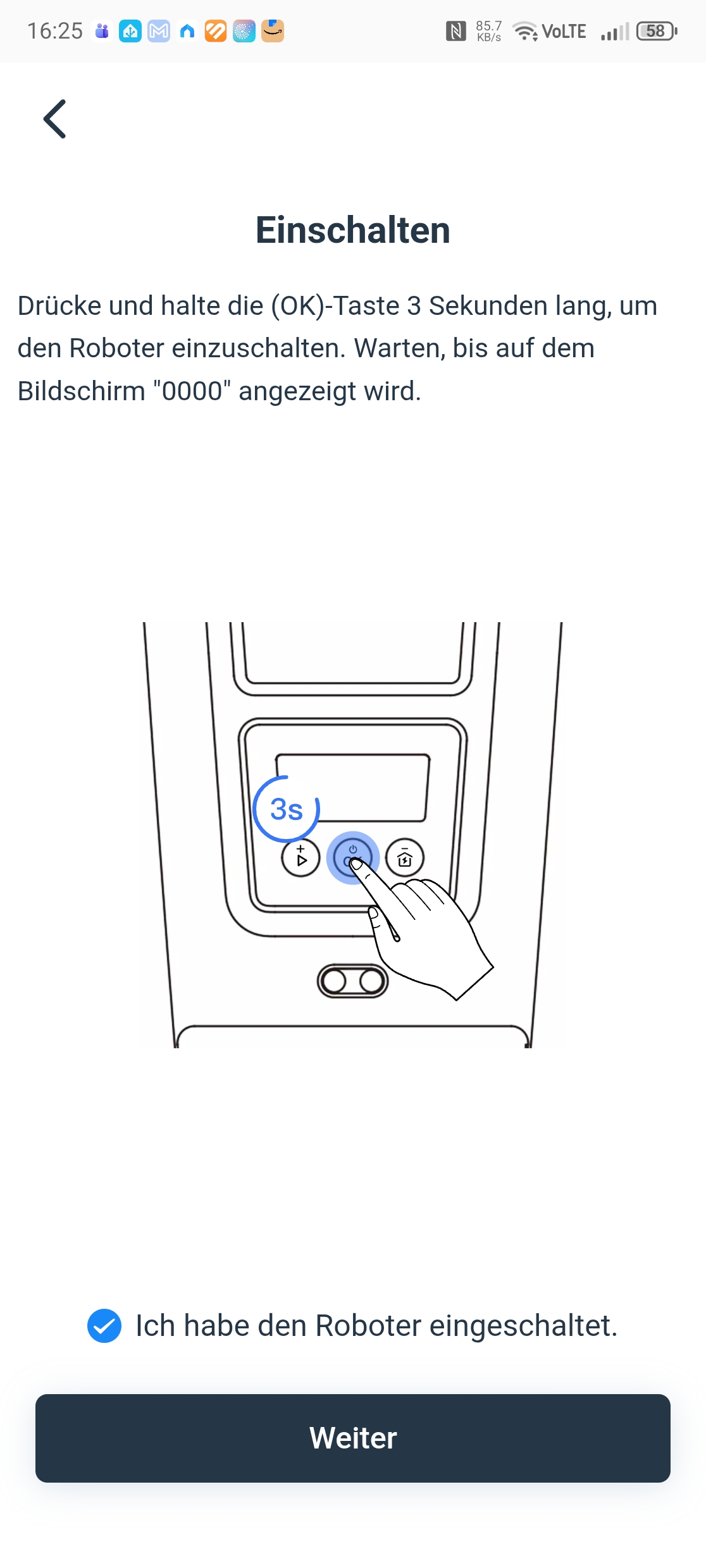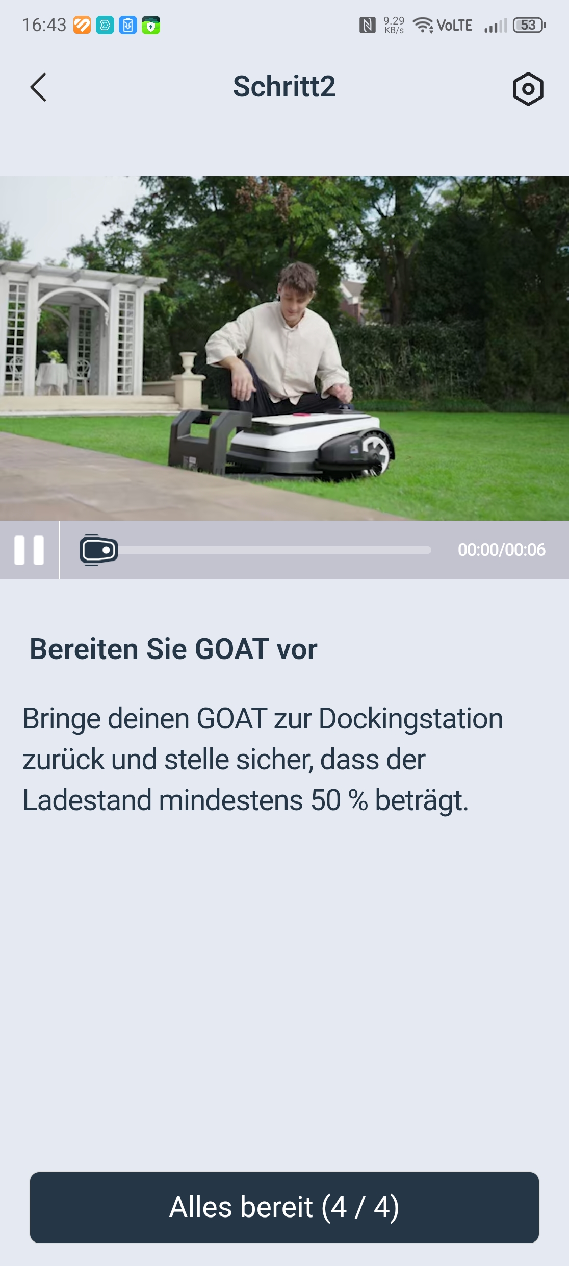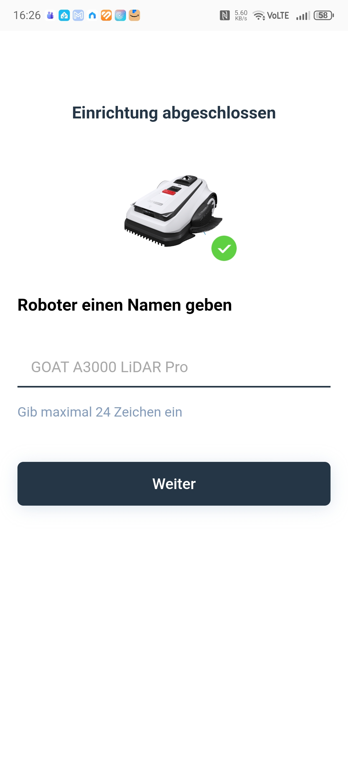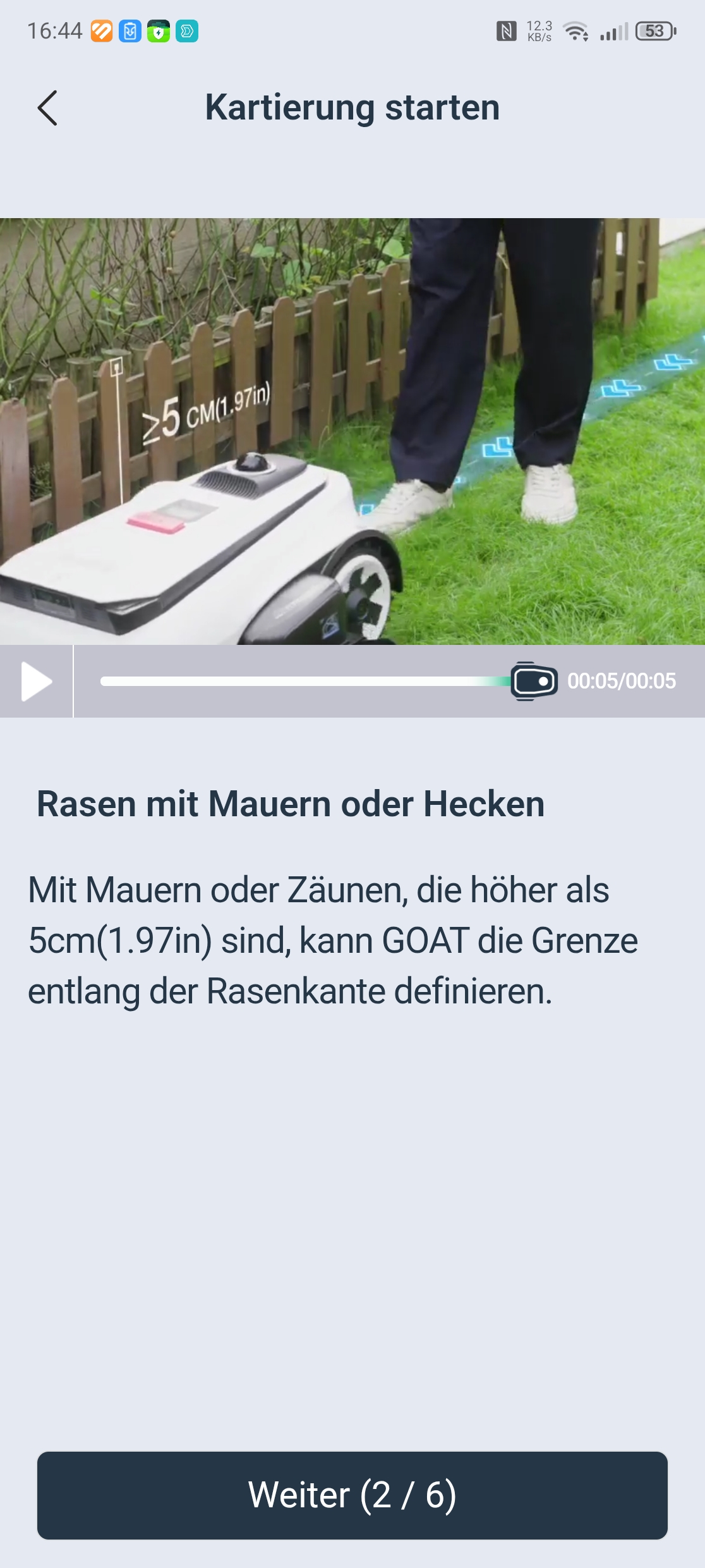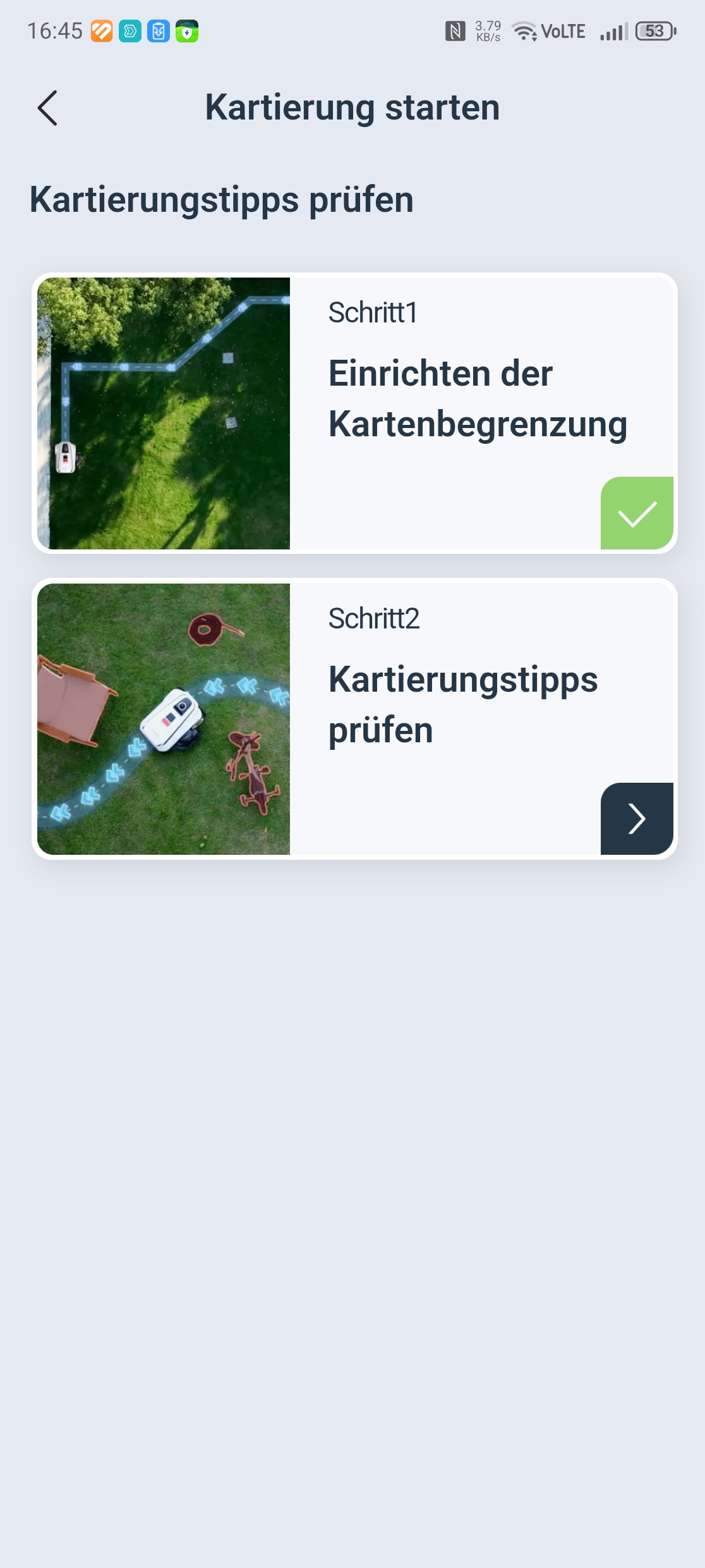 Die Einrichtung über die Ecovacs-App ist vorbildlich gelöst. Eine Schritt-für-Schritt-Anleitung mit Bildern führt durch Bluetooth-Kopplung, QR-Code-Scan und WLAN-Verbindung über 2,4 GHz – auch in gemischten Netzen gab es keine Probleme. Nach einem obligatorischen Firmware-Update war der Roboter in etwa 30 Minuten startklar. Einzig die Montage des Trimmermoduls erfordert etwas Geduld und einen Kreuzschlitzschraubendreher mit langer Klinge von mindestens 10 cm, da eine Schraube tief im Gehäuse sitzt.