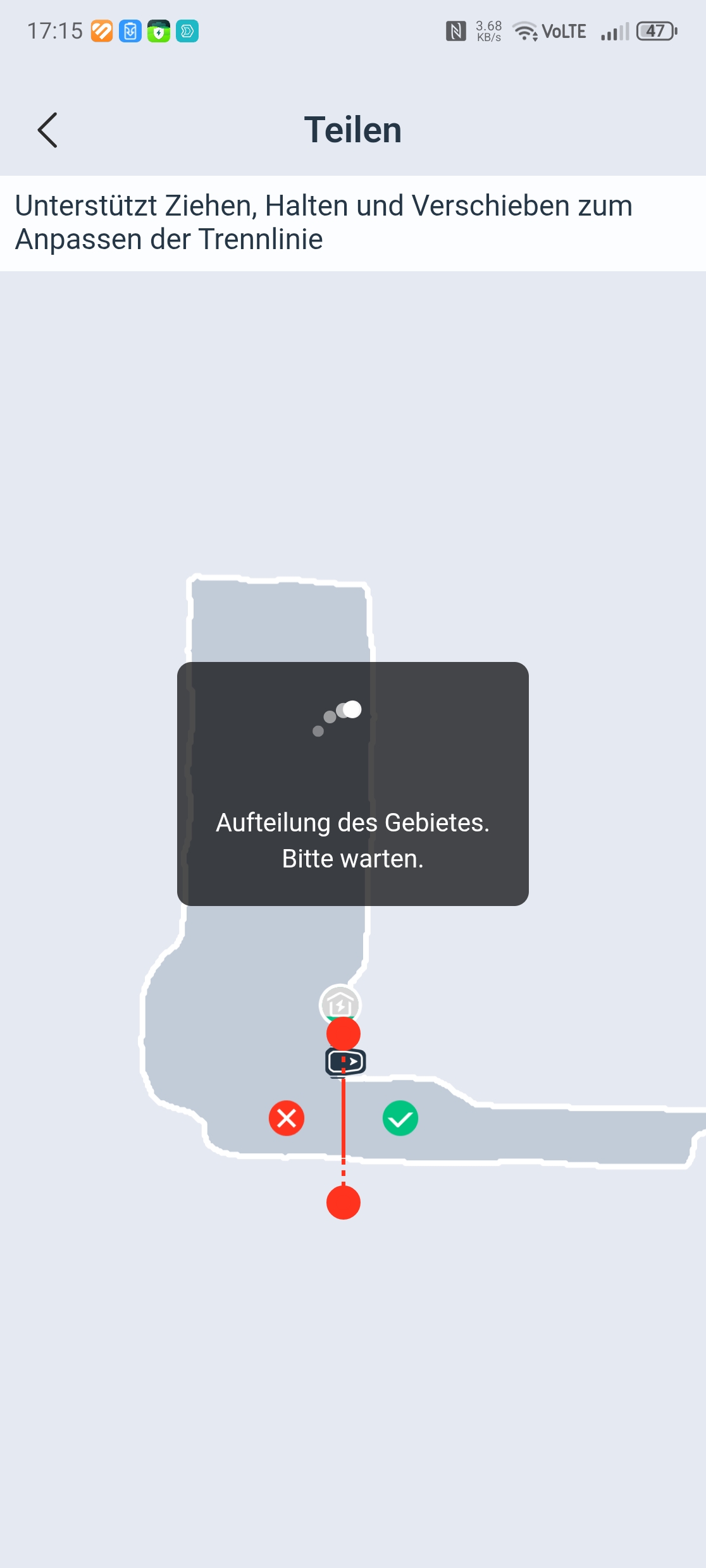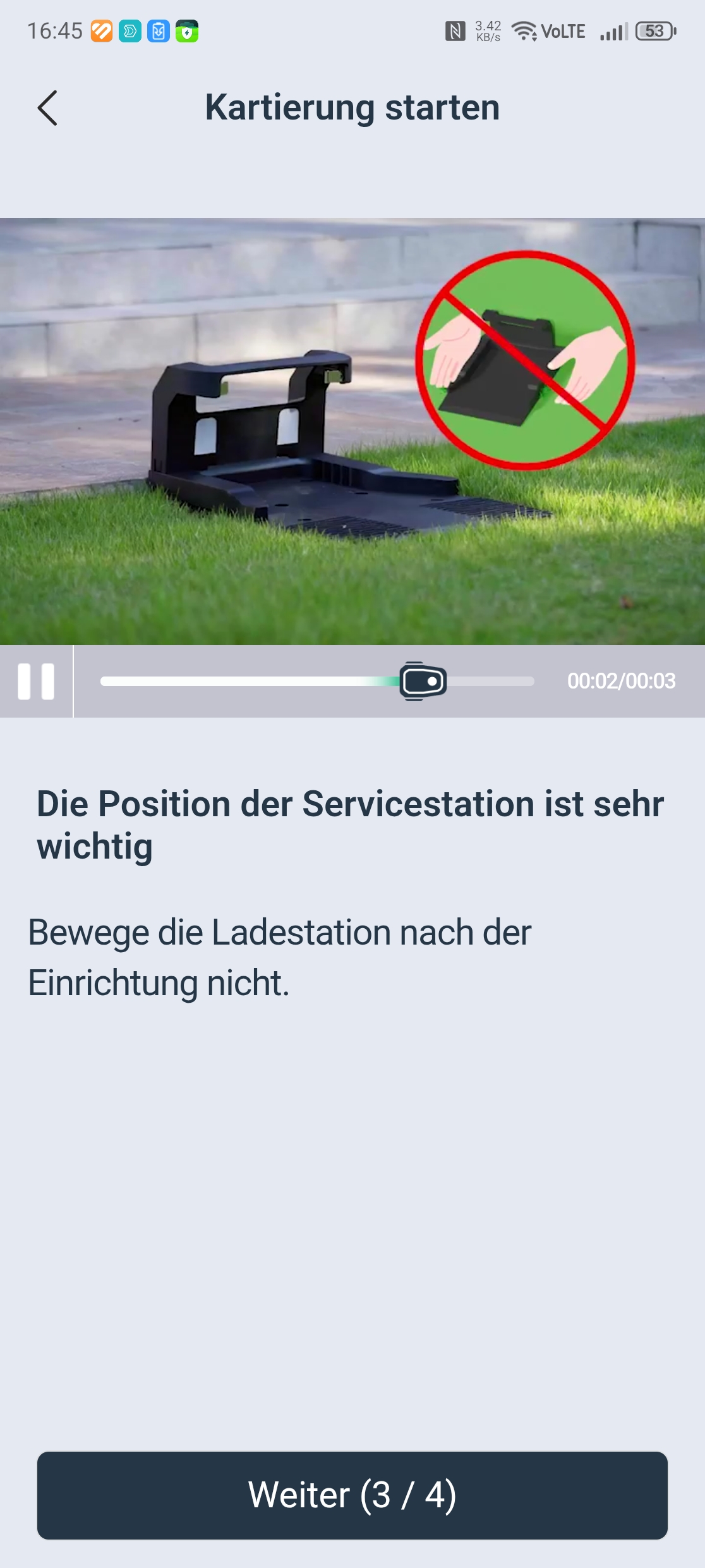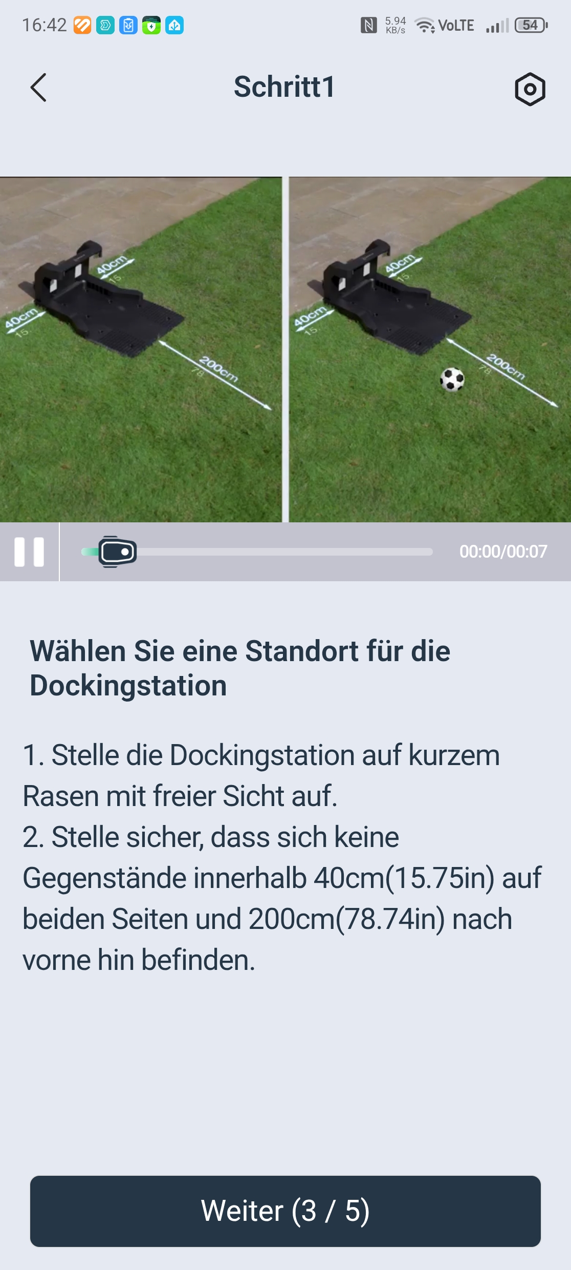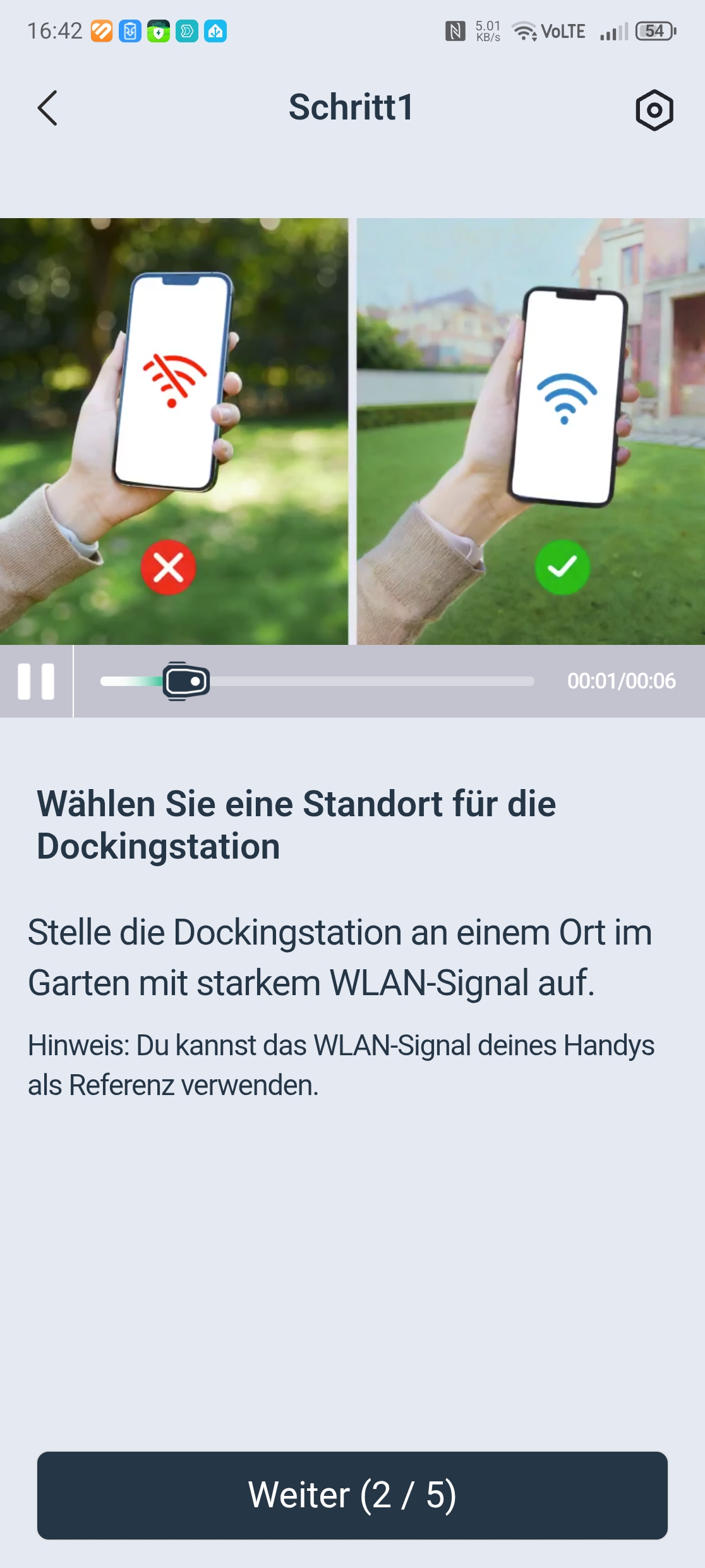 Die Einrichtung über die Ecovacs-App ist vorbildlich gelöst. Eine Schritt-für-Schritt-Anleitung mit Bildern führt durch Bluetooth-Kopplung, QR-Code-Scan und WLAN-Verbindung über 2,4 GHz – auch in gemischten Netzen gab es keine Probleme. Nach einem obligatorischen Firmware-Update war der Roboter in etwa 30 Minuten startklar. Einzig die Montage des Trimmermoduls erfordert etwas Geduld und einen Kreuzschlitzschraubendreher mit langer Klinge von mindestens 10 cm, da eine Schraube tief im Gehäuse sitzt.