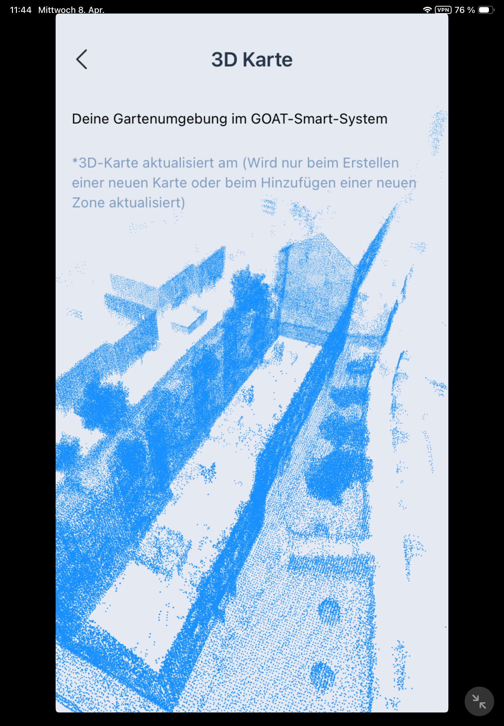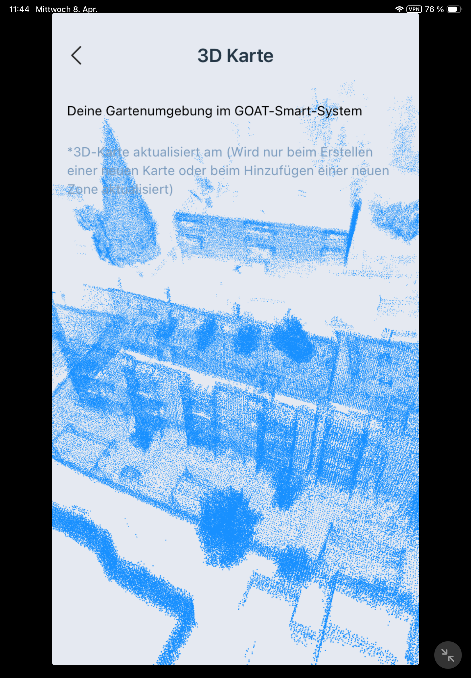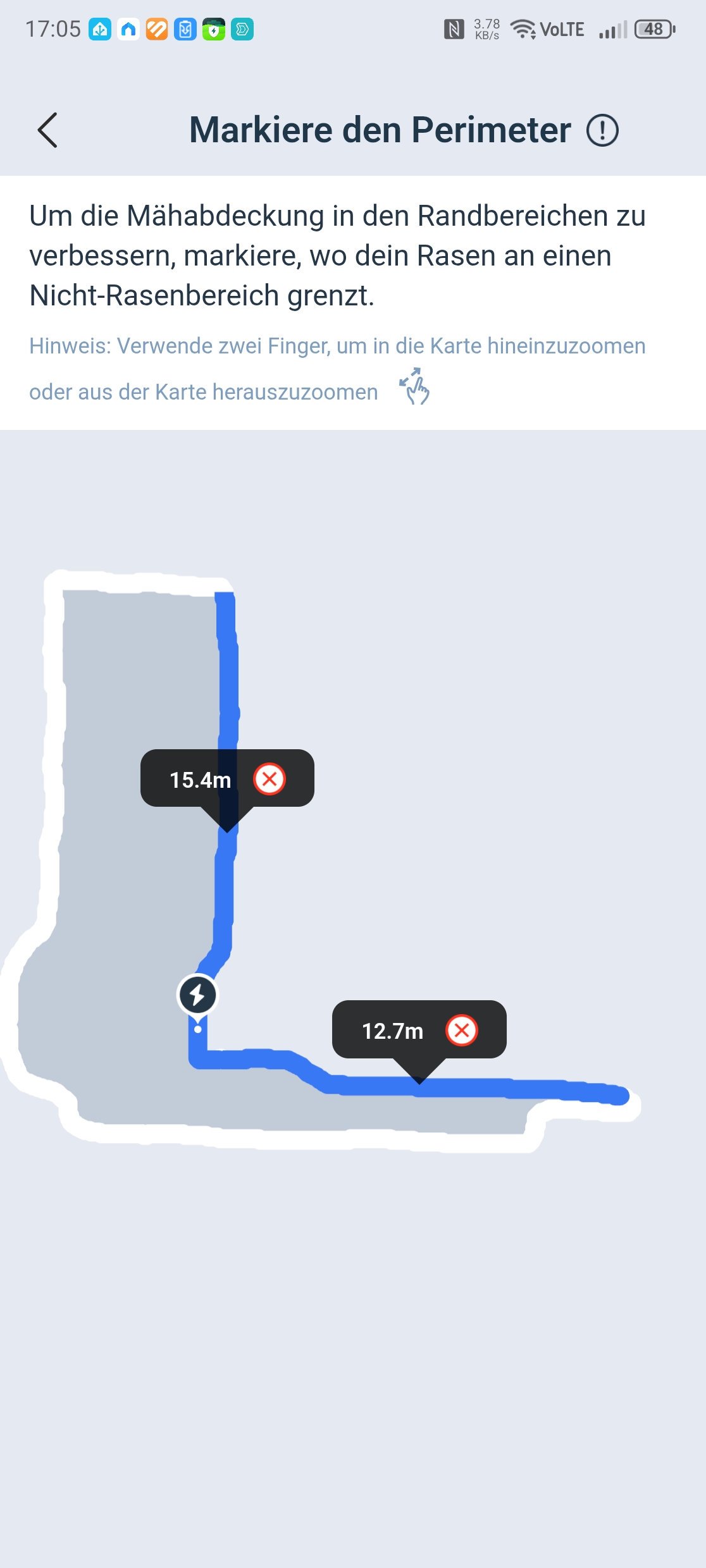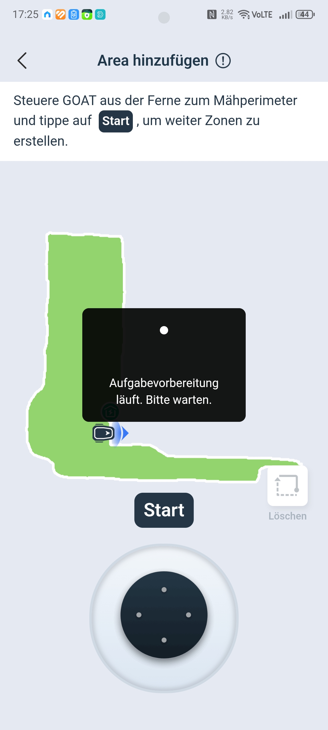 Kartierung: Die automatische Kartierung funktioniert grundsätzlich nur bei klaren Rasenkanten wie Randsteinen oder Mauern. Da der Testgarten offene Grenzen hat und nur teilweise mit Randsteinen umgeben ist, konnte die automatische Kartierung nicht sinnvoll überprüft werden. Für komplexe Gärten ist die manuelle Kartierung ohnehin die bessere Wahl: Man läuft in Bluetooth-Reichweite hinter dem Roboter her und steuert ihn per App entlang der Rasengrenzen. Das ist präziser, zuverlässiger und wird von der App gut unterstützt. Es lassen sich mehrere Zonen und Verbindungspfade anlegen.