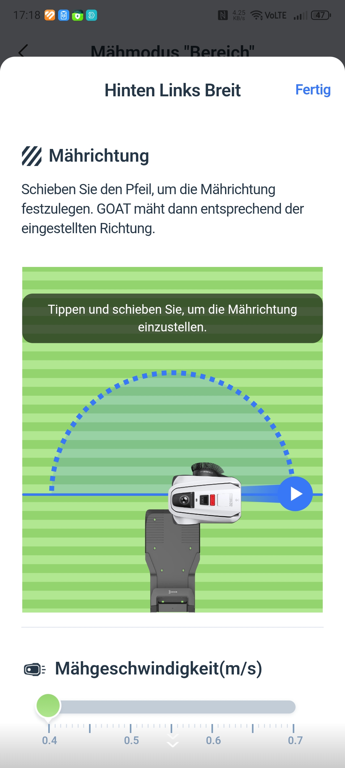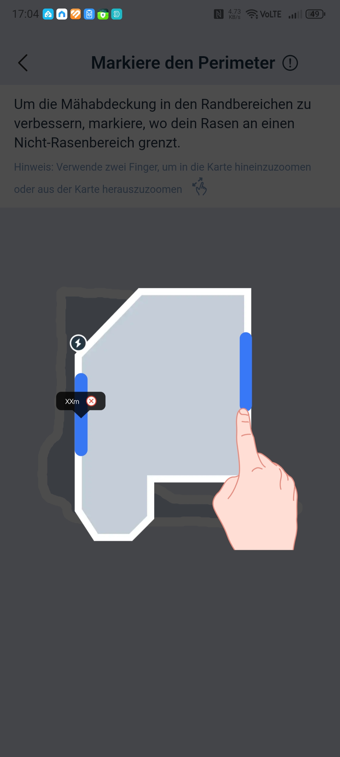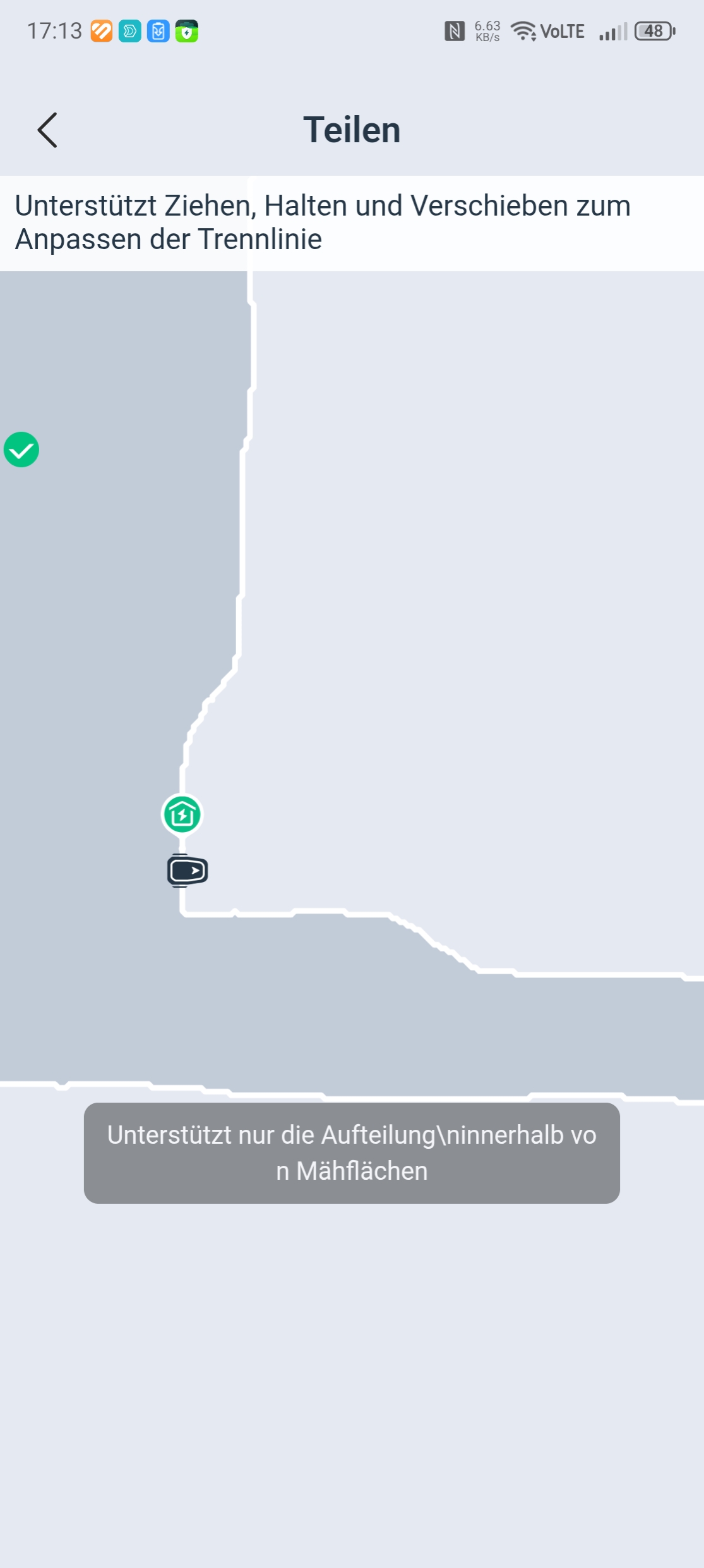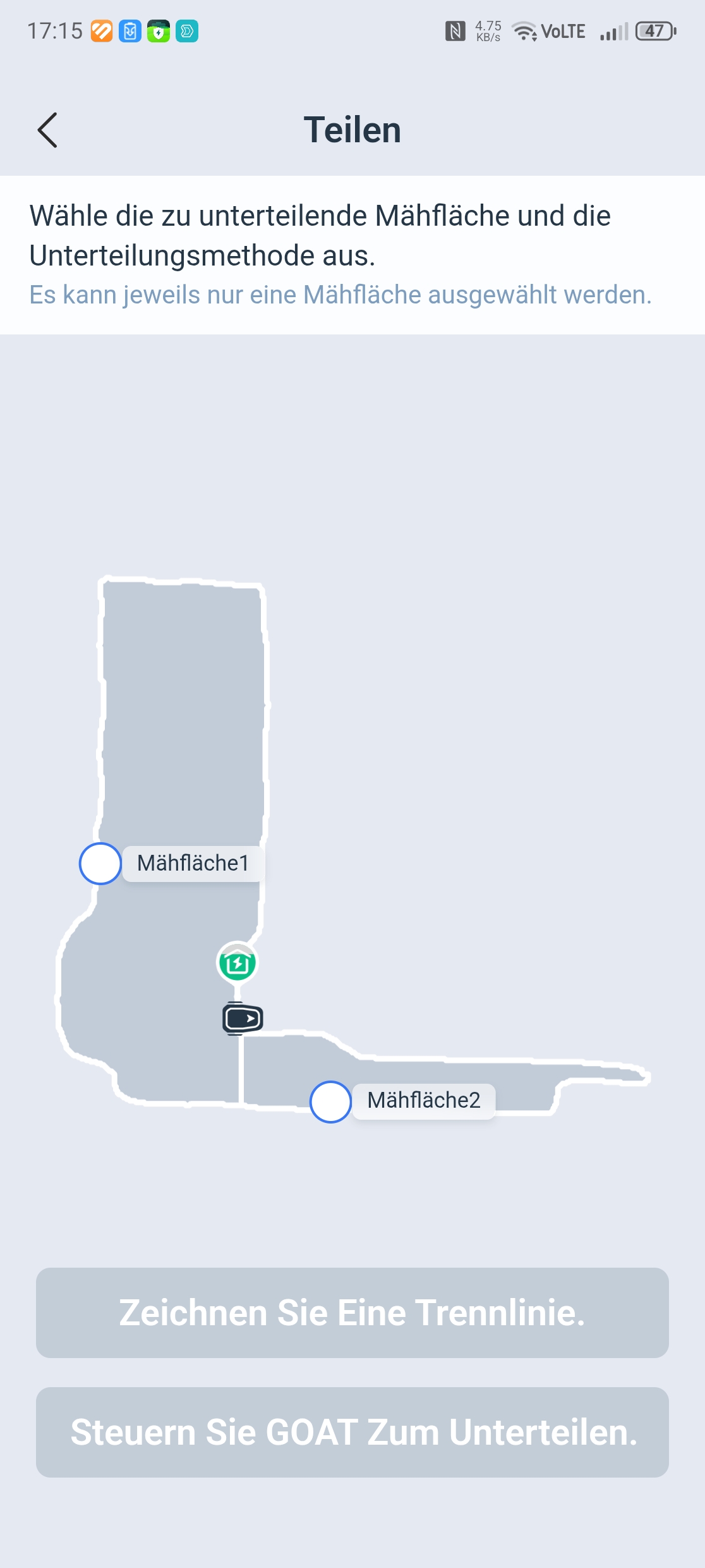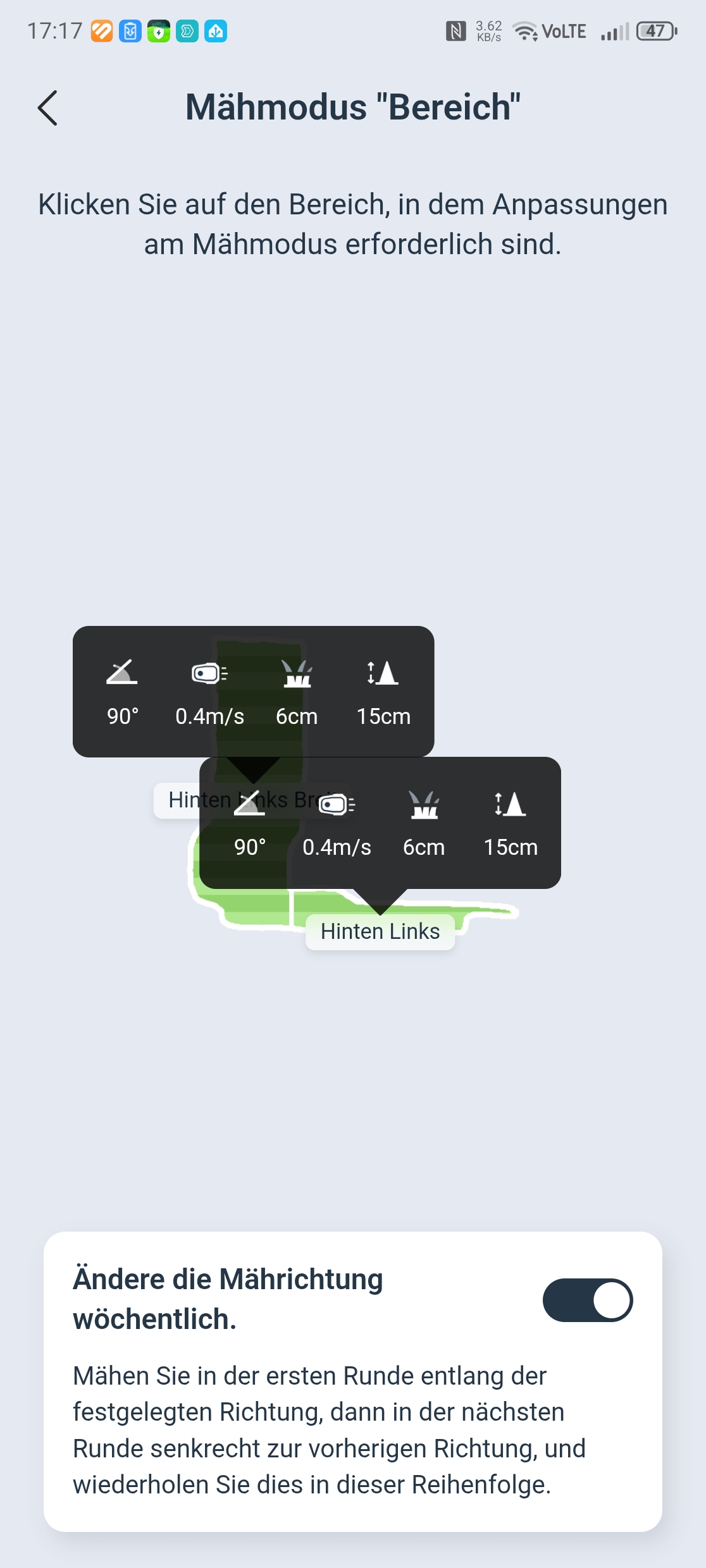 Ecovacs-App: Die Aufteilung in Zonen ist möglich und bei einem großen Garten mit unterschiedlichen Flächen auch sinnvoll, da man je Zone die optimale Mährichtung einstellen kann.