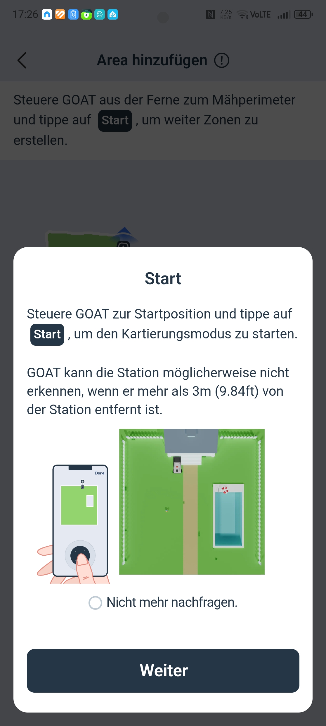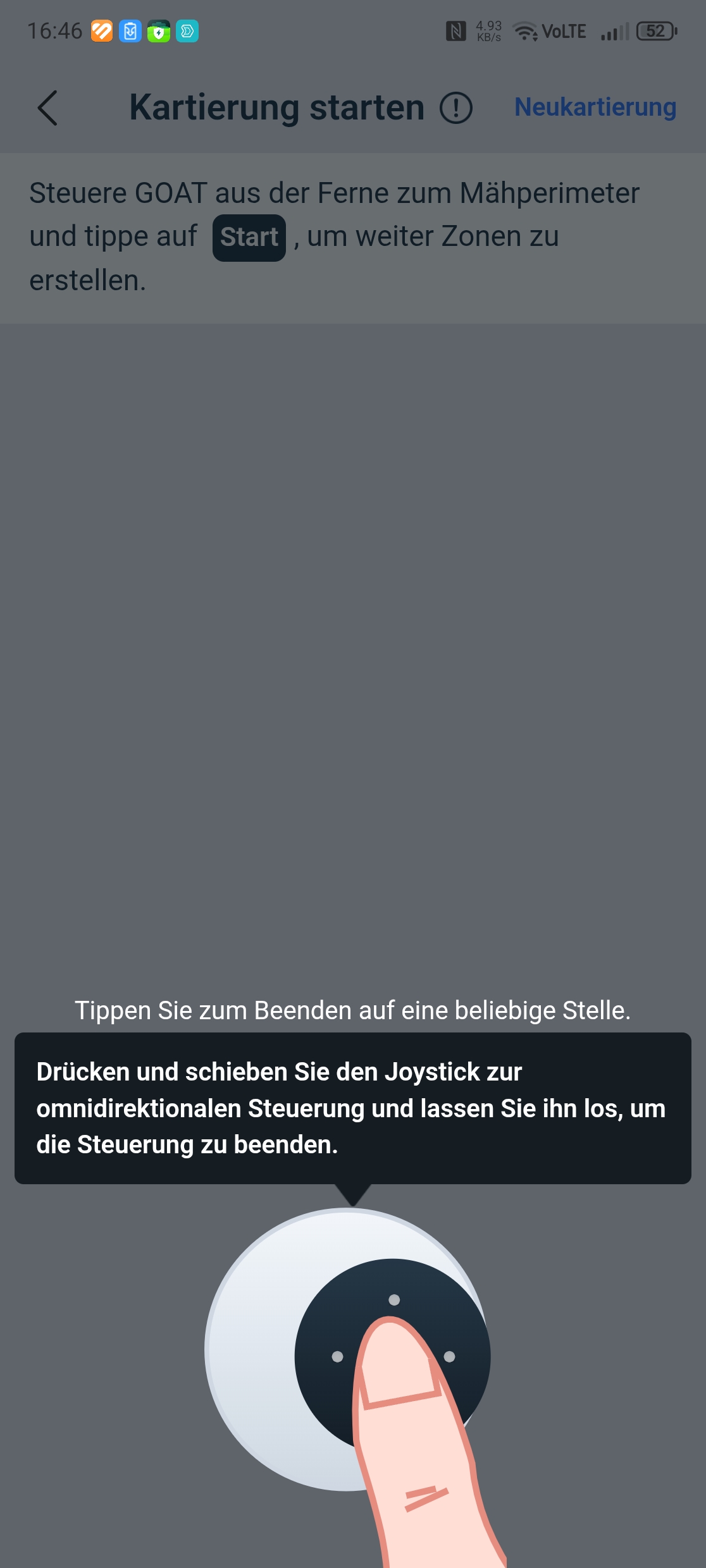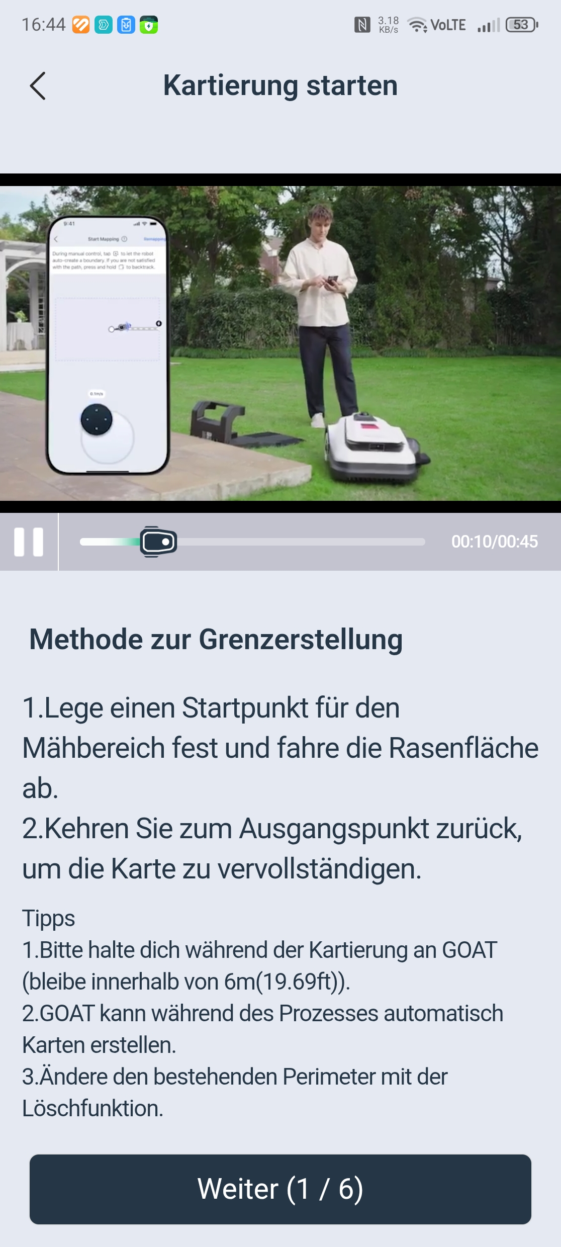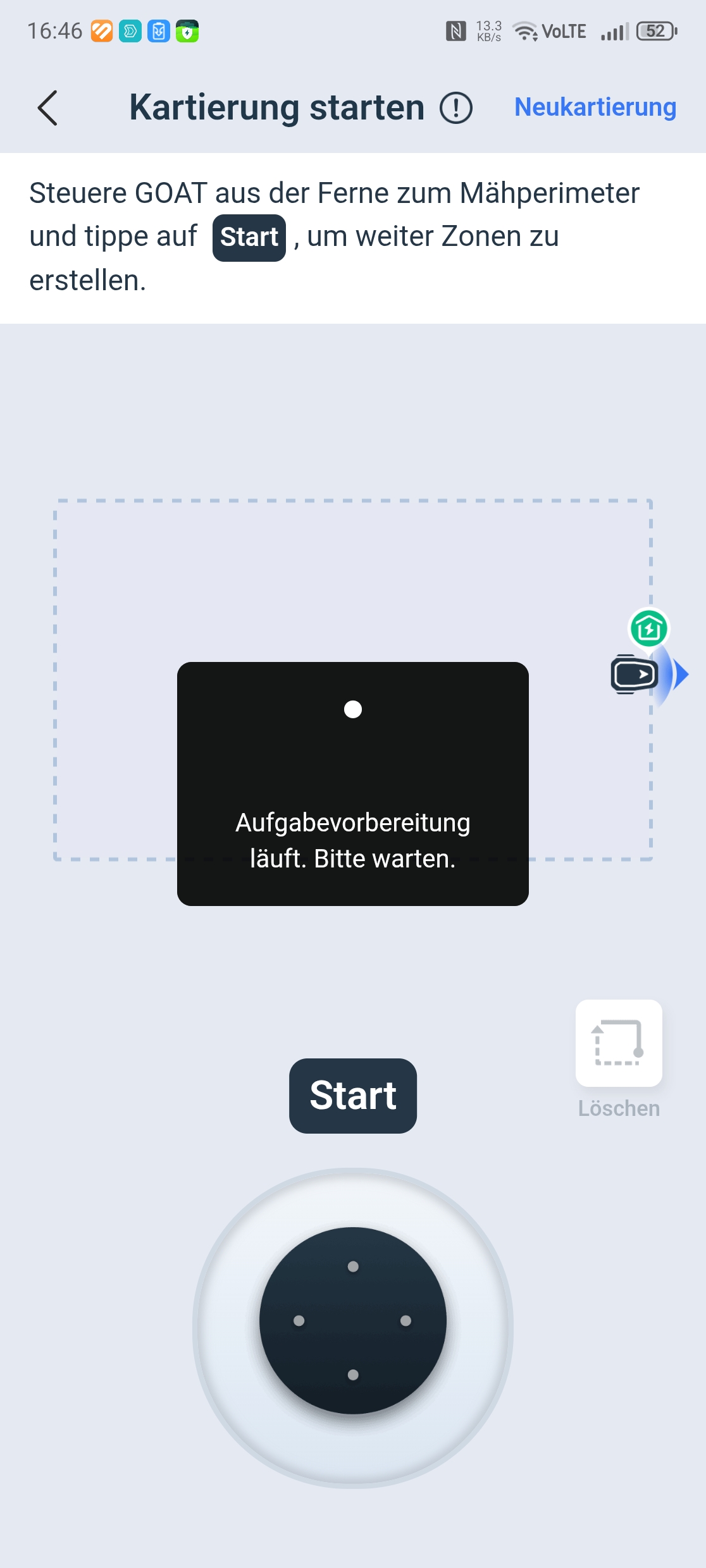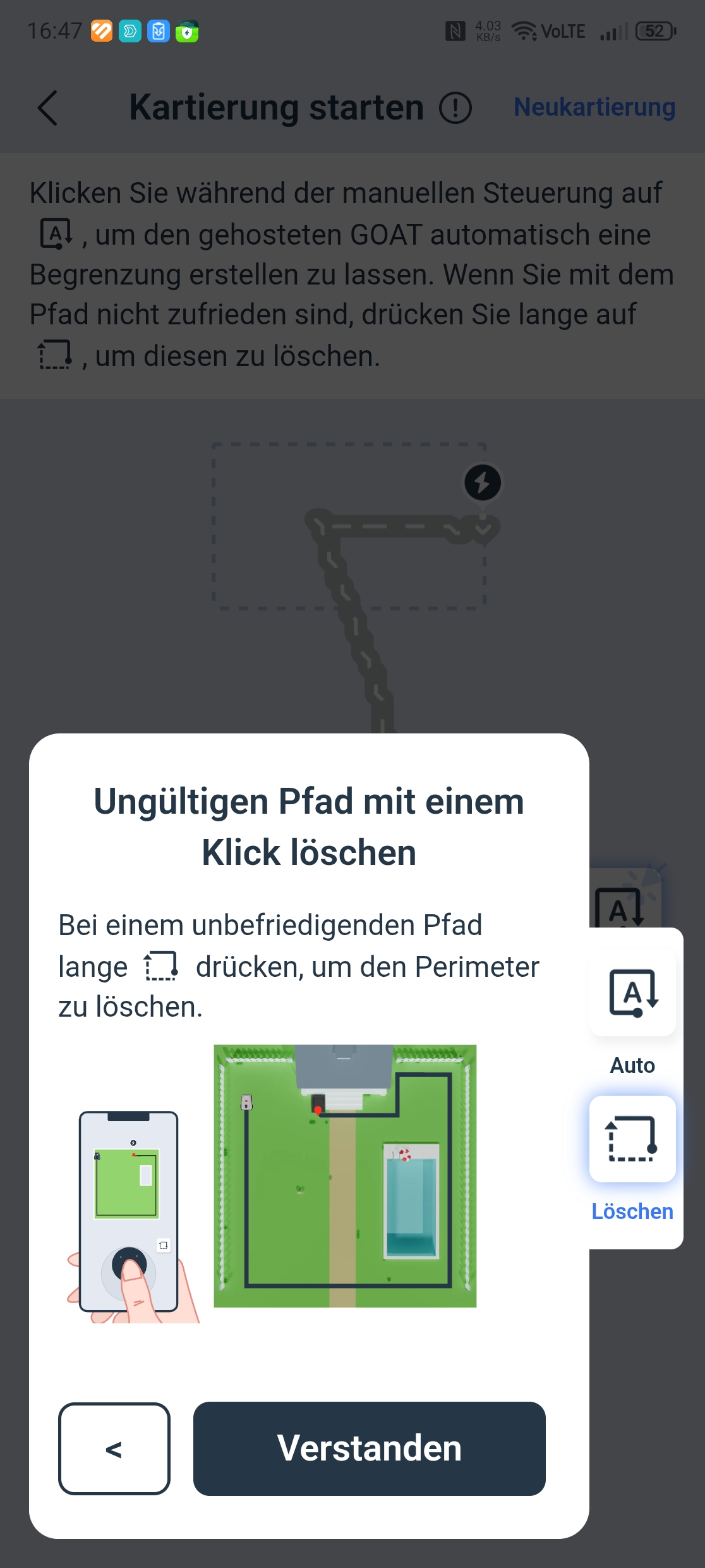 Der Ecovacs Goat A3000 LiDAR bietet eine automatische Kartierung, die allerdings nur funktioniert, wenn die Rasenfläche klar abgegrenzt ist. In unserem Test-Garten mit offenen Übergängen kartieren wir manuell. Die Methode liefert in jedem Fall die präziseren Ergebnisse.