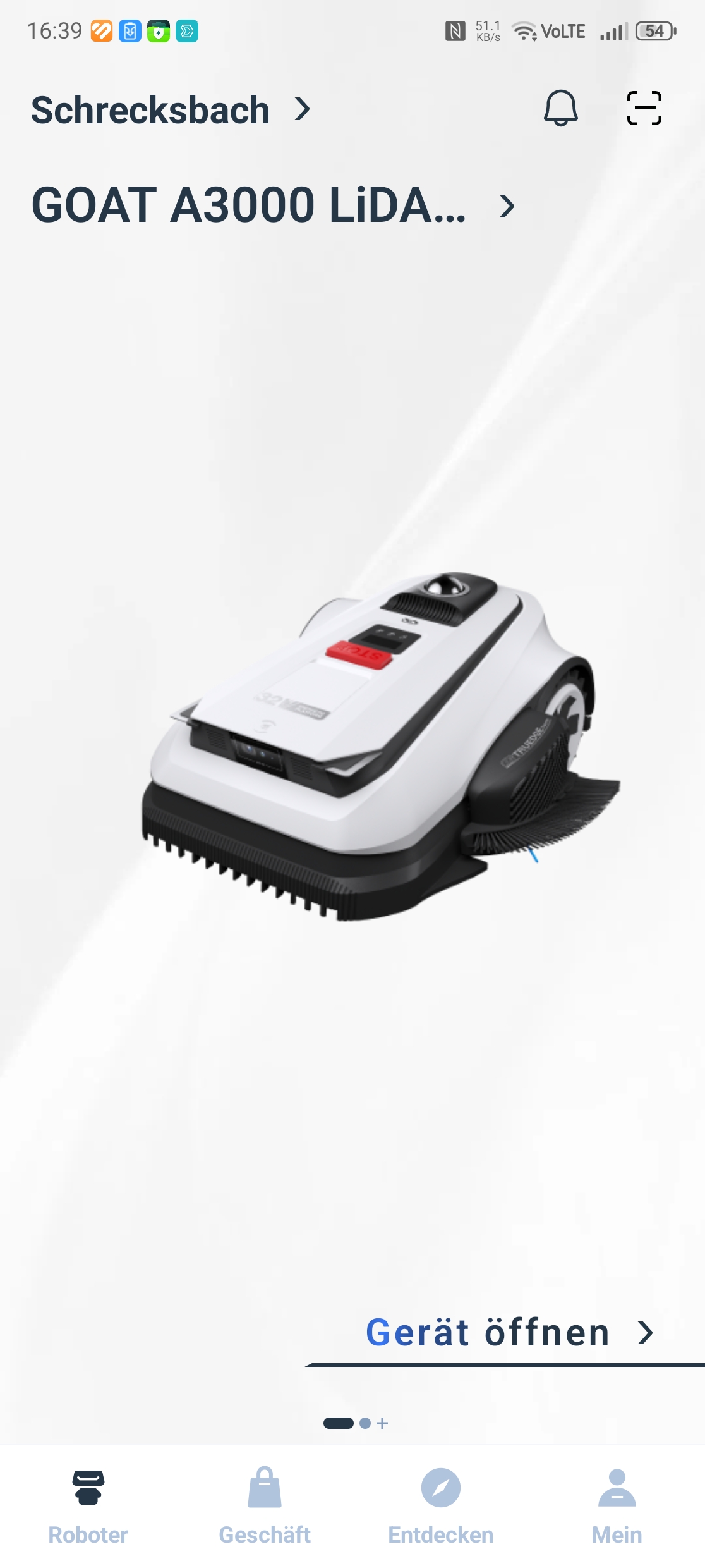 Für Gärten bis 1.600 m² ohne extreme Steigungen ist der Goat A1600 LiDAR Pro mit rund 1500 Euro die wirtschaftlichere Alternative: Baugleiche Technik, mit identischem Trimmer und Navigationssystem, lediglich der Akku ist kleiner. Wer keine 3.000 m² mähen muss, spart 800 Euro ohne funktionale Einbußen.