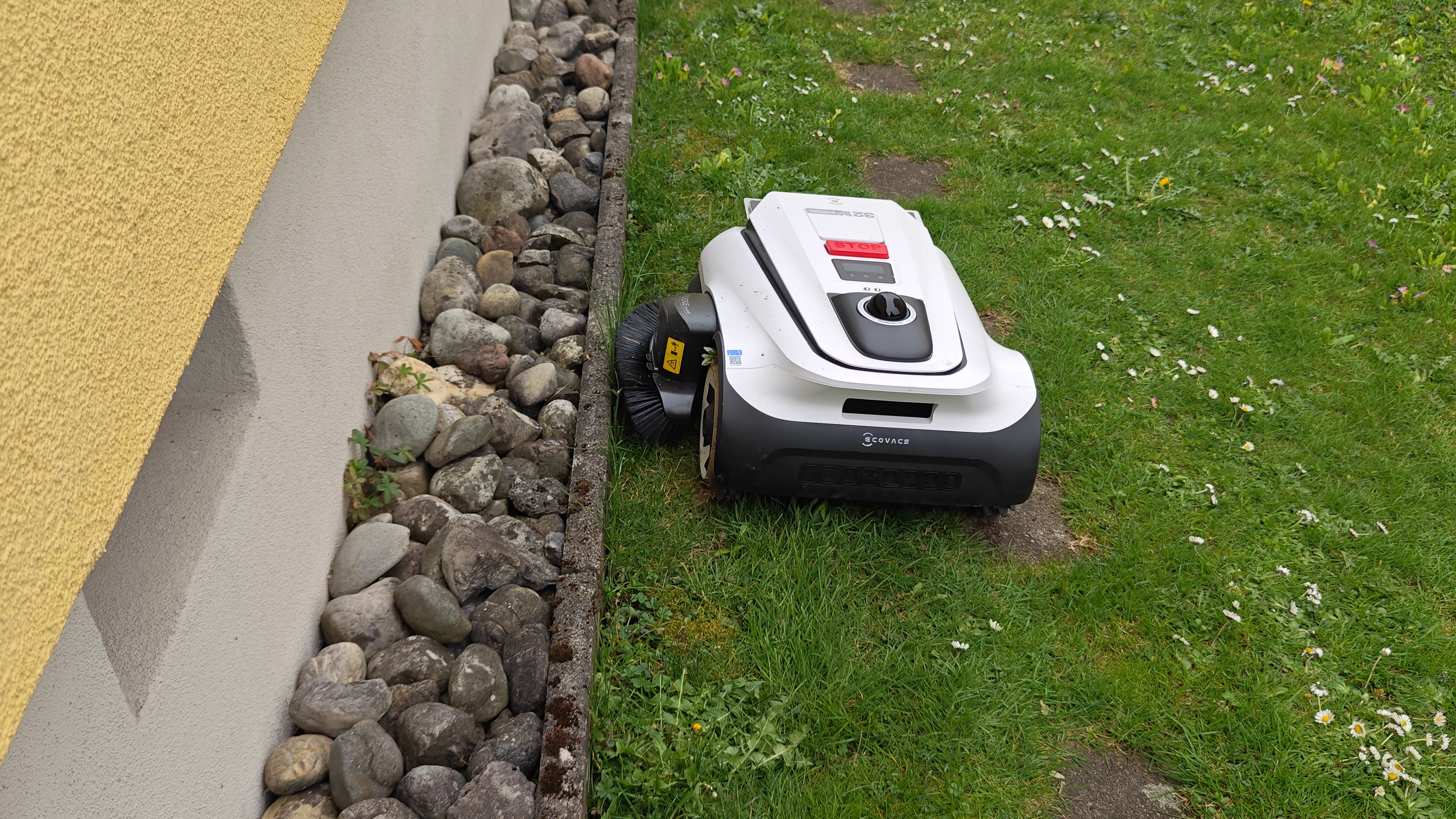 Ecovacs gibt eine maximale Steigfähigkeit von 50 Prozent an, was etwa 27° entspricht. Im Testgarten wurde der Mähroboter auch auf einer 30°-Steigung eingesetzt – also oberhalb der Herstellerangabe. Auf weniger steilem Gelände arbeitete der Hinterradantrieb zuverlässig, solange längs zum Hang gemäht wurde. Quer zum Hang oder bei nassem, rutschigem Gras kam es jedoch zu Traktionsverlusten und Wendemanövern, die Rasenschäden verursachen können. Für Gärten mit extremen Steigungen ist ein Allradantrieb wie beim Dreame A3 AWD Pro 3500 die bessere Wahl – doch auch mit Allrad sollte man steile Flächen nur bei trockenem Untergrund mähen, um Rasenschäden zu vermeiden.