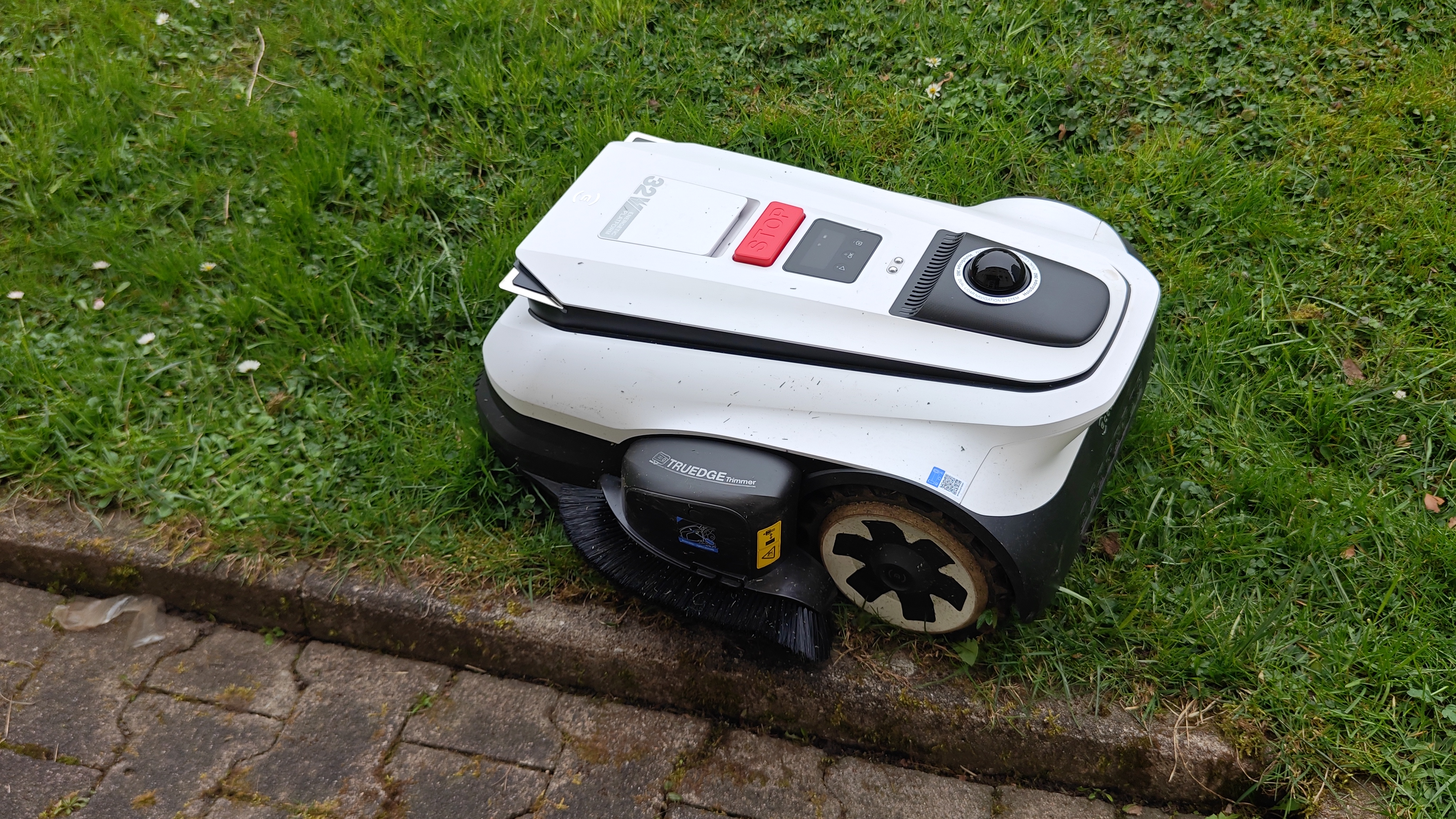 Der integrierte Tru-Edge-Trimmer ist die eigentliche Innovation dieses Modells. An den Außenkanten des Gartens spart er spürbar Nacharbeit – kein anderes Gerät im Testfeld kommt ohne manuellen Rasentrimmer an ein vergleichbares Ergebnis. Allerdings kämpft der Trimmer mit Abstandsproblemen an Sperrflächen, gelegentlichen Unterbrechungen und einer festen Bauhöhe von 6 cm, die an Randsteinen zum Problem werden kann. Die Technik ist vielversprechend, benötigt aber noch Software-Feinschliff.