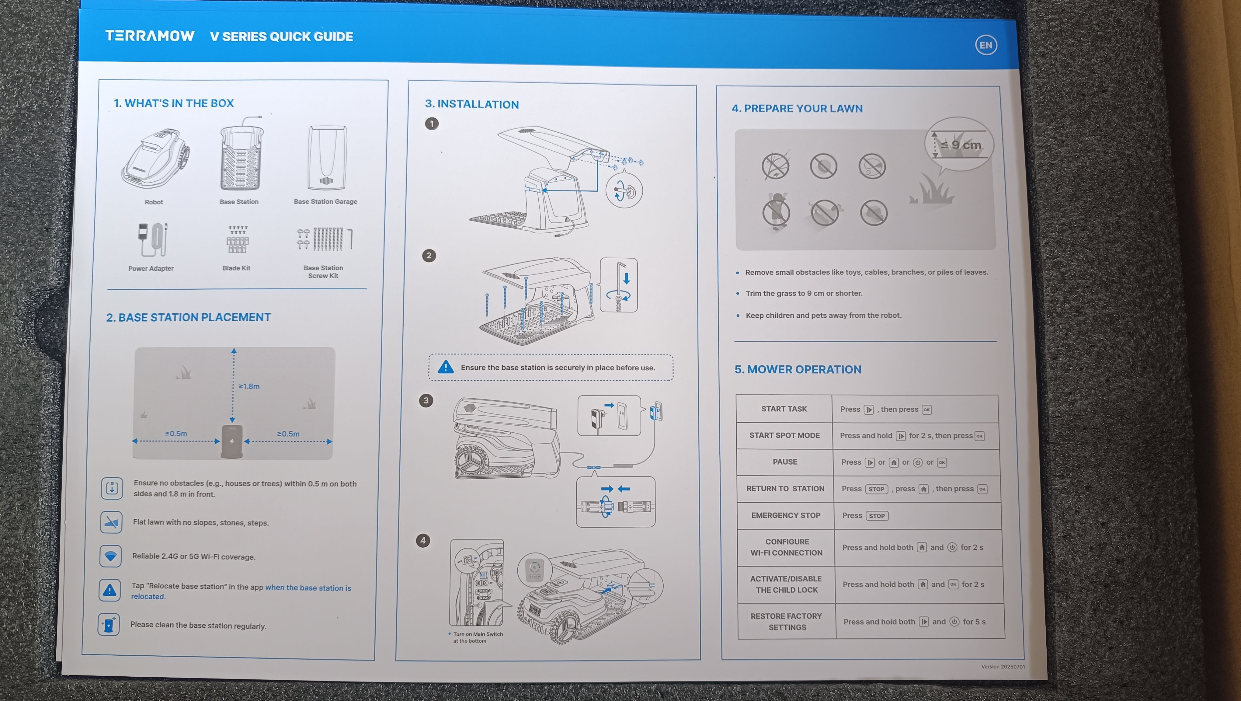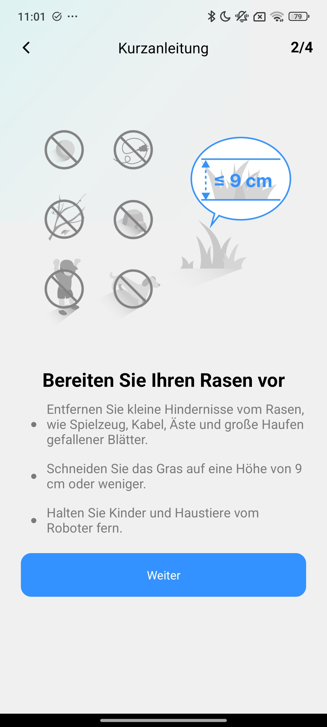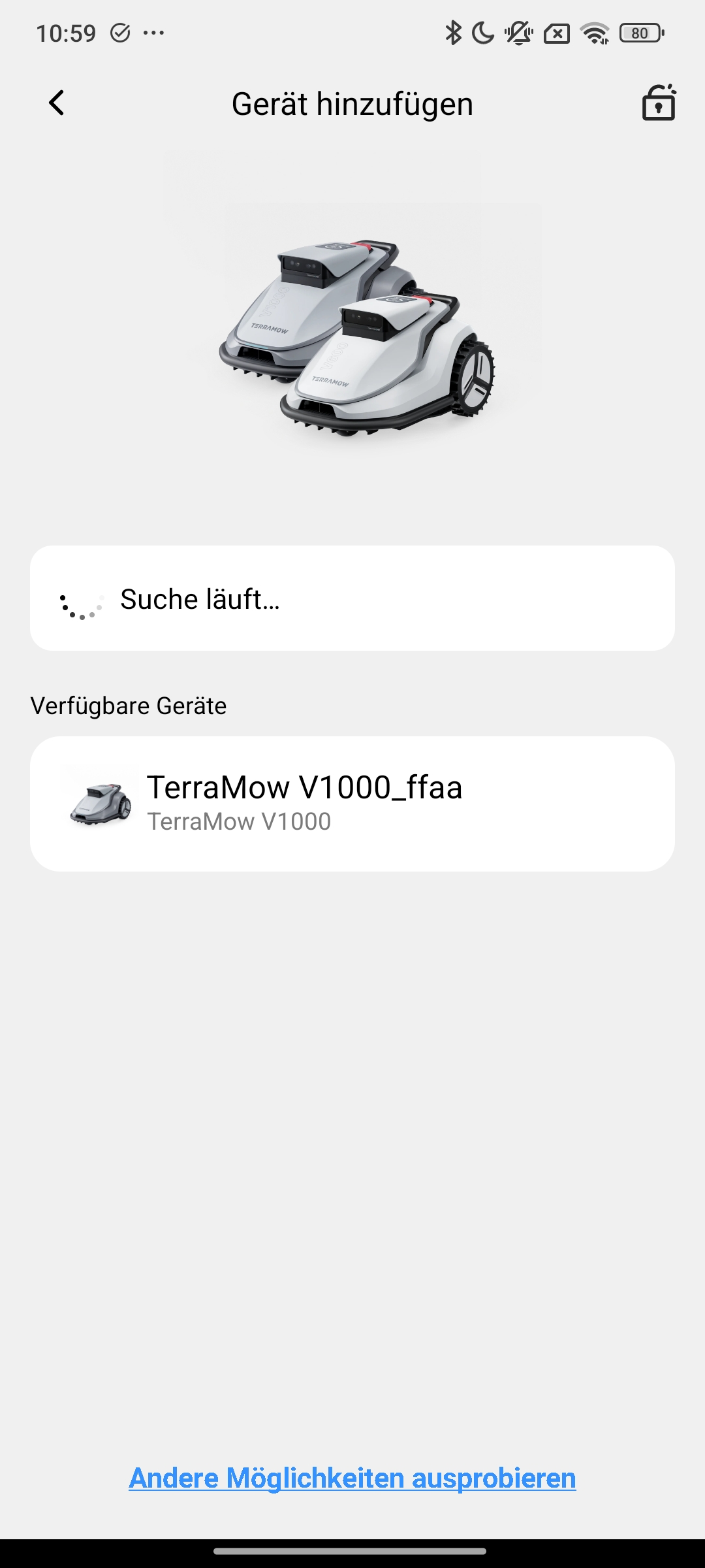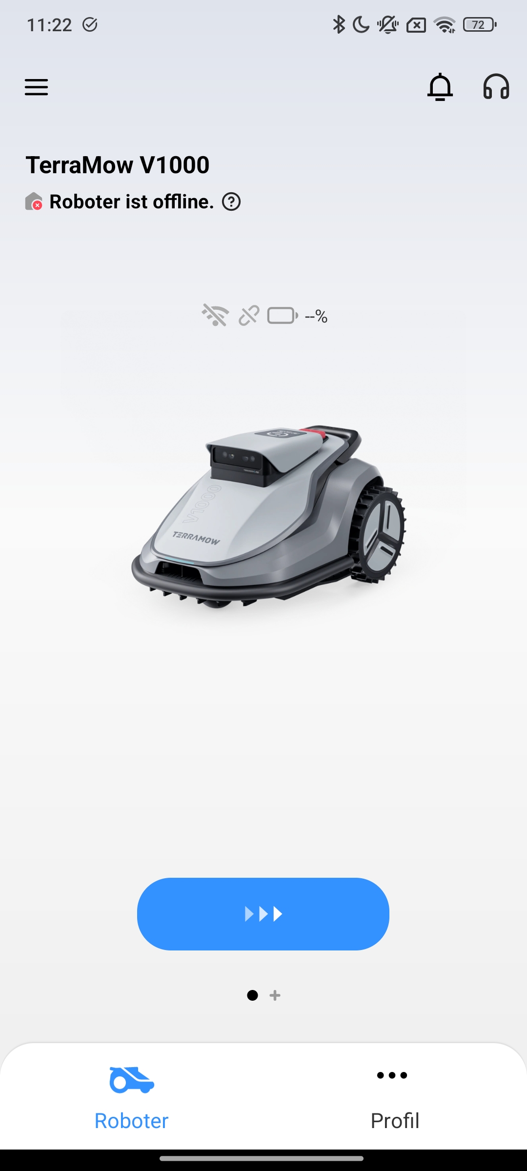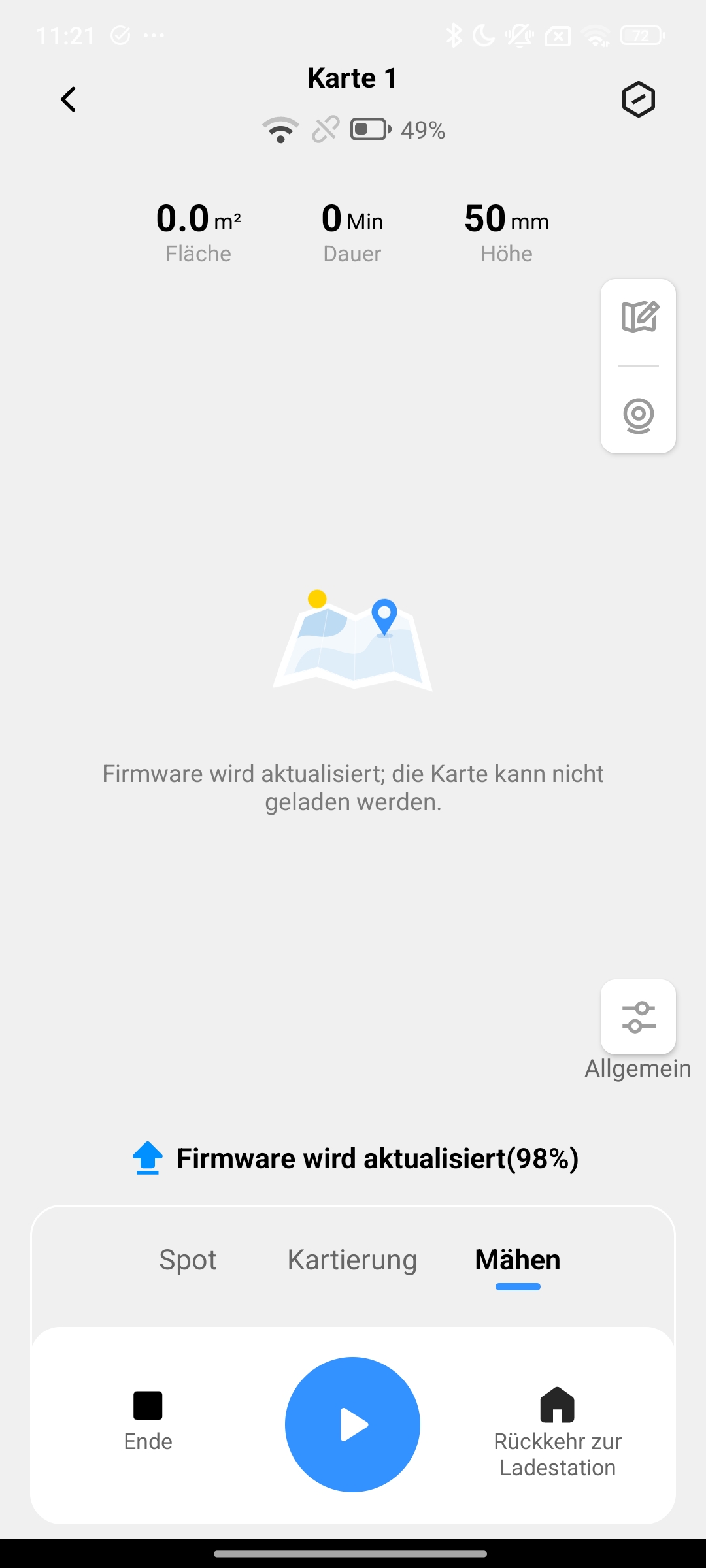 Der Terramow V1000 wird über die herstellereigene App „Terramow“ gesteuert. Dort ist zunächst die Registrierung eines Accounts notwendig, bevor die App schrittweise durch die Einrichtung des gewählten Geräts führt. Bei der Ersteinrichtung stand bereits eine neue Firmware zur Verfügung, die in etwa 20 Minuten installiert war.