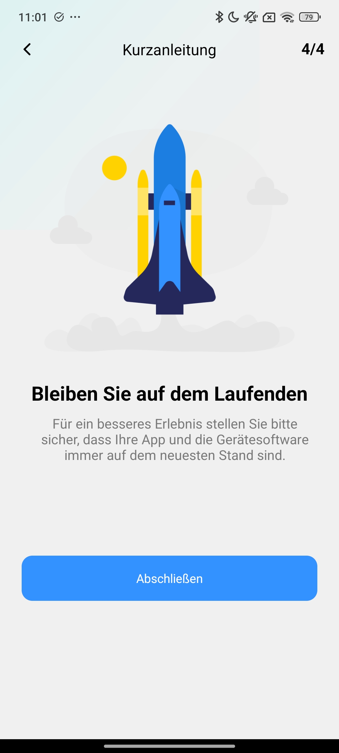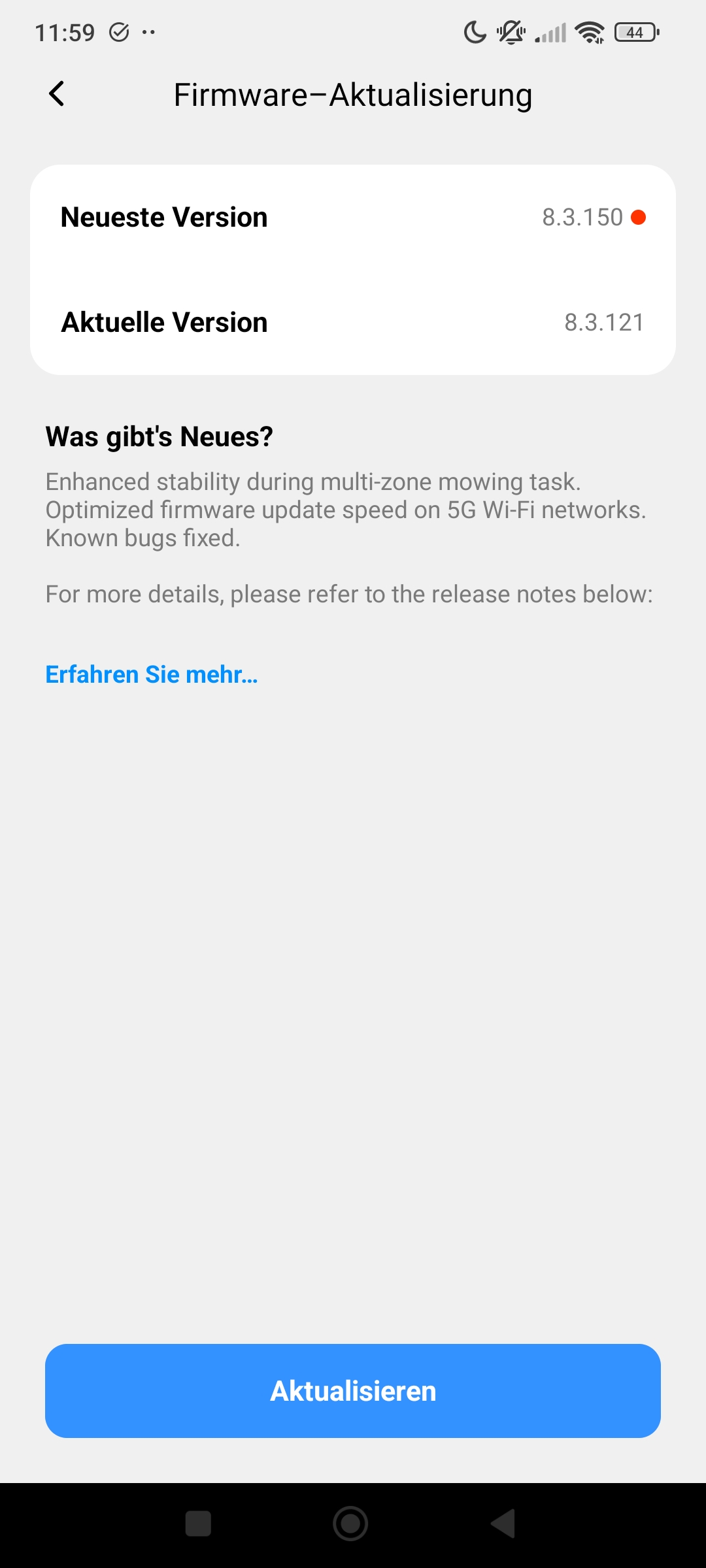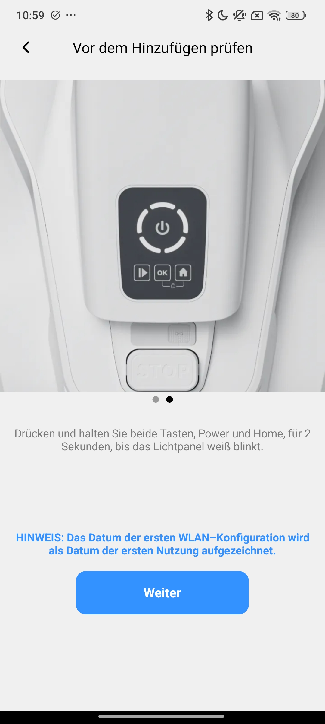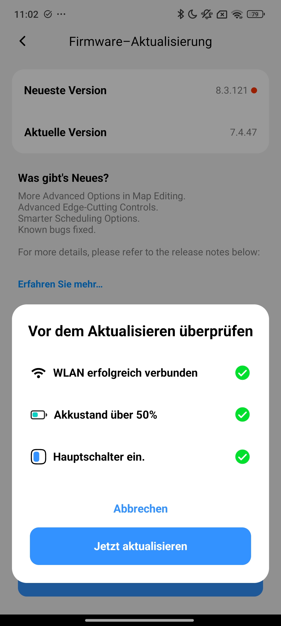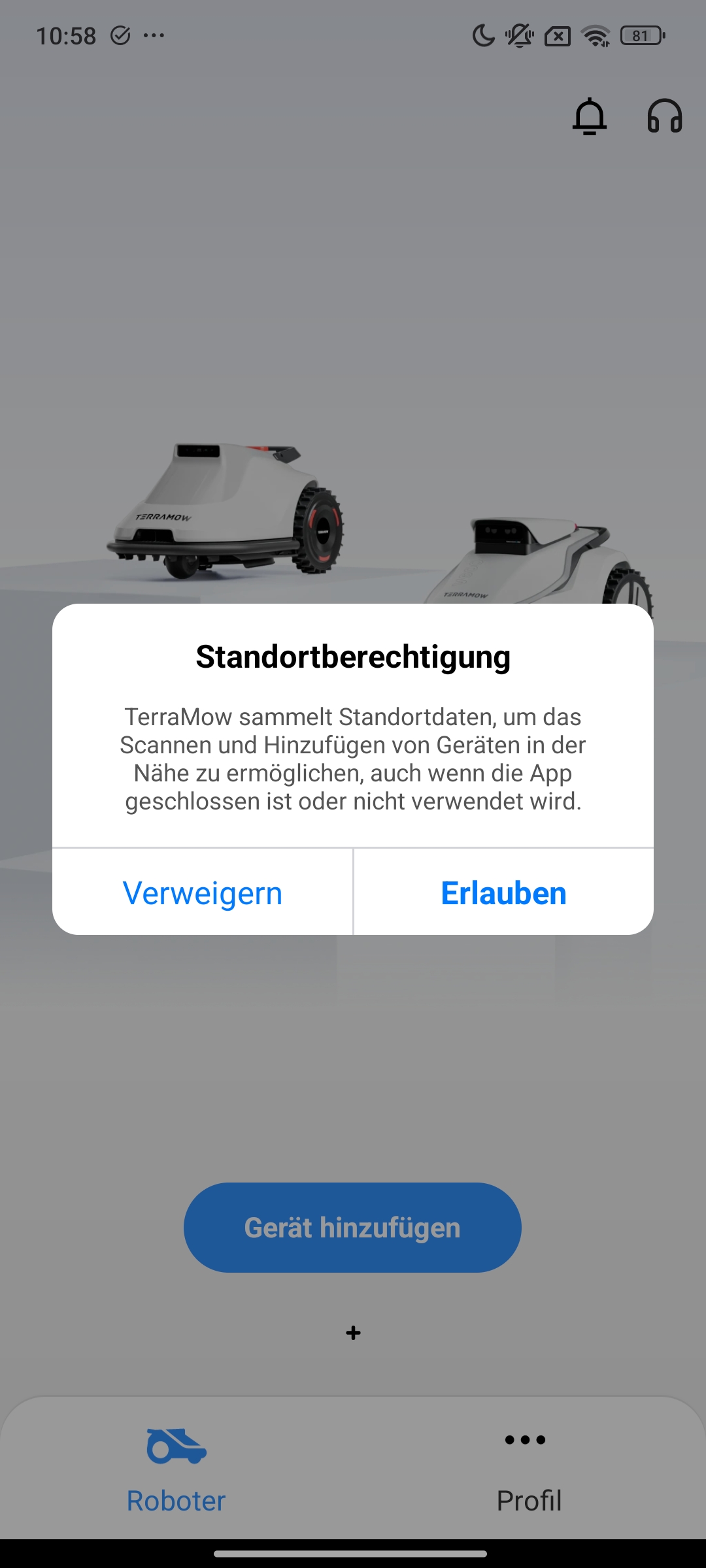 Der Terramow V1000 wird über die herstellereigene App „Terramow“ gesteuert. Dort ist zunächst die Registrierung eines Accounts notwendig, bevor die App schrittweise durch die Einrichtung des gewählten Geräts führt. Bei der Ersteinrichtung stand bereits eine neue Firmware zur Verfügung, die in etwa 20 Minuten installiert war.
