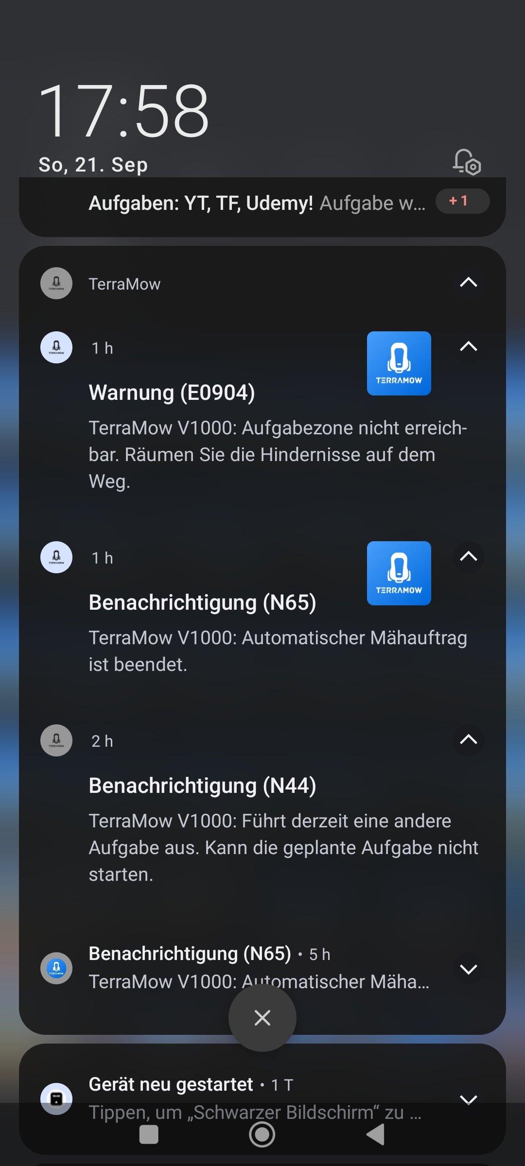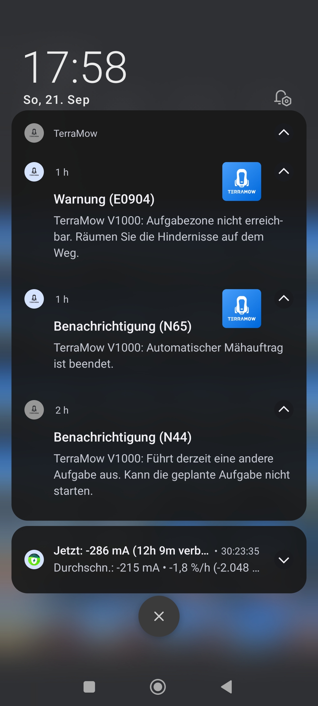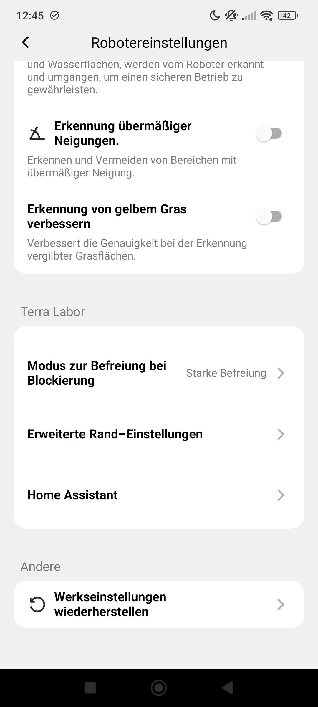 Erfreulicherweise gibt es für den Terramow V1000 eine Integration für Home Assistant. Dazu muss nur das Github-Repository TerraMowHA im Home Assistant Community Store als Integration importiert werden. Eine genaue Anleitung ist in Github als Readme hinterlegt. Die Integration erlaubt das Auslesen zahlreicher Datenpunkte sowie die vollständige Steuerung des Mähers. Die aktuelle Karte wird allerdings nicht an Home Assistant übermittelt.