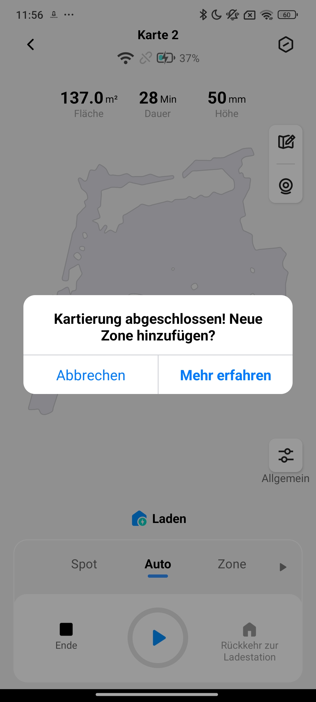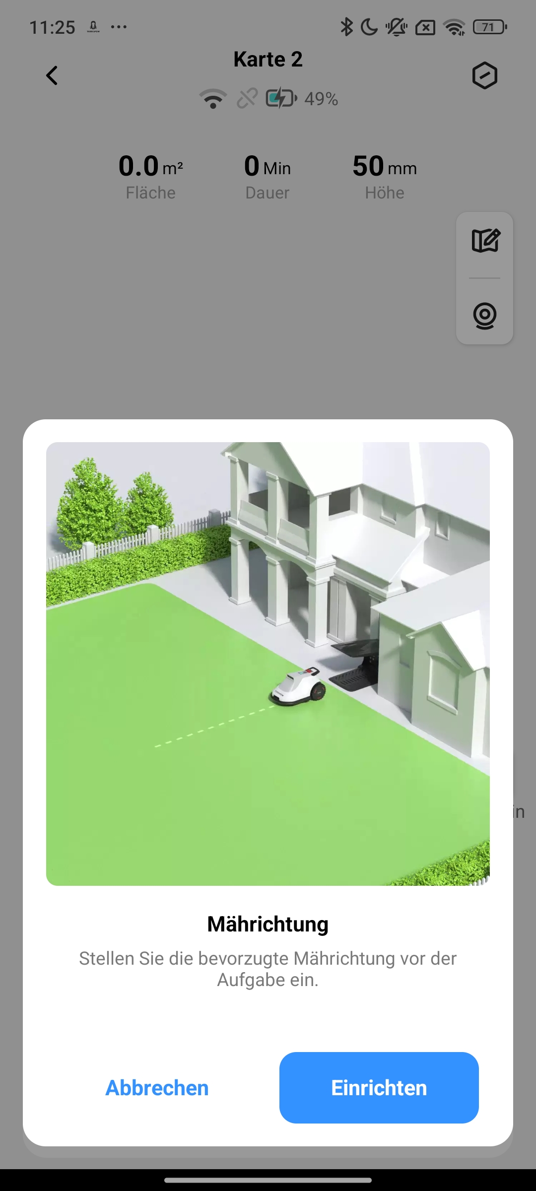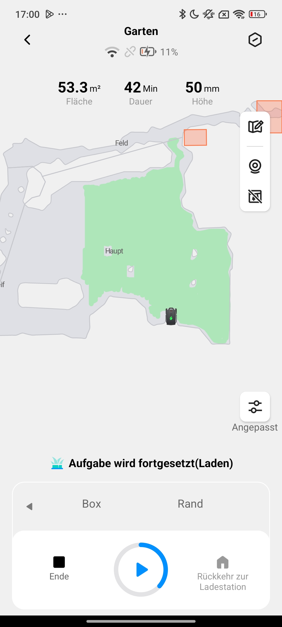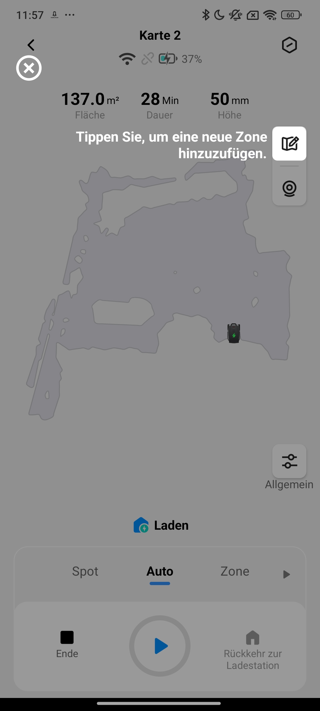 Im „Spot“-Modus können auch einmalig Rasenflächen gemäht werden, die nicht zur aktuellen Karte gehören. Beispielsweise kann man so auch problemlos den Rasen des Nachbarn mähen, sollte dieser im Urlaub sein.